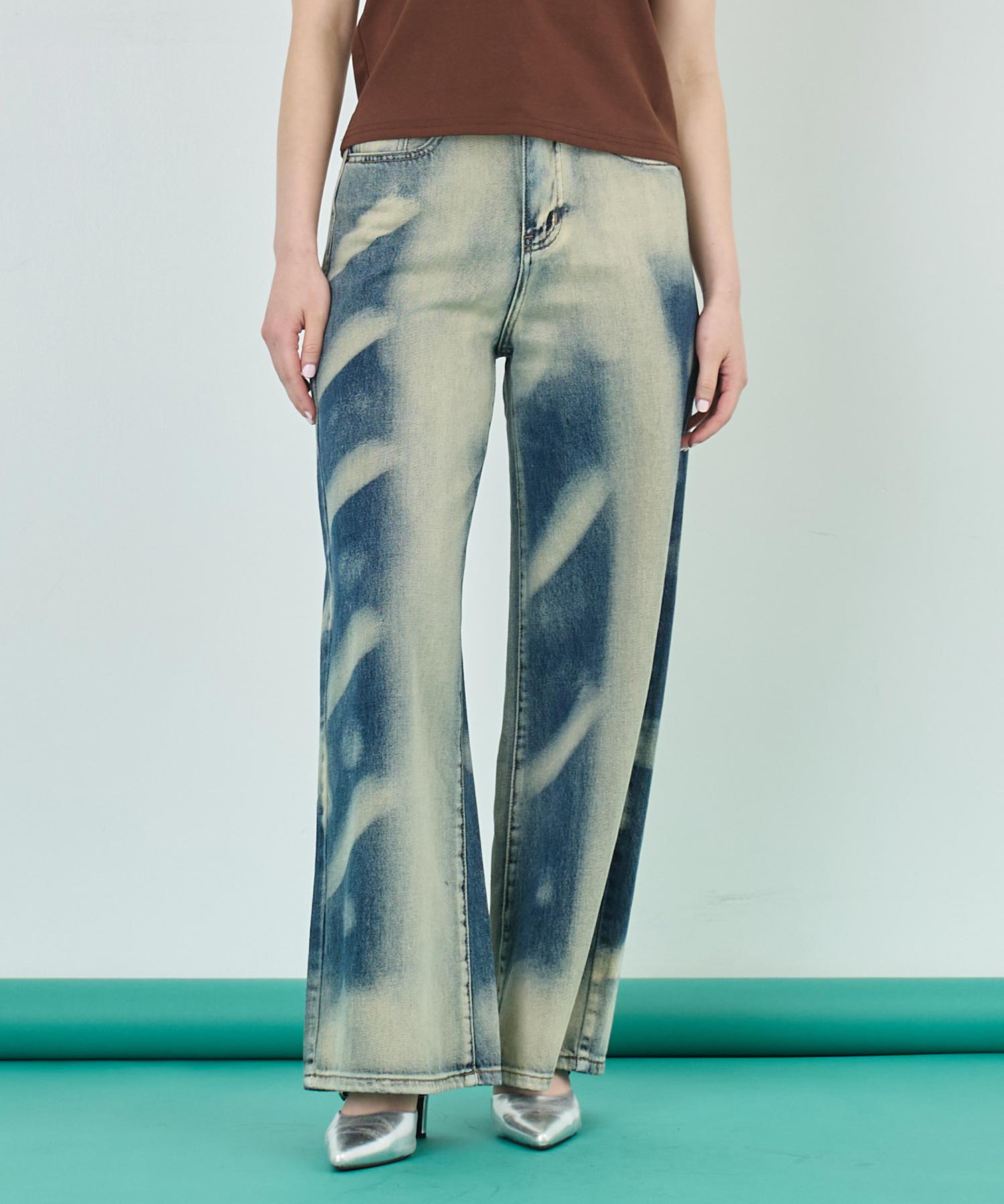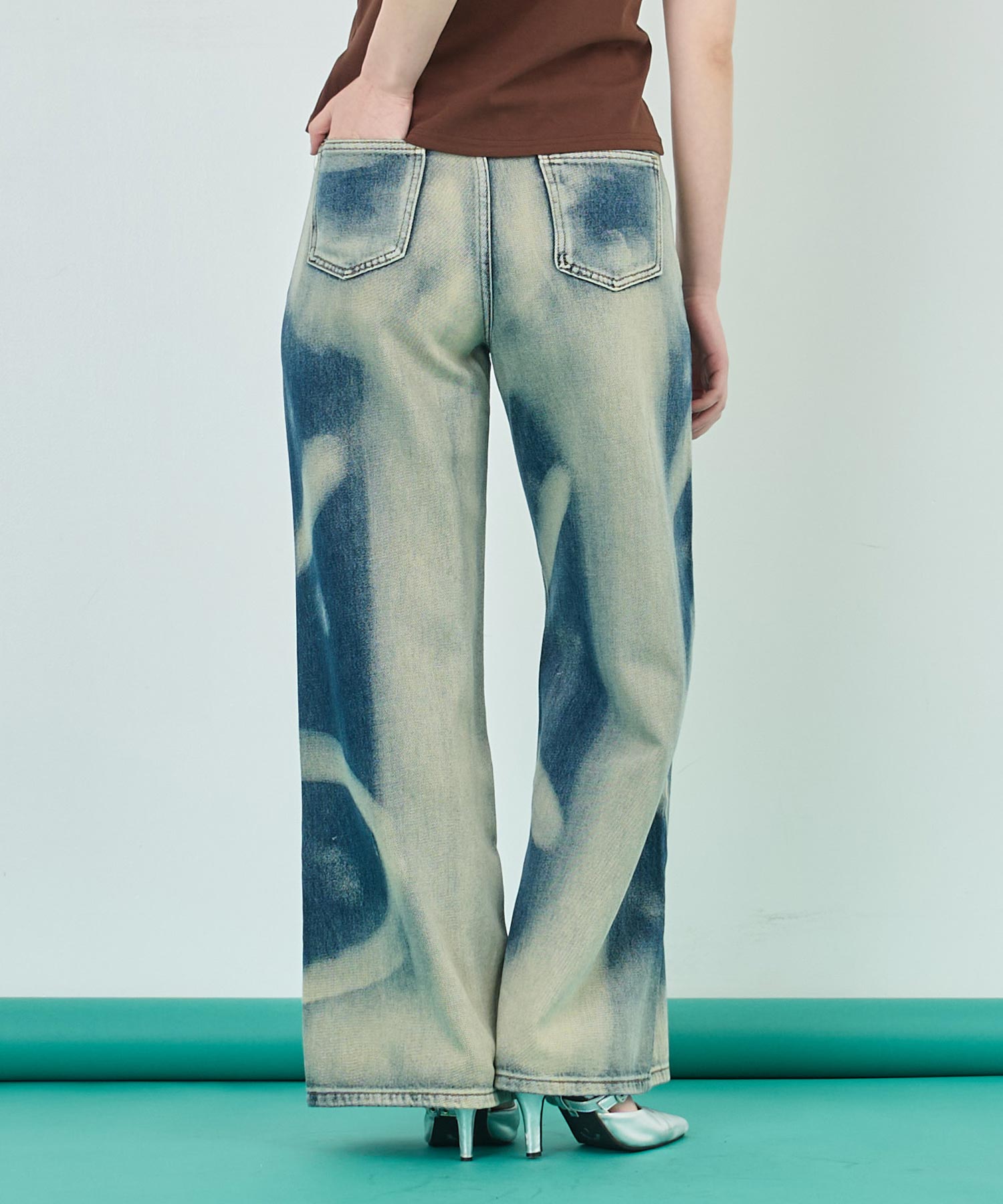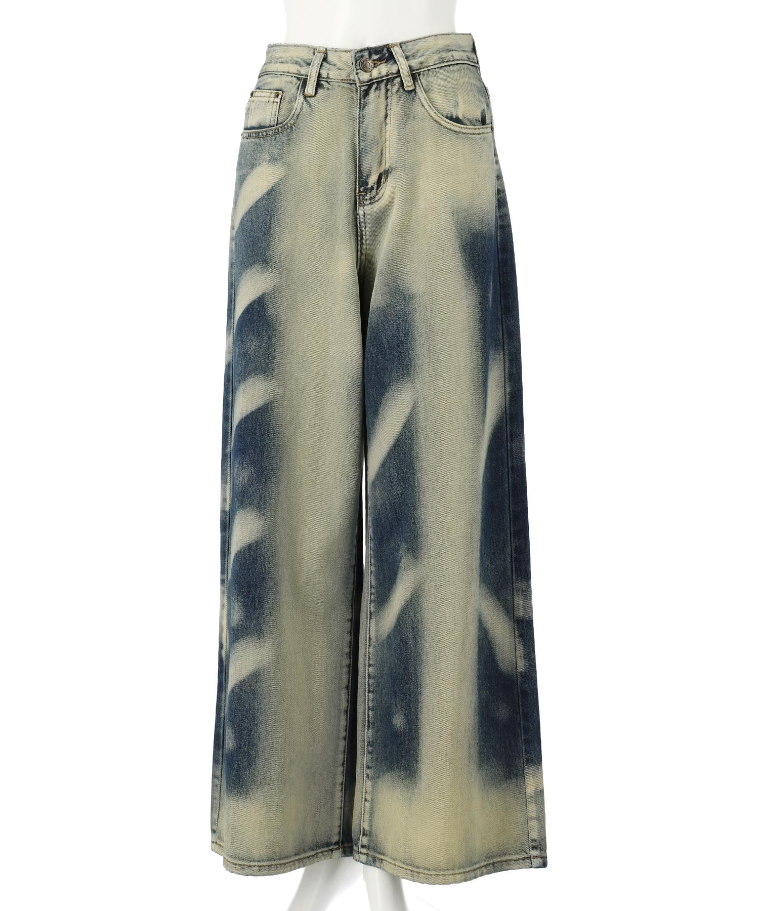 特徴的な“オーバーダイ”加工が、一本一本違う表情を見せてくれるワイドデニムパンツ。