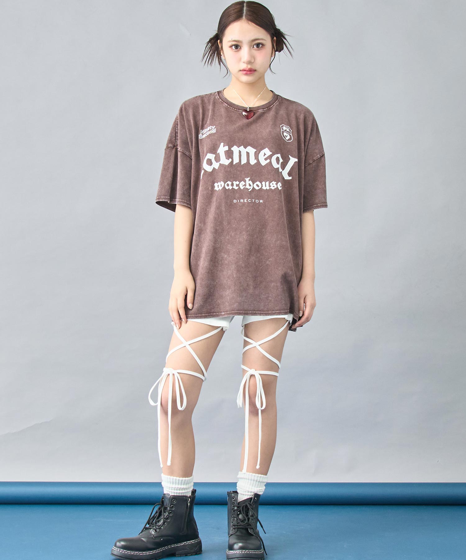 ケミカルウォッシュ クラッププリント ビッグTシャツ (793-9260)