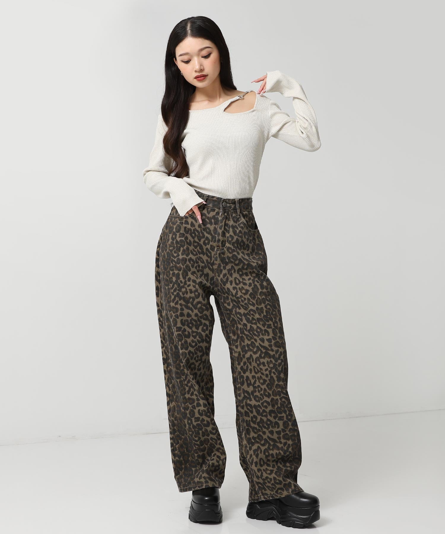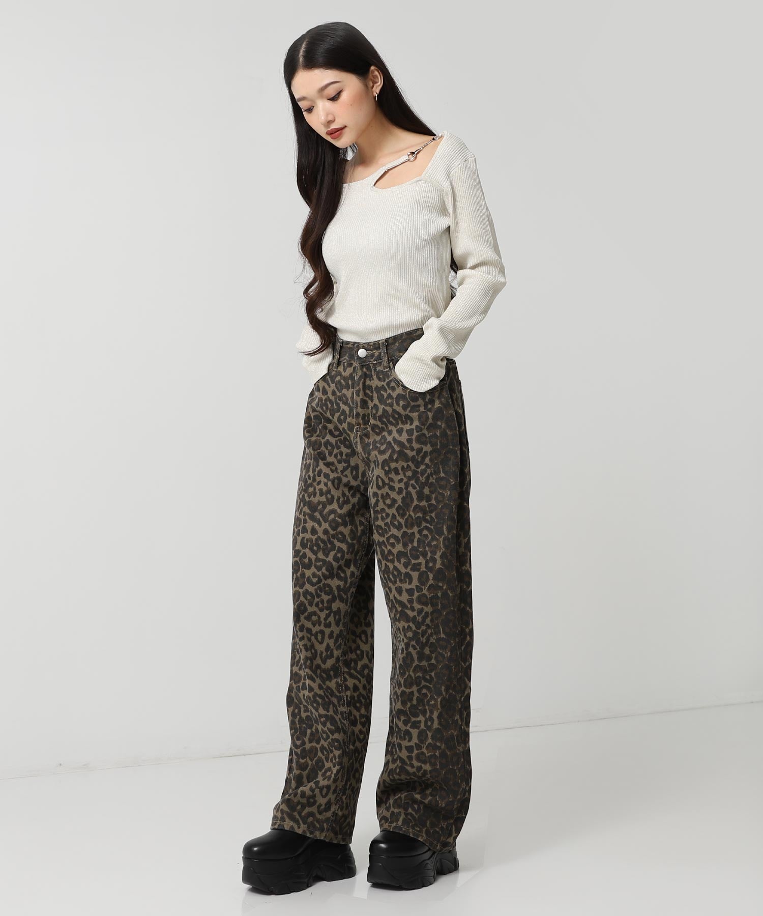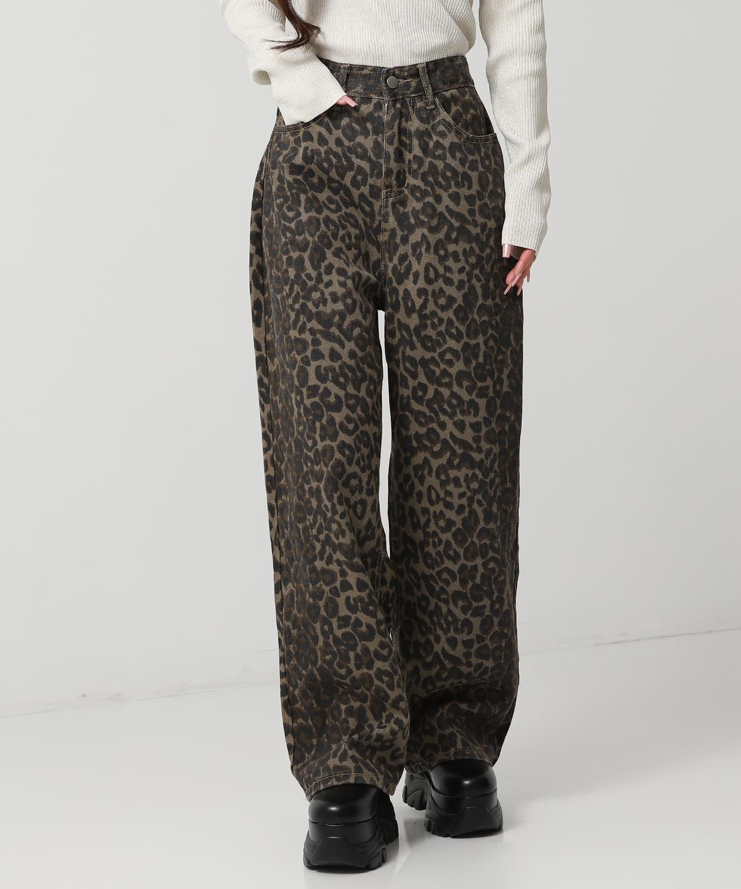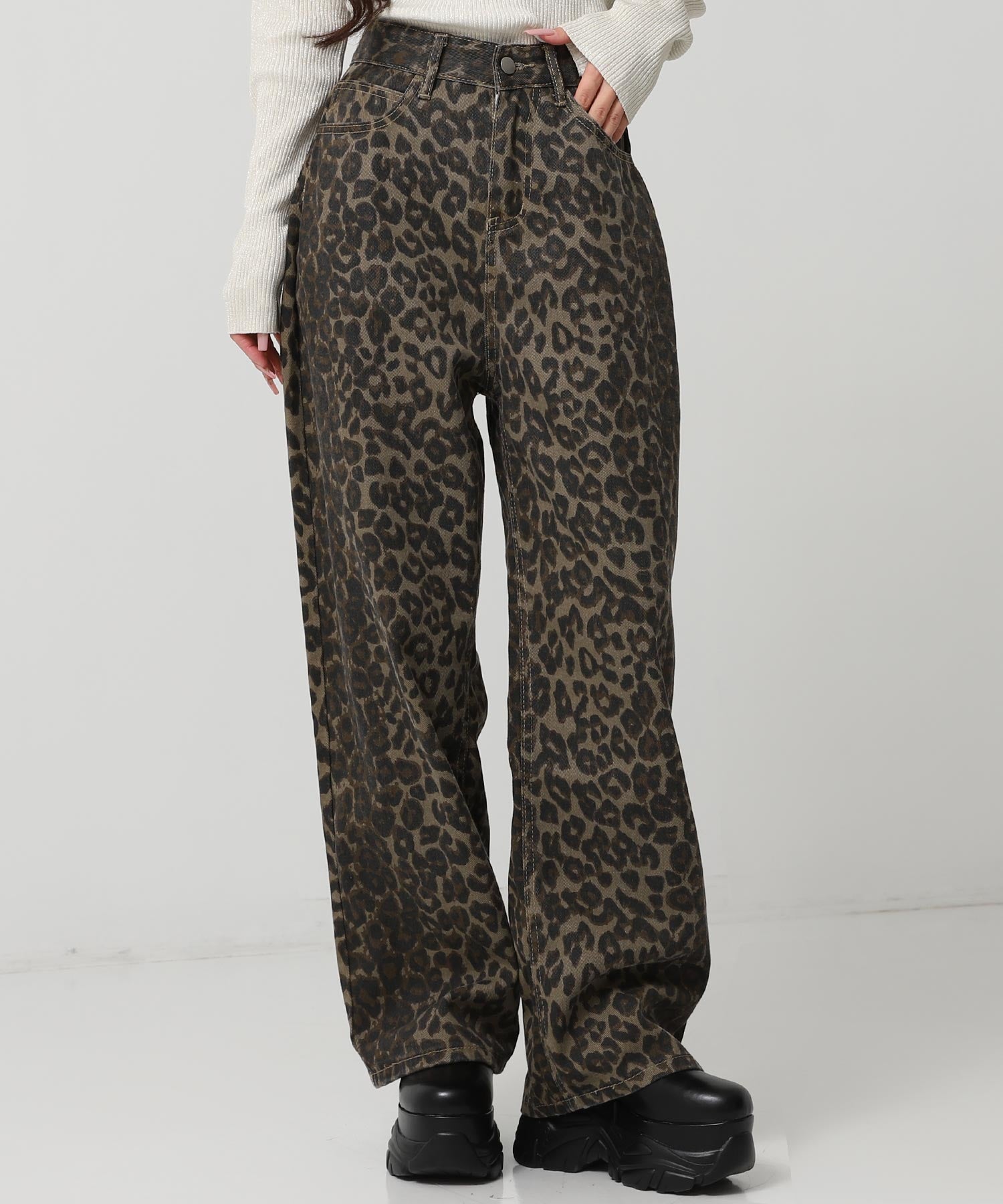 厚みのあるデニム素材にヴィンテージ感のあるレオパードプリントをプラスして、トレンド感と存在感を兼ね備えた仕上がりに。