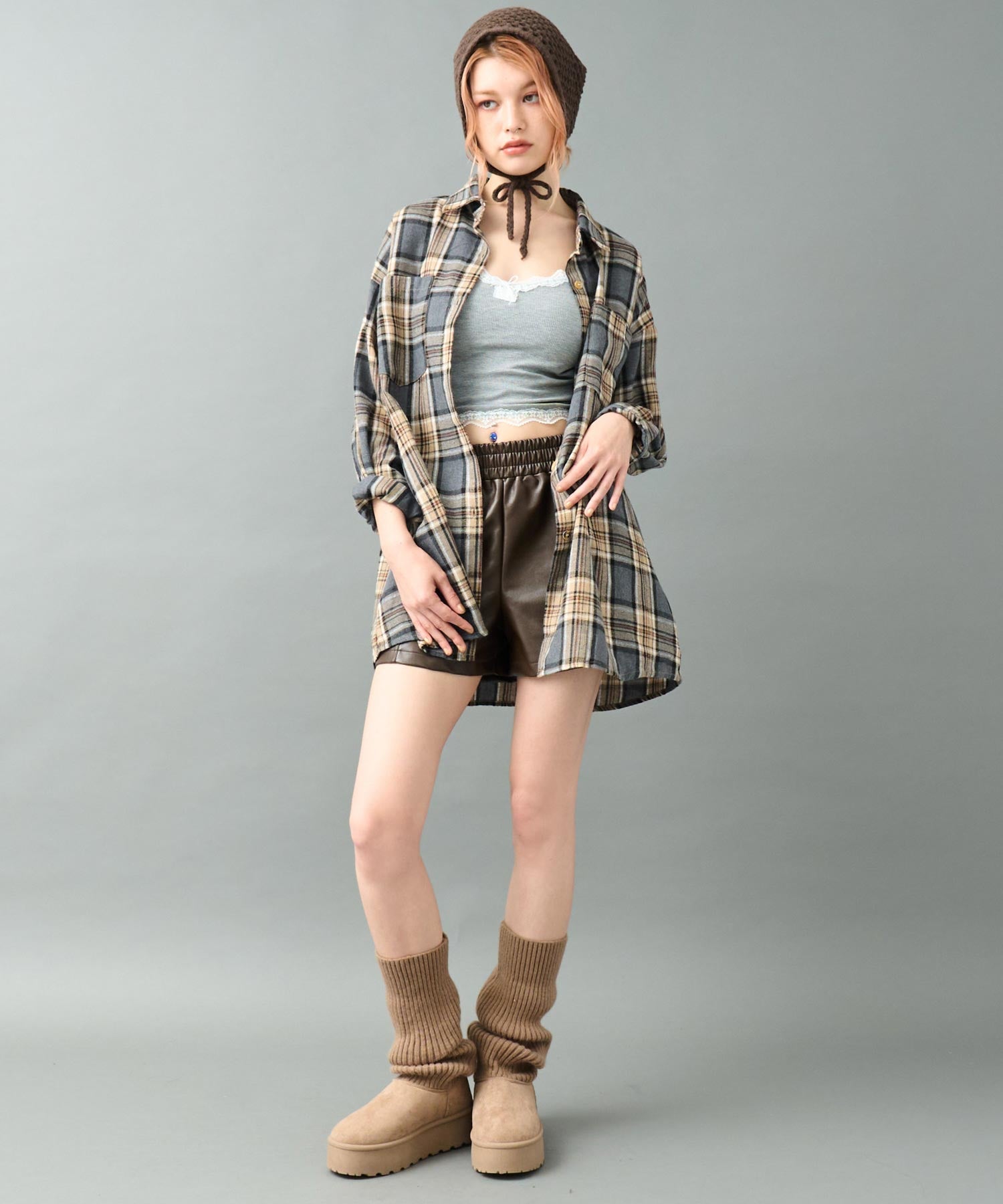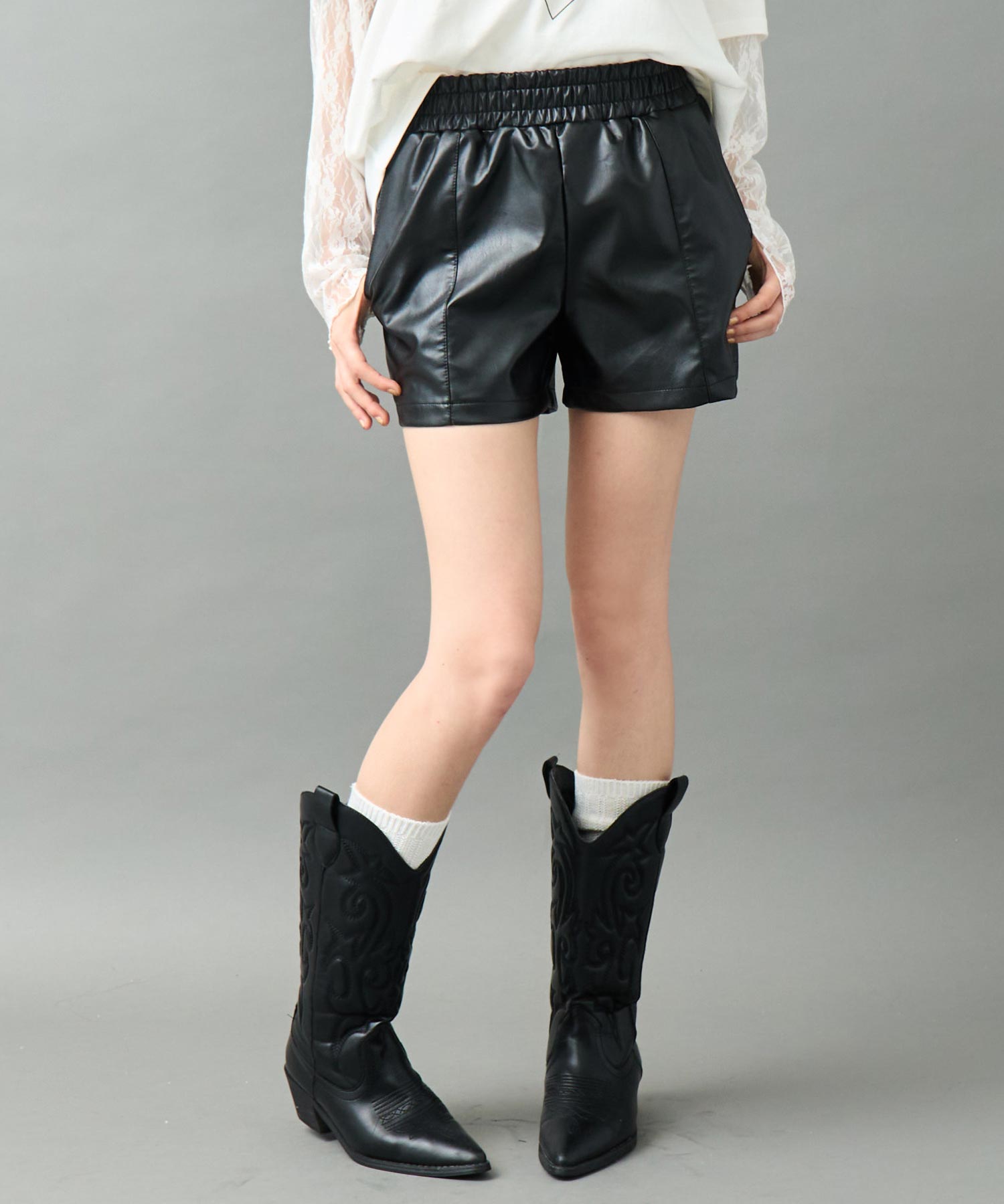 モードな雰囲気をまとえるフェイクレザーショートパンツは、一点投入でスタイリングが引き締まるアイテム。