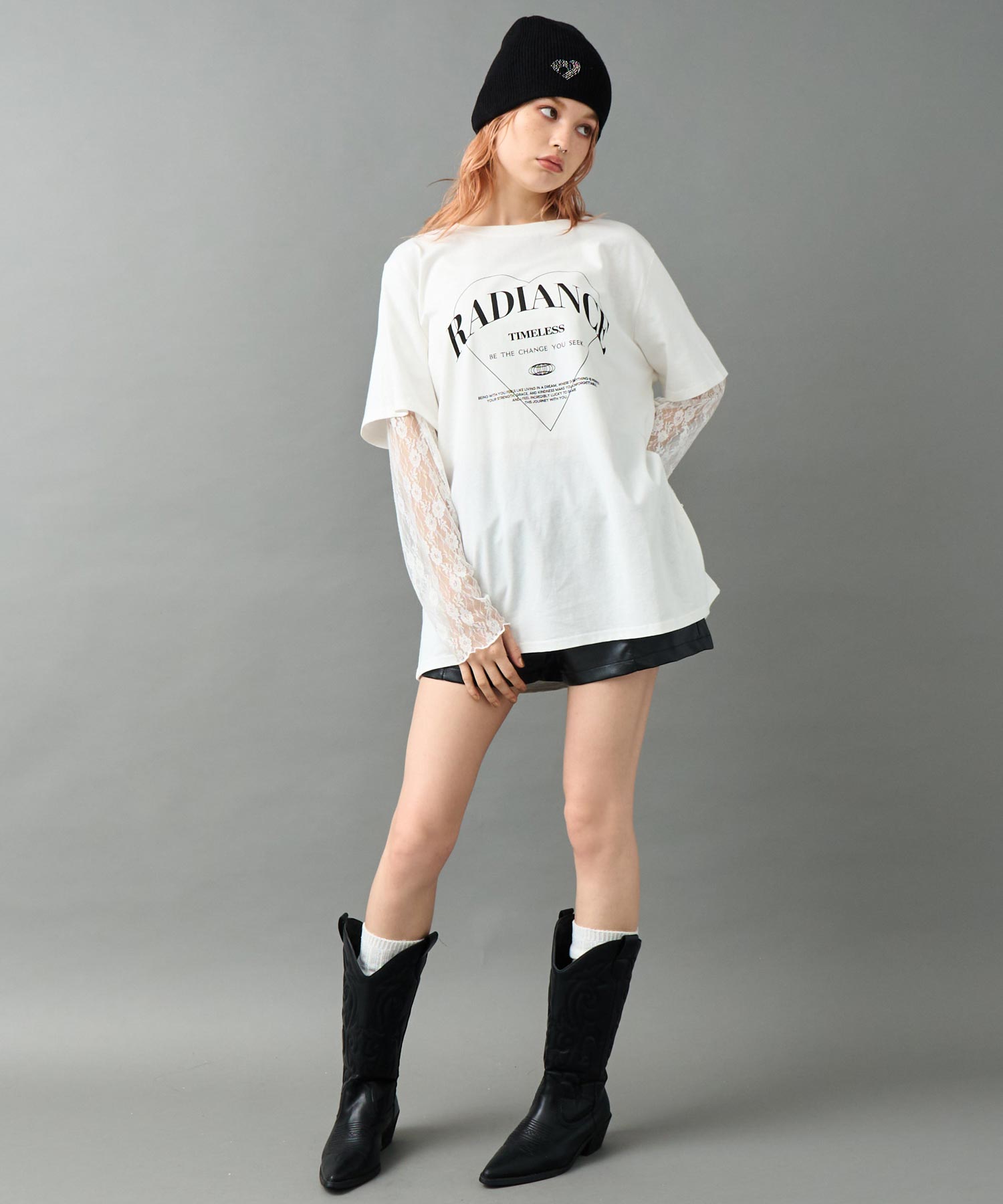 ハートモチーフ ラインストーン 5部丈 Tシャツ(153-5936)