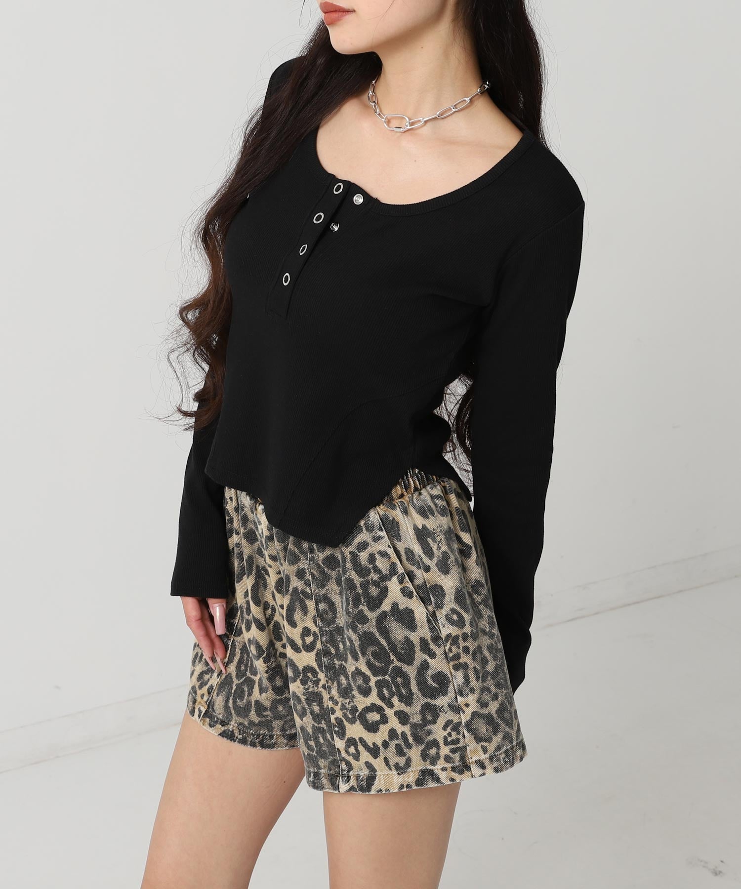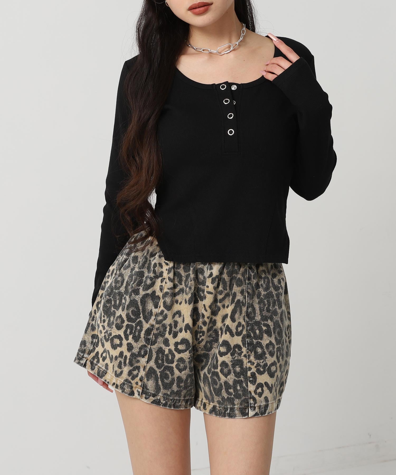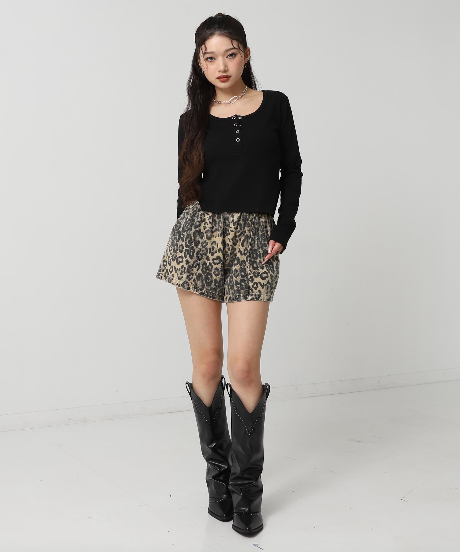 ウエスト ギャザー レオパード タック ショート パンツ 792-9386