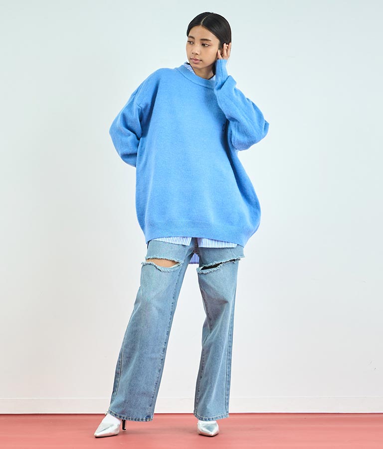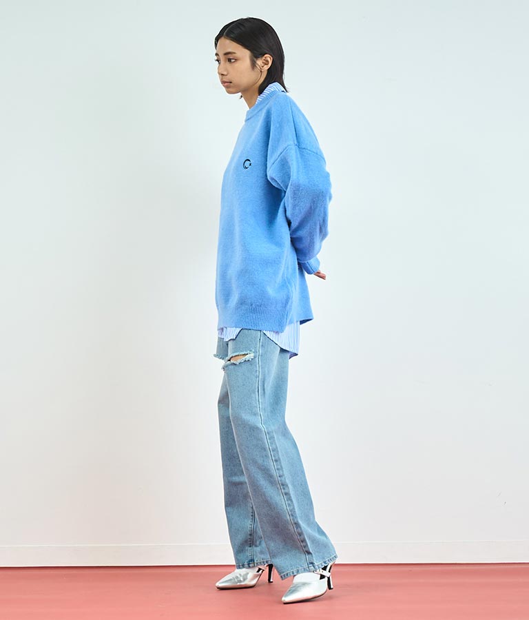※デニムの為、一点一点風合いやダメージの配置が画像と多少異なる場合がございます。予めご了承ください。