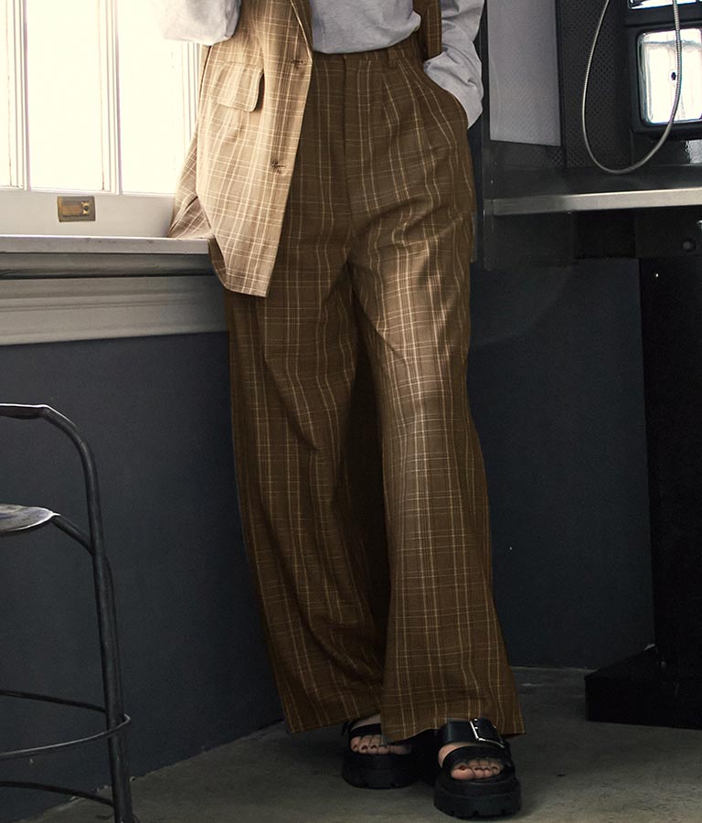 チェック ルーズ ストレート パンツ 【セットアップ着用可】 152-5371