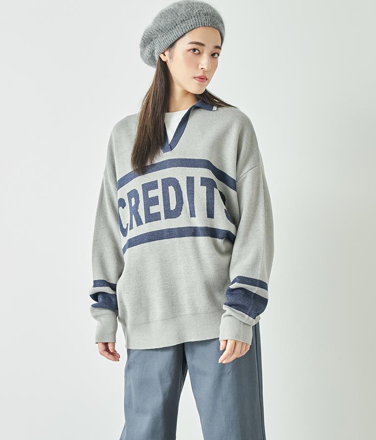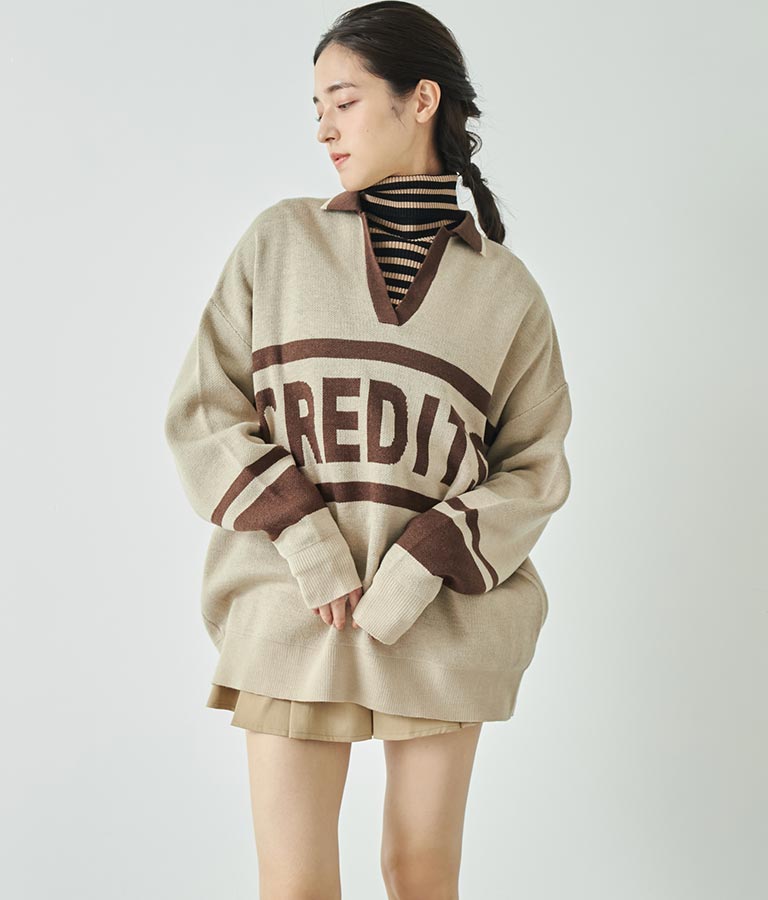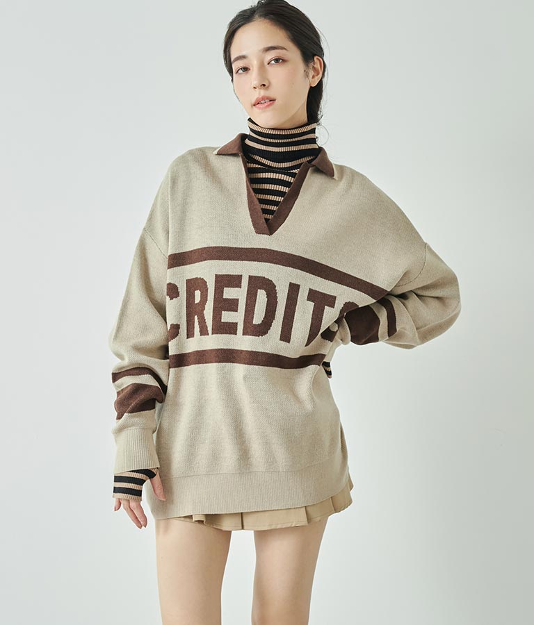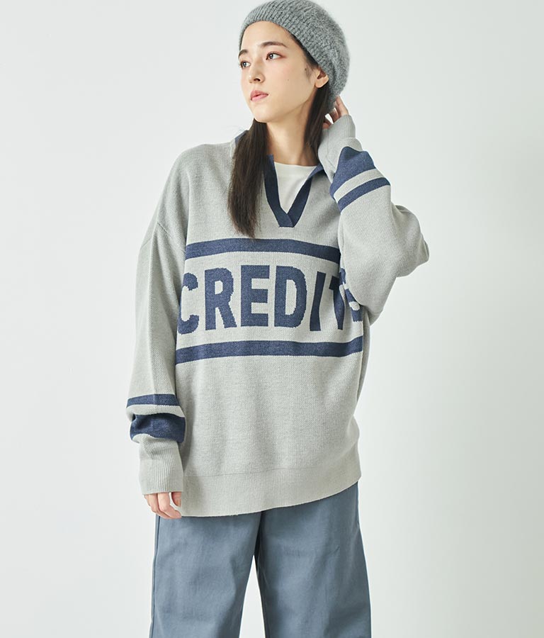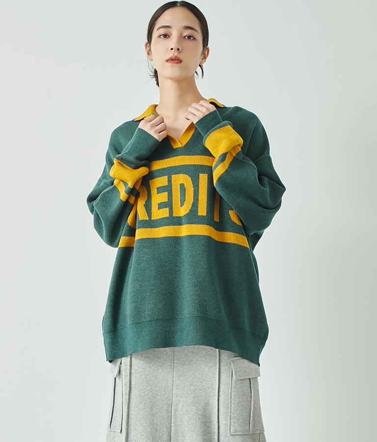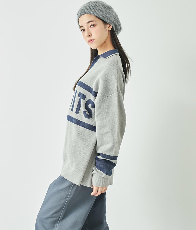 大きく施された英字がインパクト大のニットトップス。
