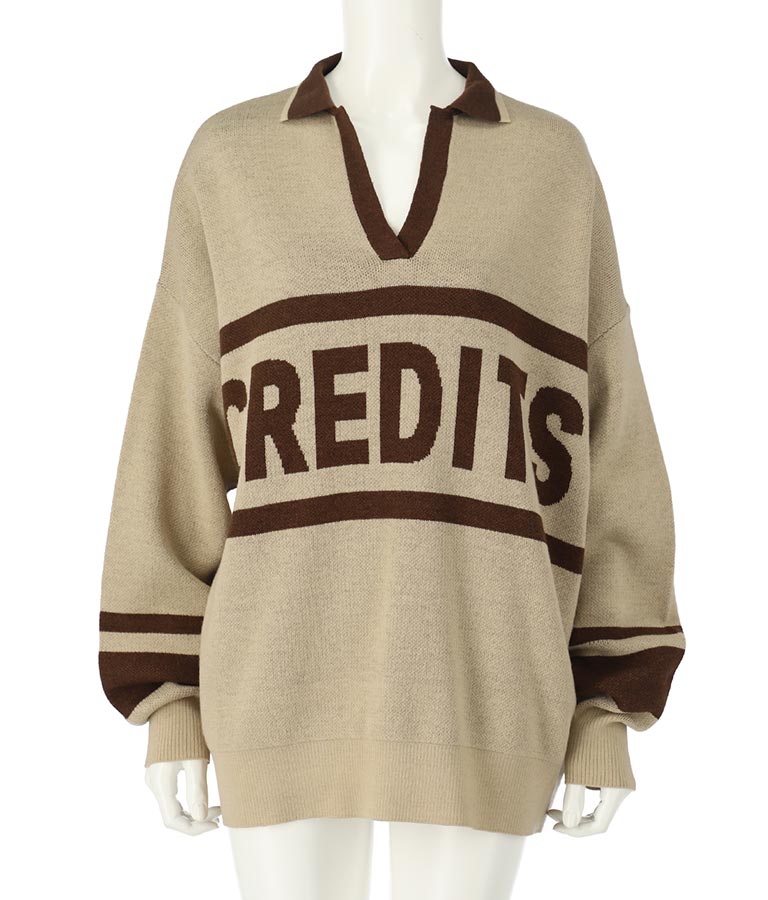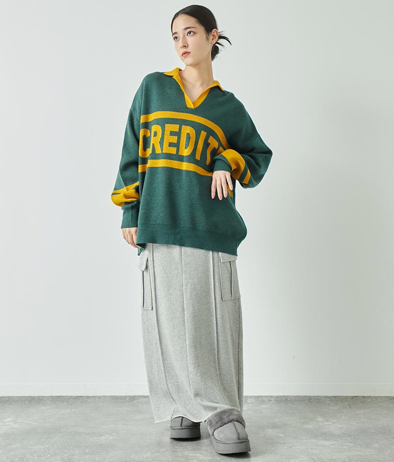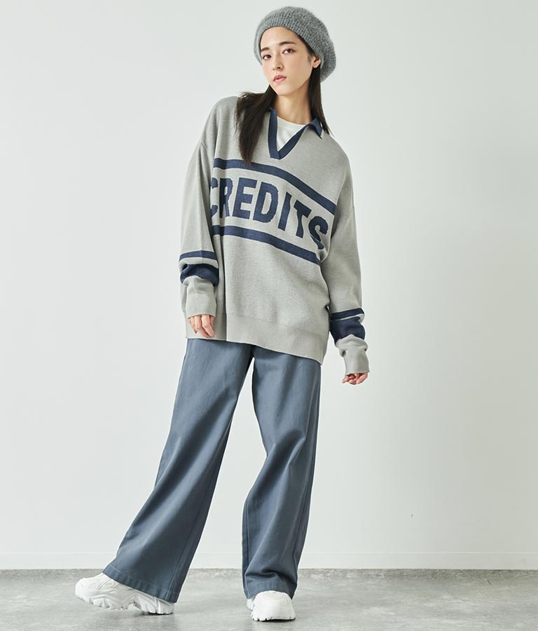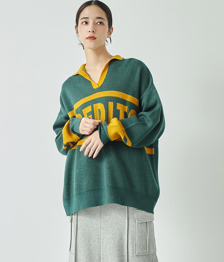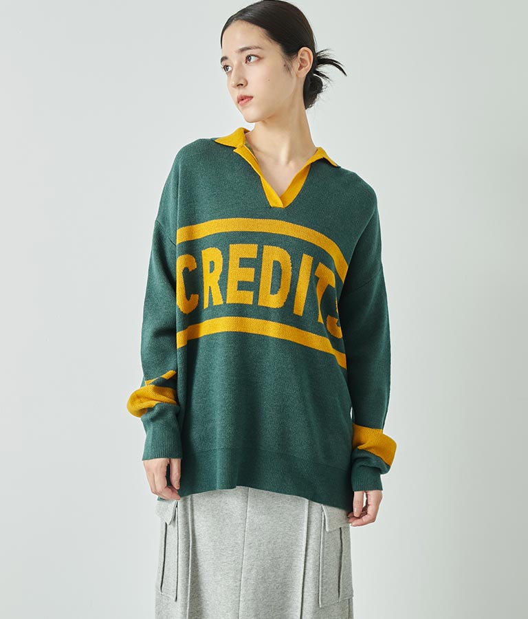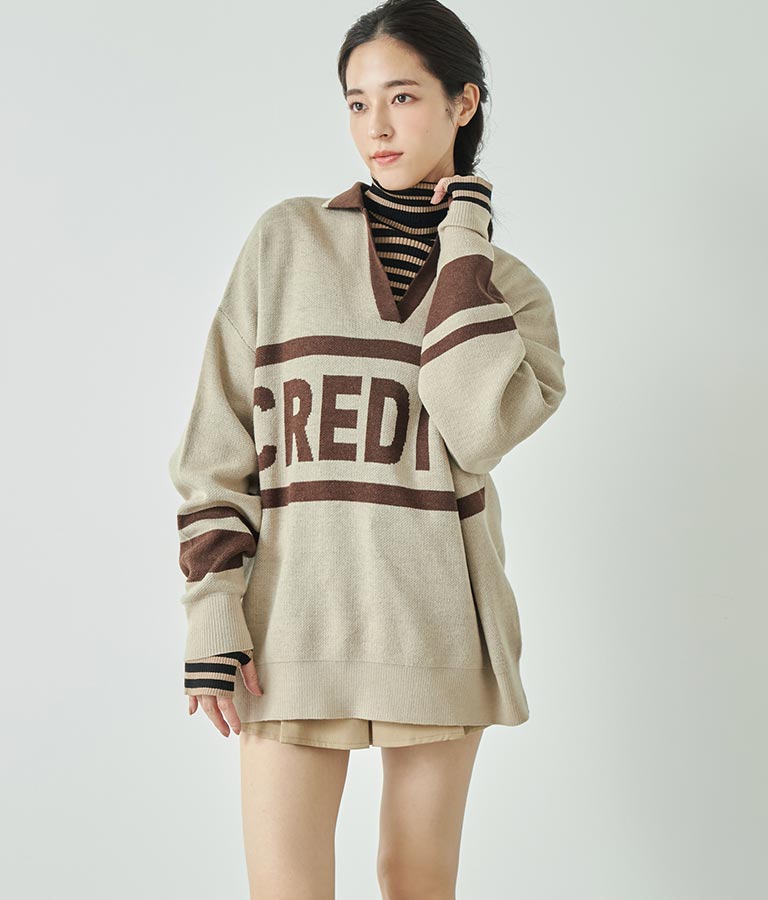 大きく施された英字がインパクト大のニットトップス。