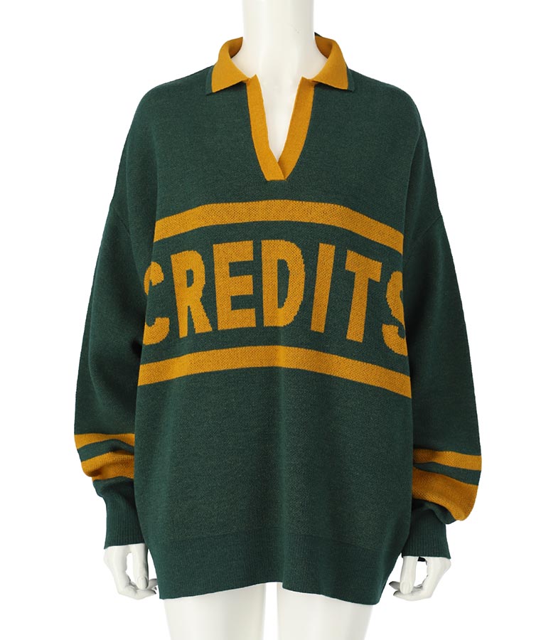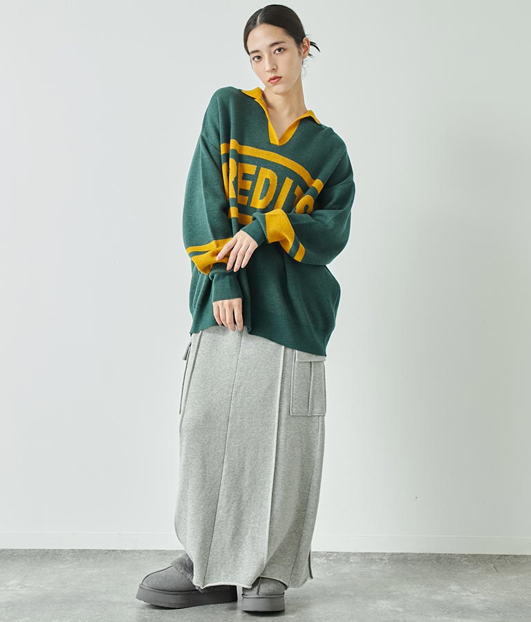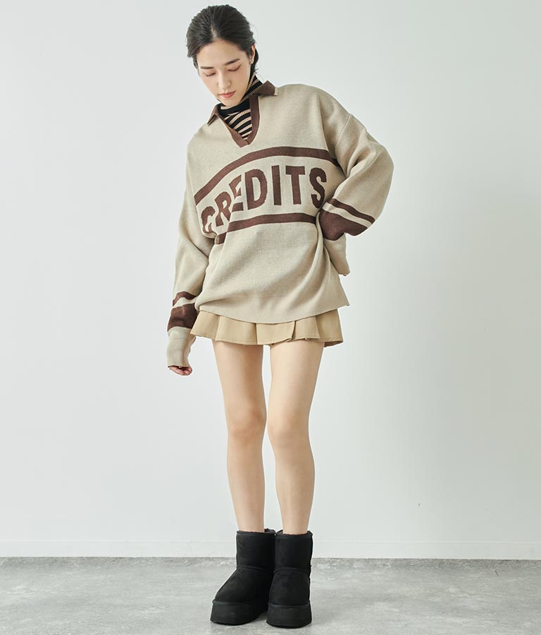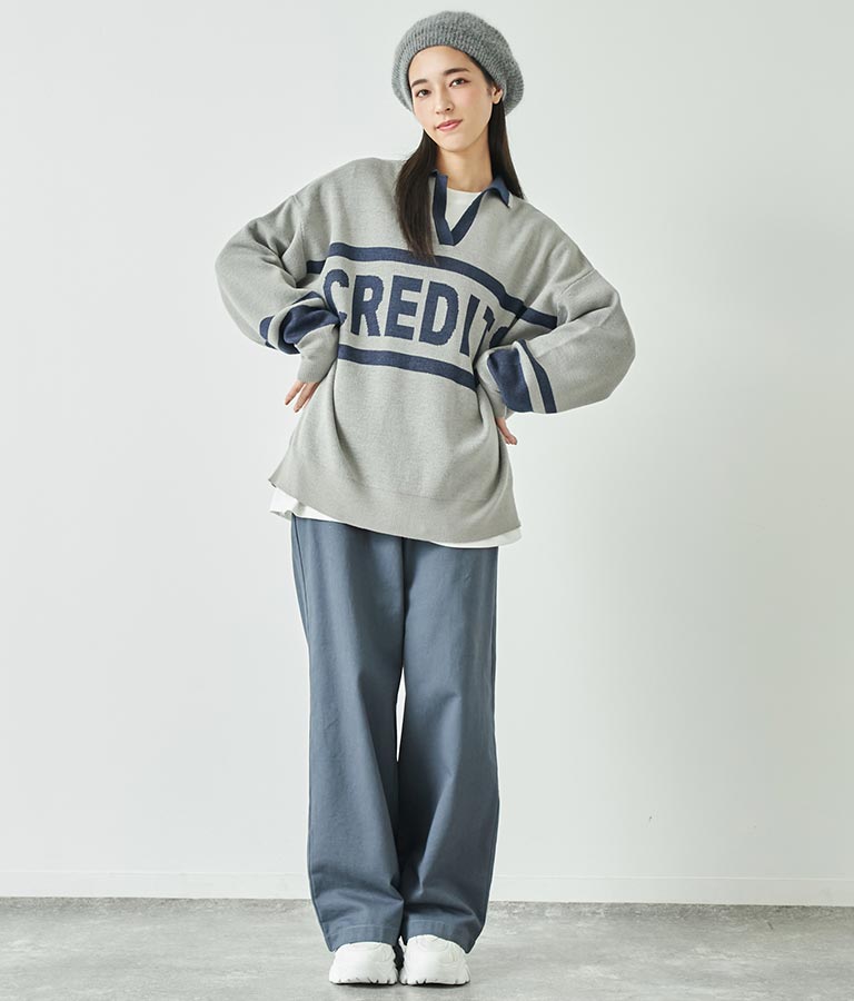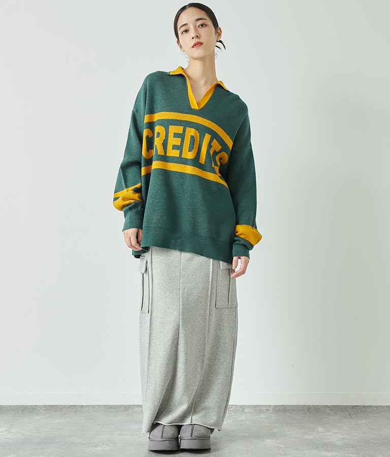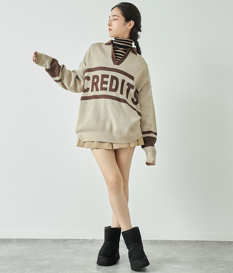 大きく施された英字がインパクト大のニットトップス。