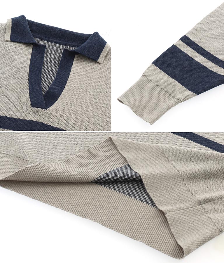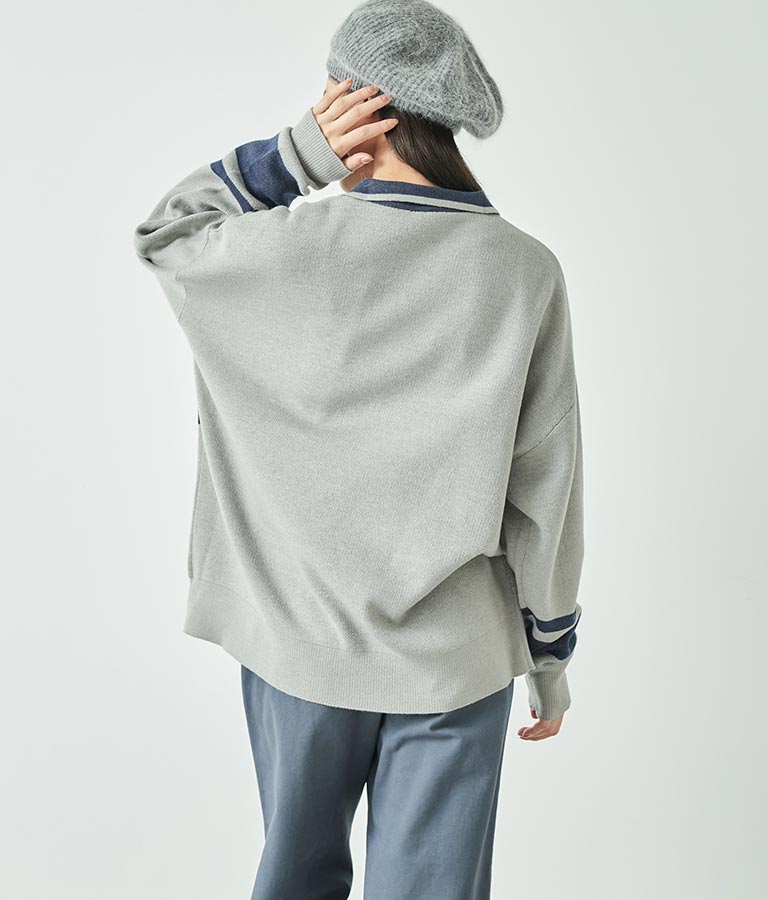 スキッパー ジャガード ニット トップス -
