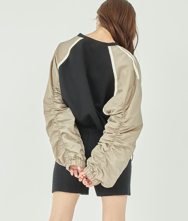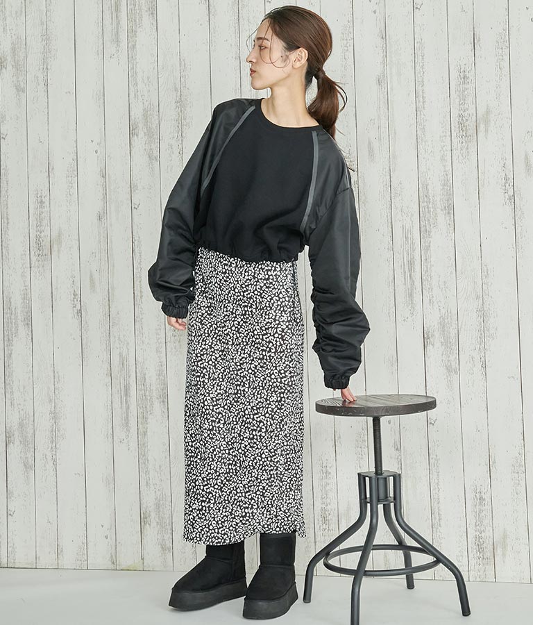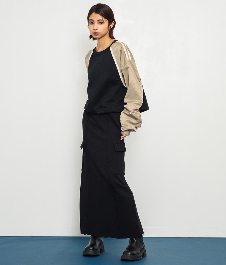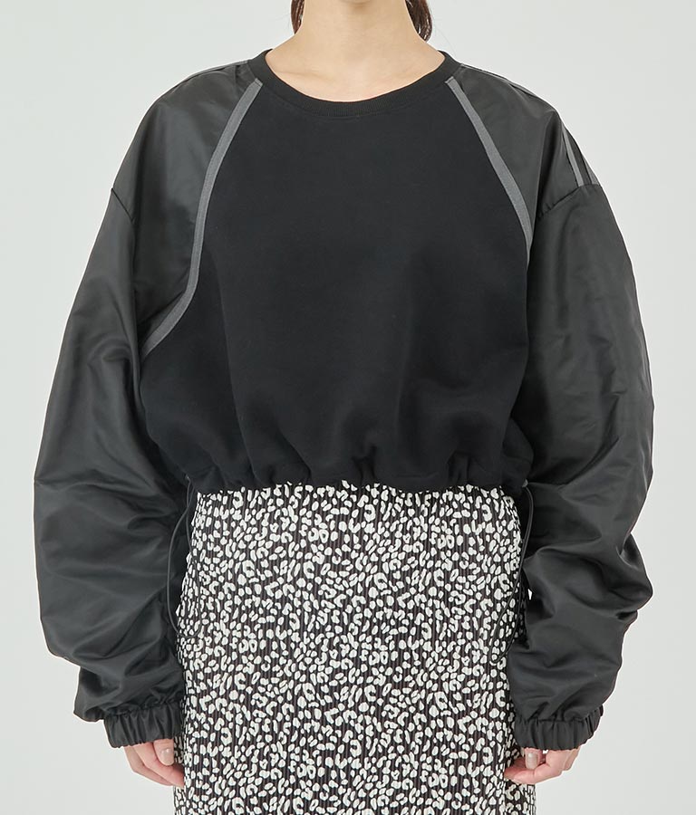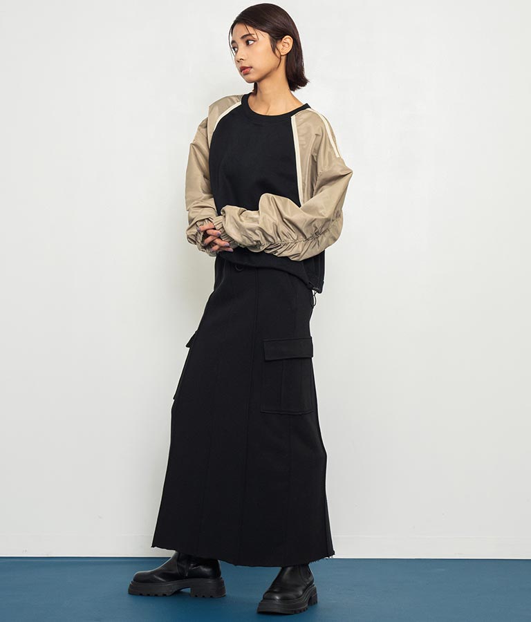 袖はシャカシャカとしたポリエステル素材で、肩に入ったダブルラインと相まってトレンドのスポーツMIXコーデにピッタリ!