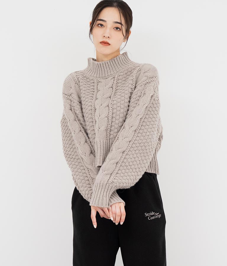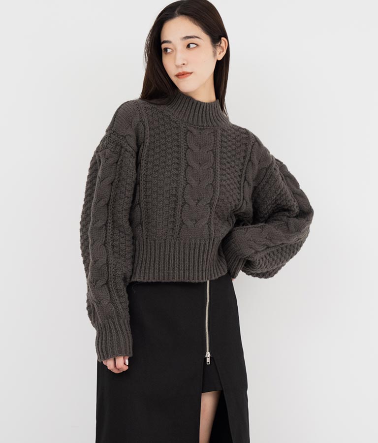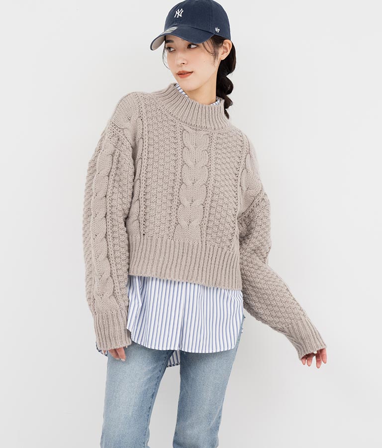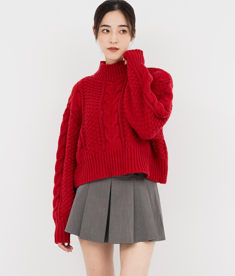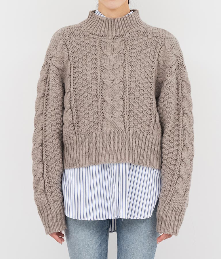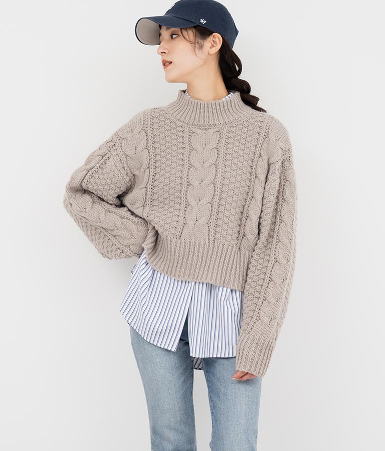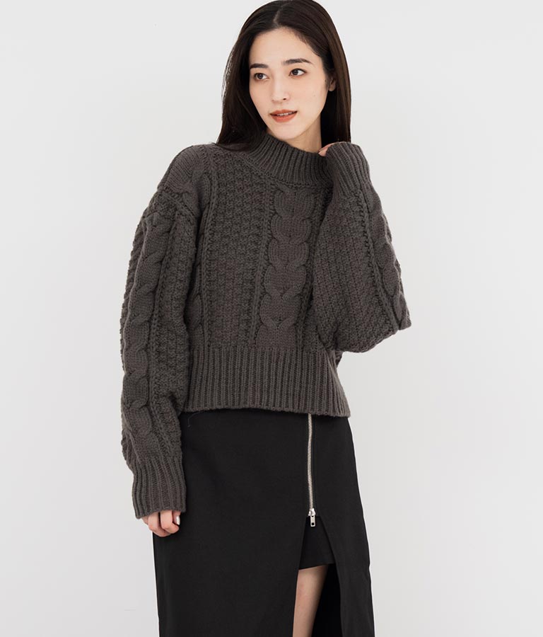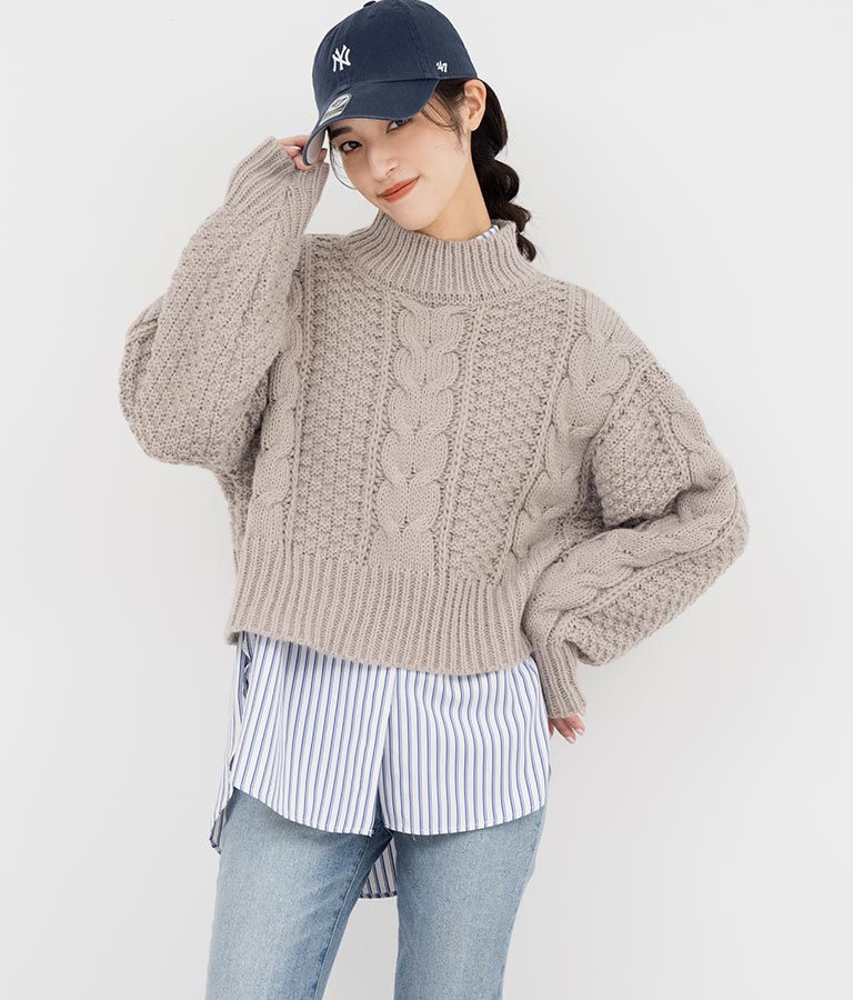 ケーブル編み ハイネック ニット トップス -