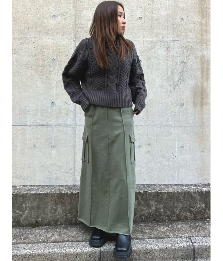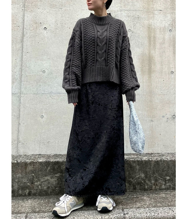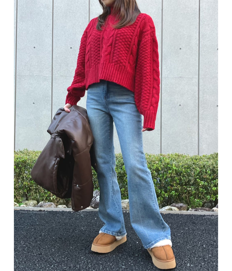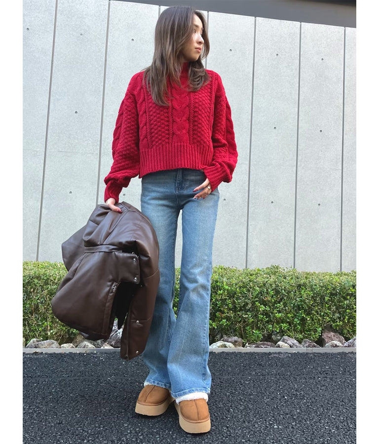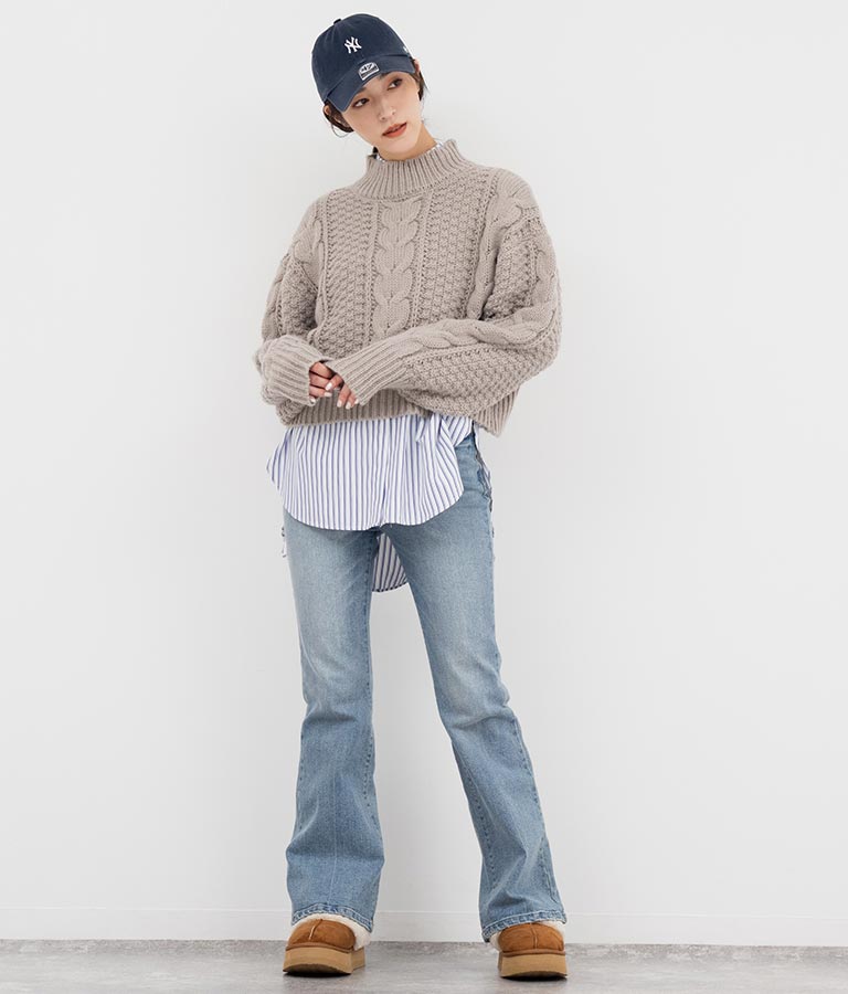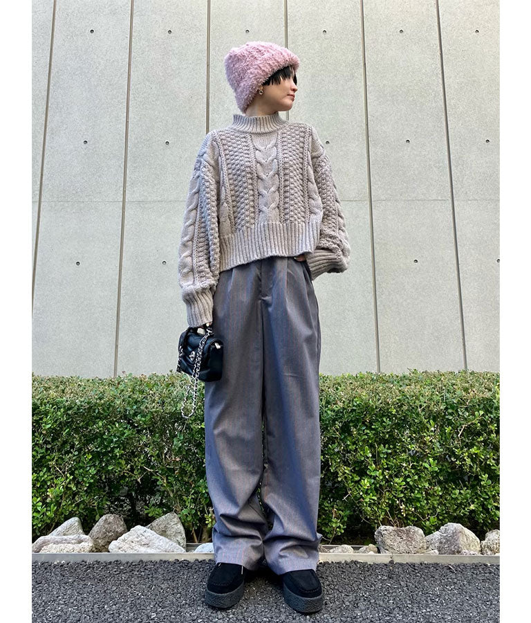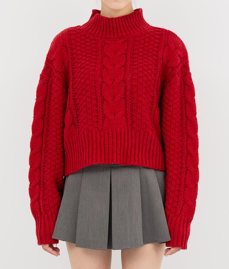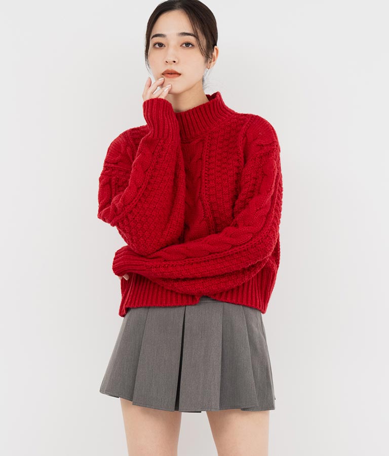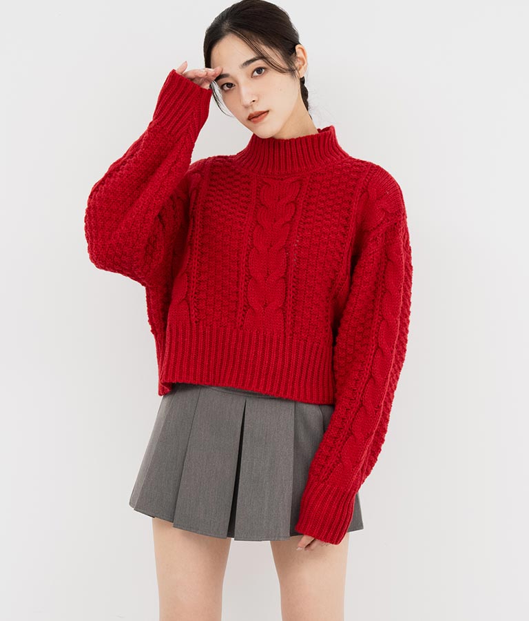 ケーブル編み ハイネック ニット トップス -
