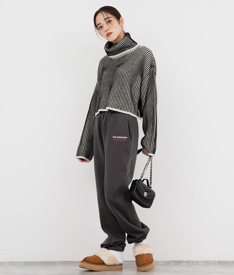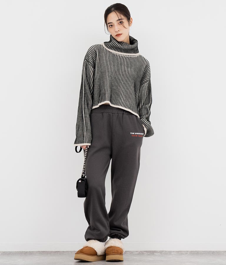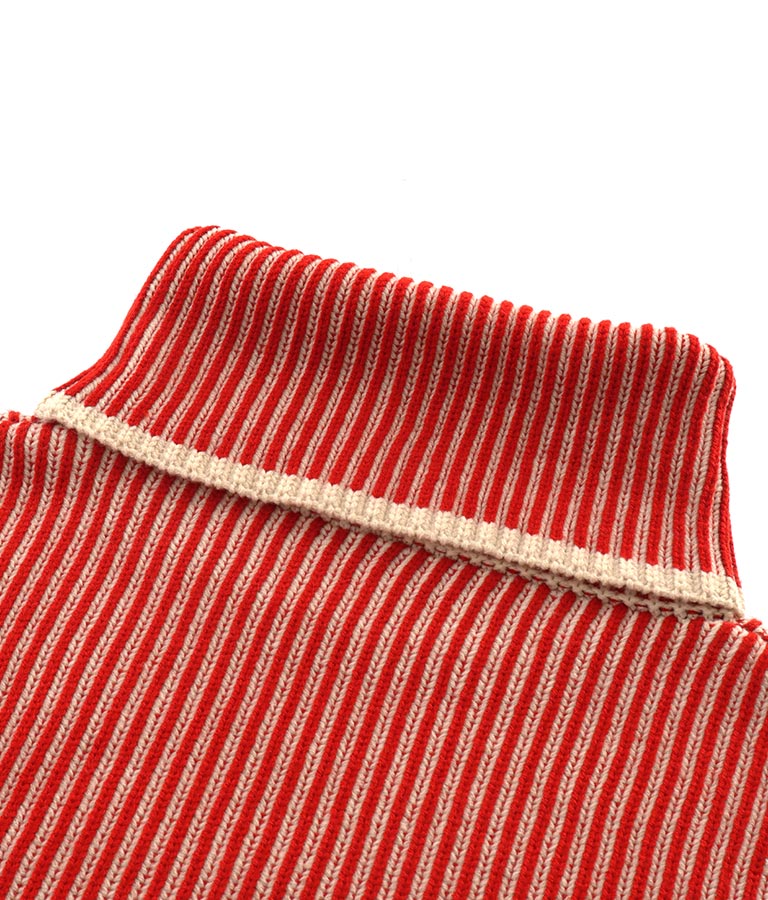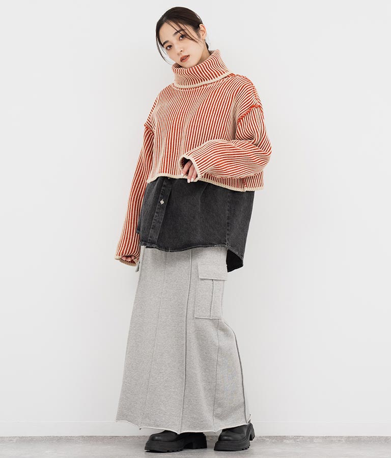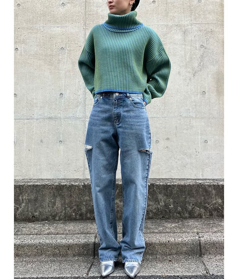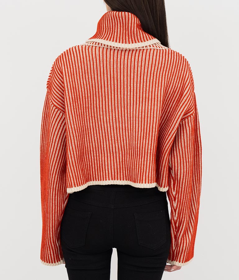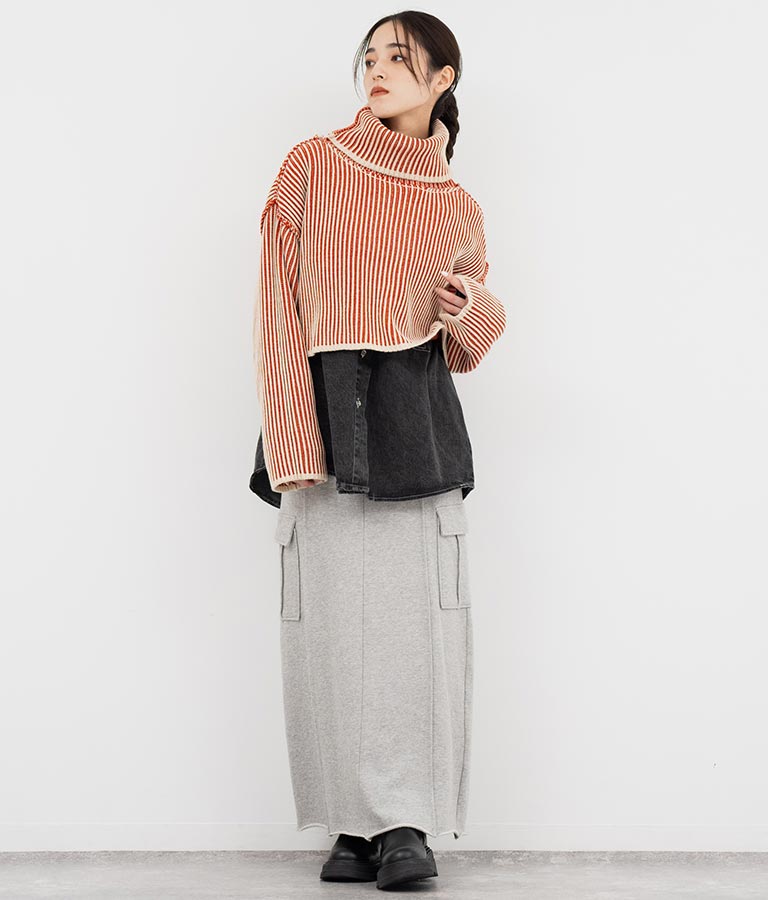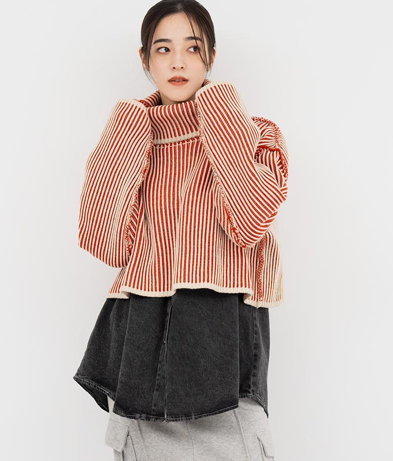 2色の糸で編んだ配色の見え方がポイントのタートルクロップドニット。