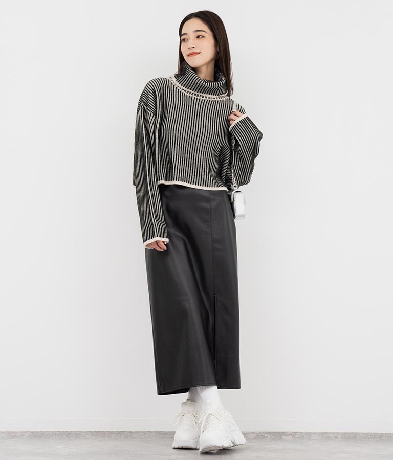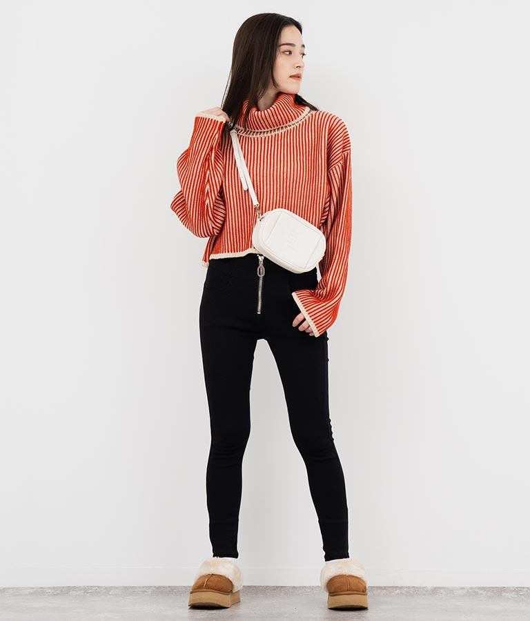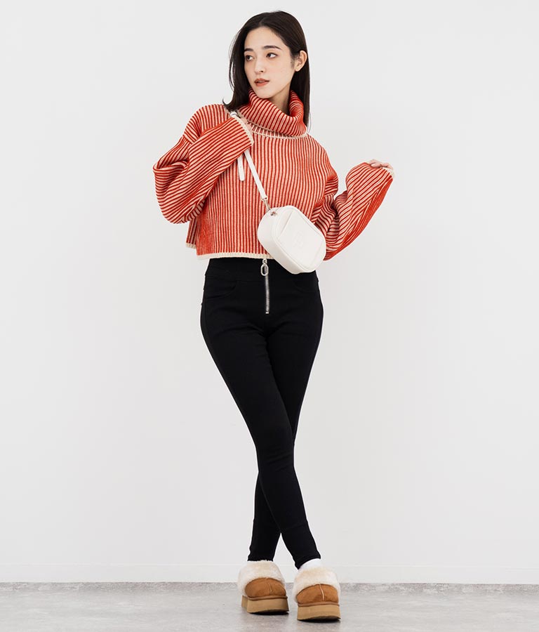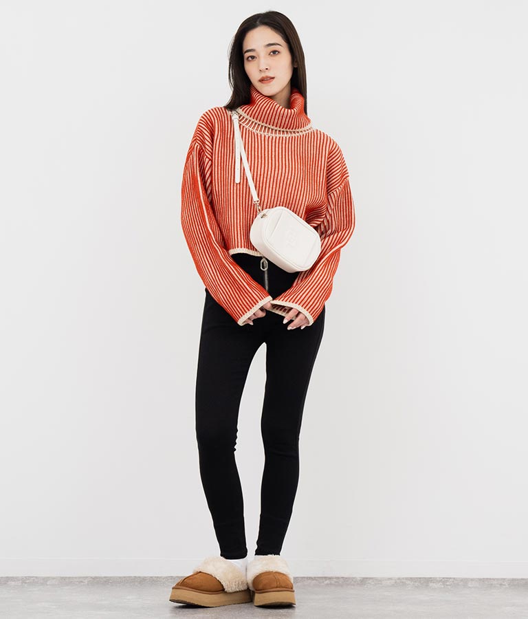 タートルネックが首周りをあたたかく包みます。
