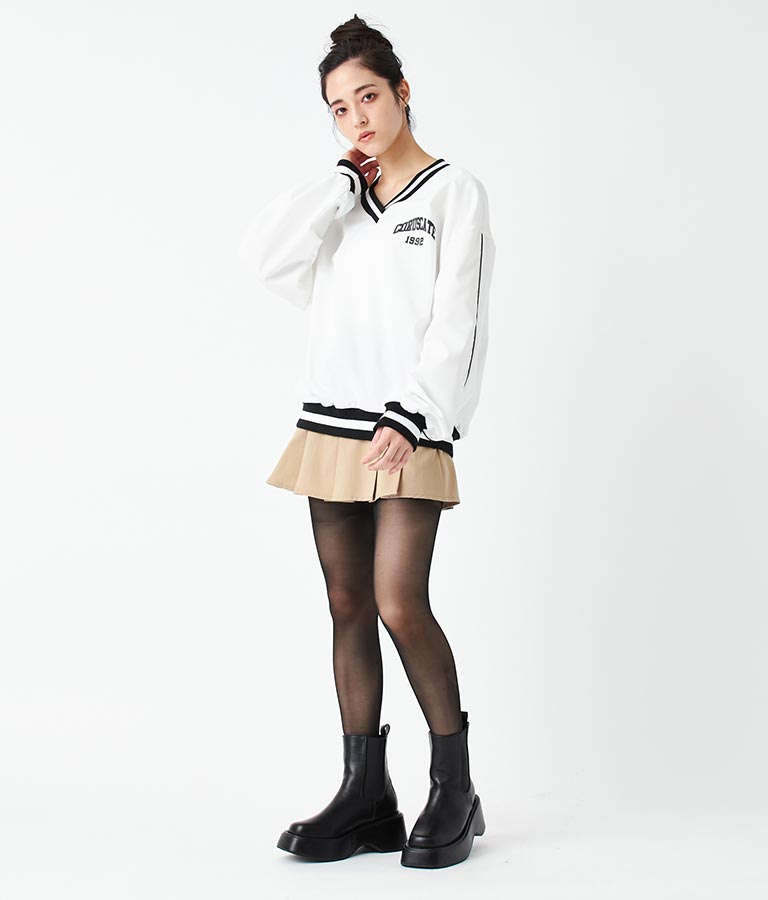 Vネック ライン リブ プルオーバー -