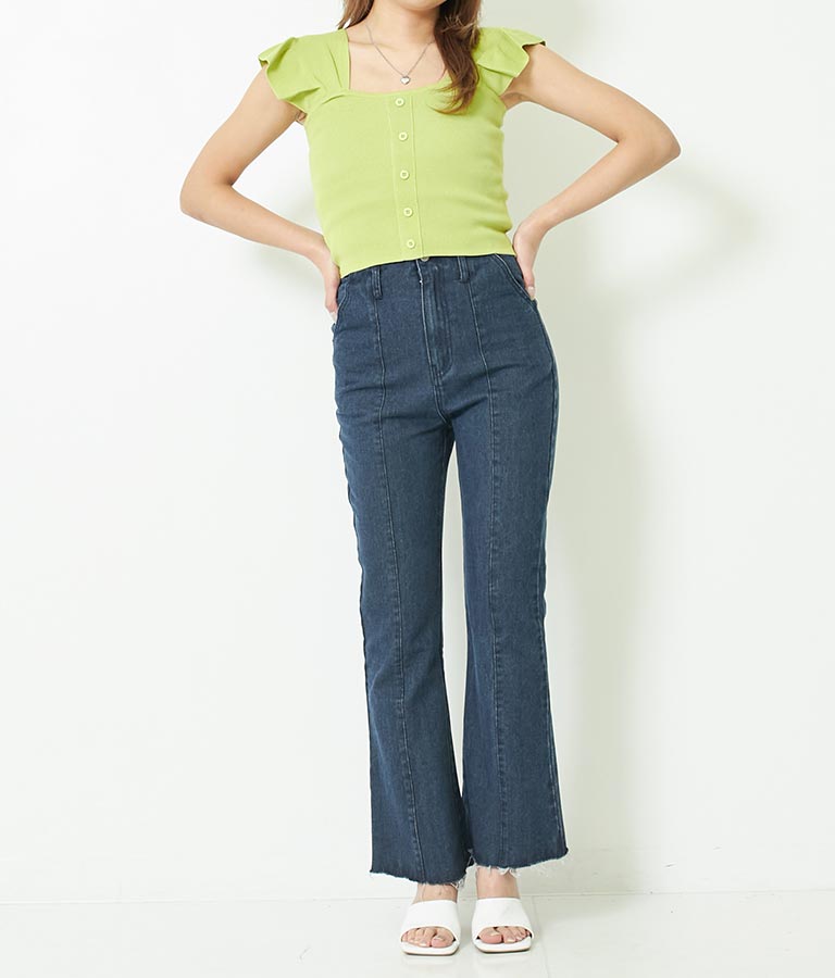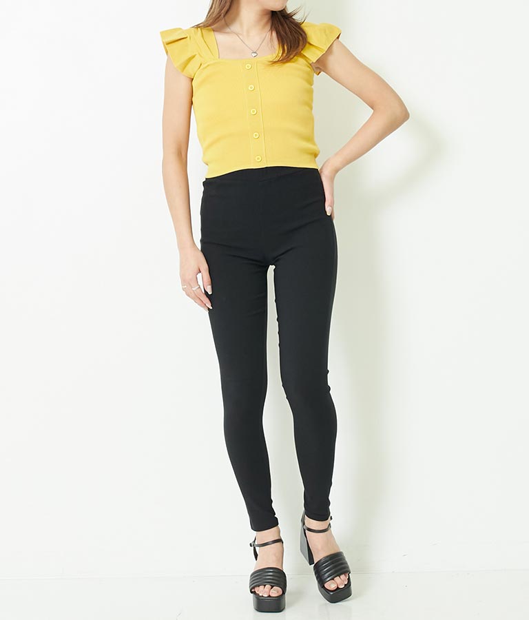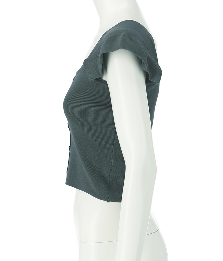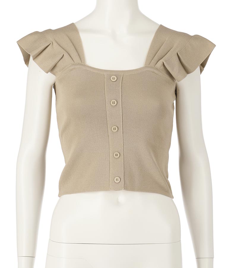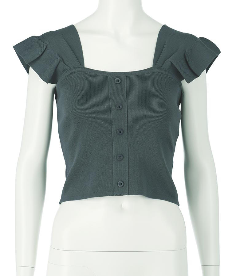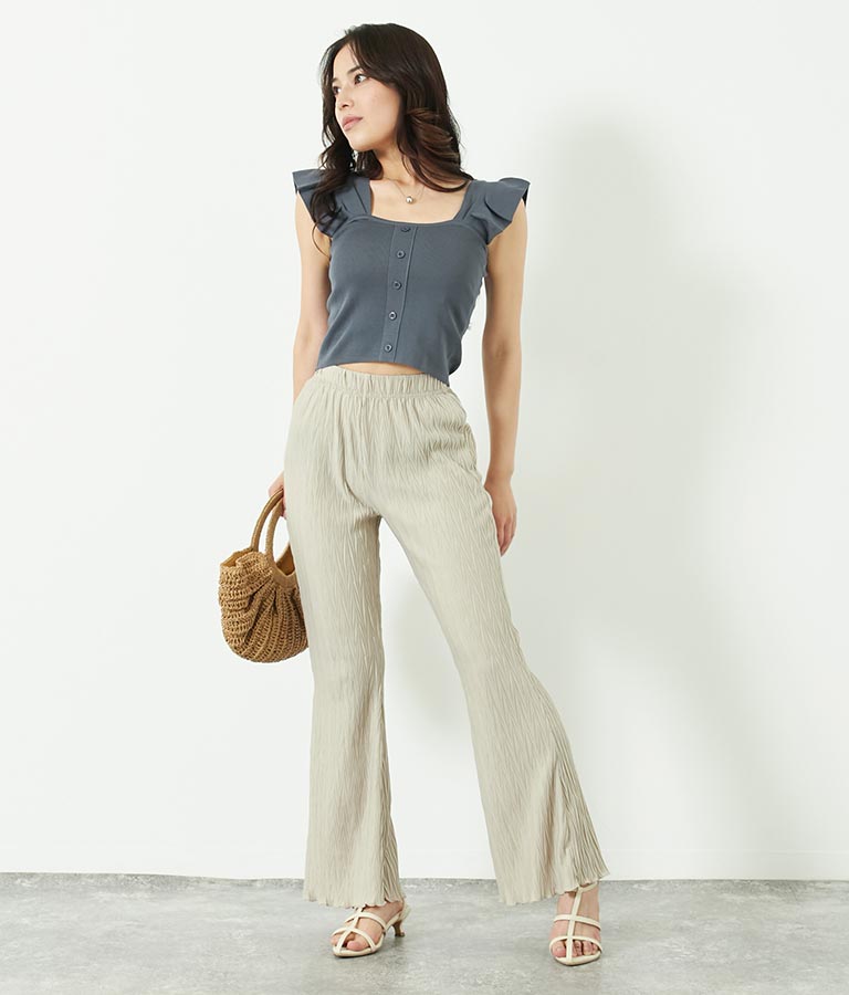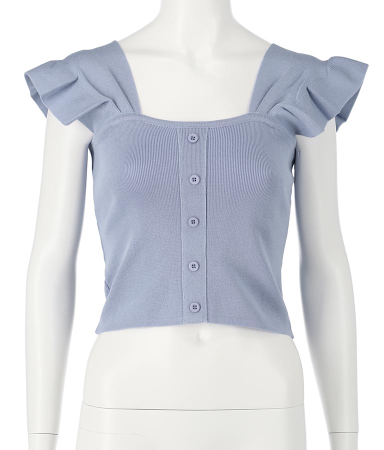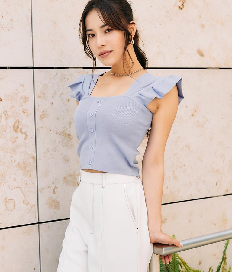 肩のフリルが華奢見えし、どんなボトムとも相性抜群です。