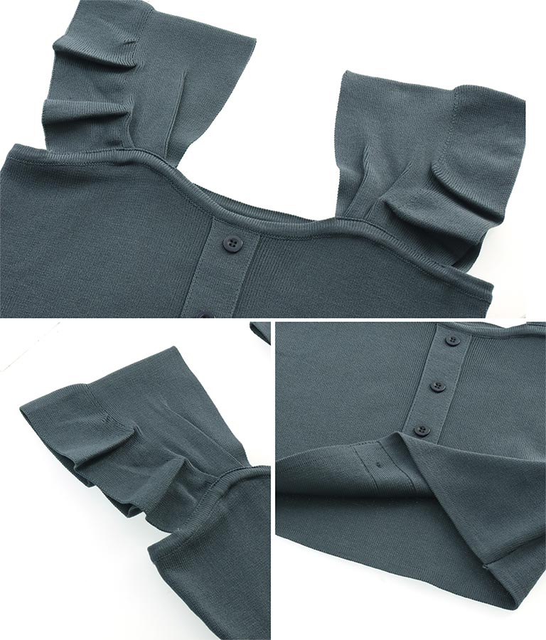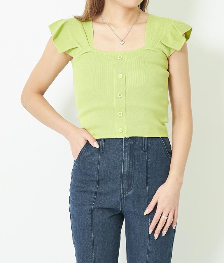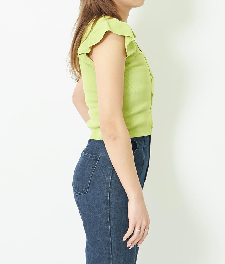 袖フリルサマーニットトップス