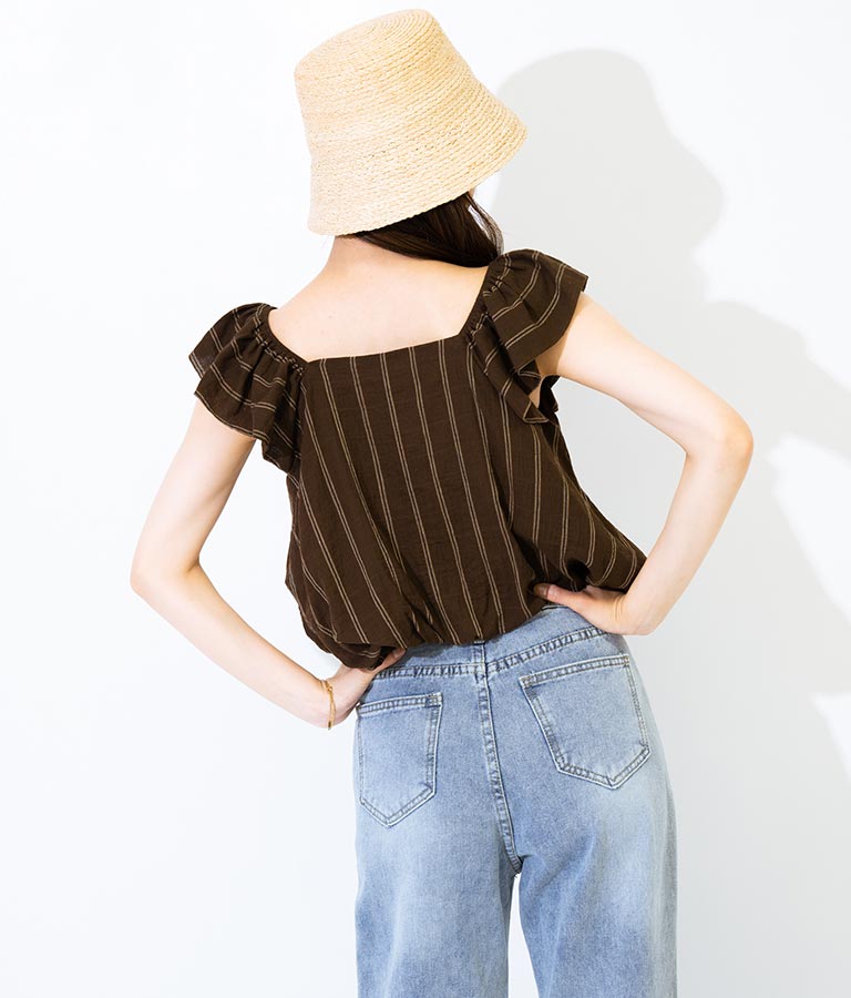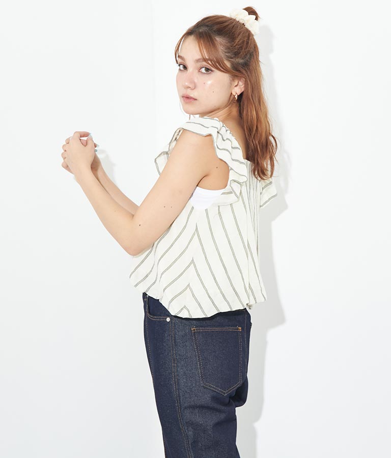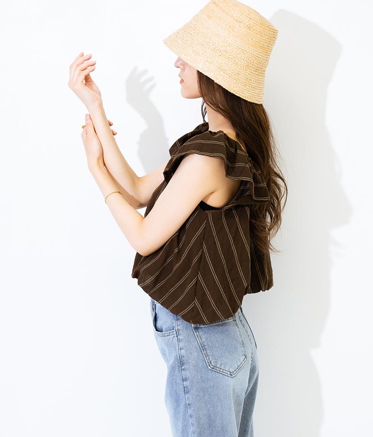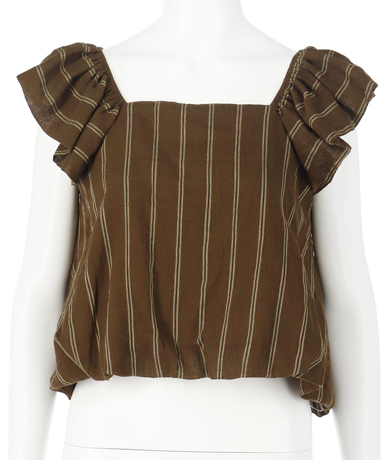 ショルダー部分はフリルになっているため、肩のラインを自然にカバー◎