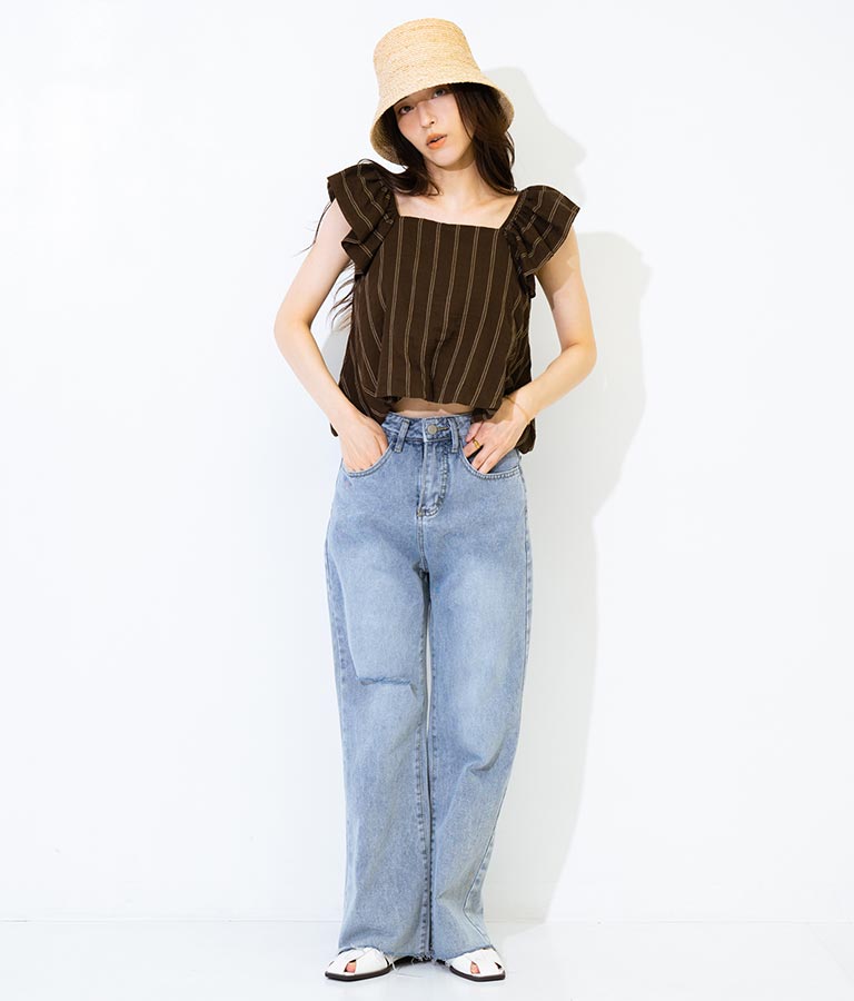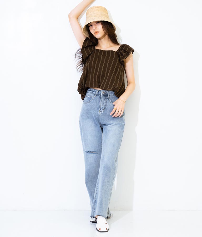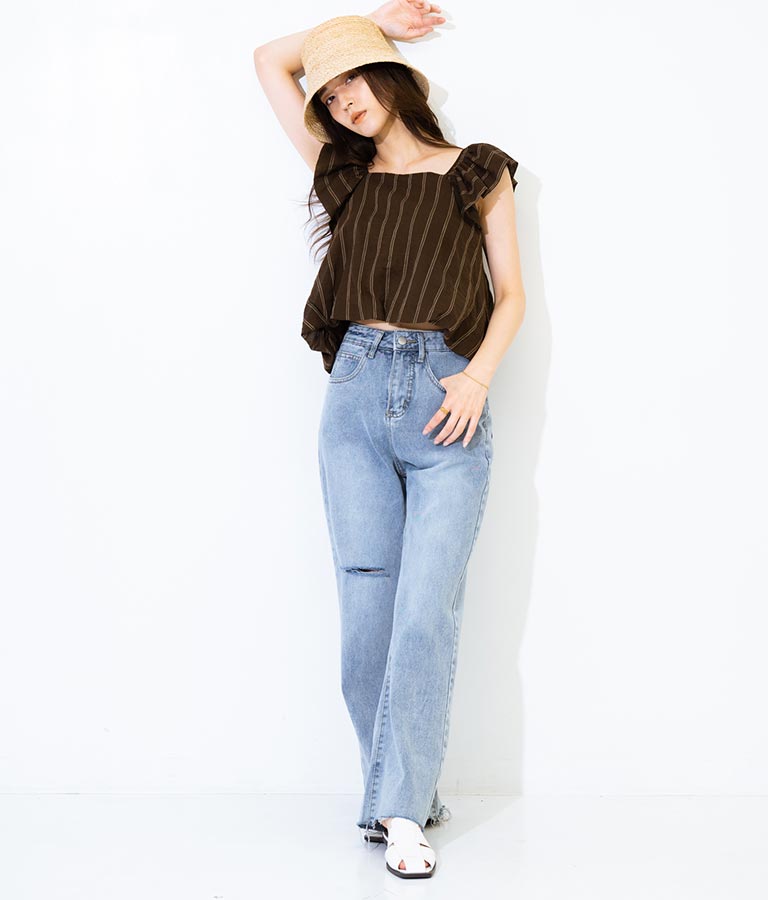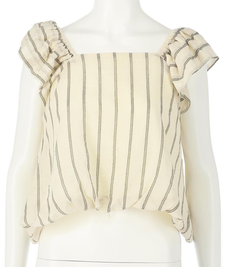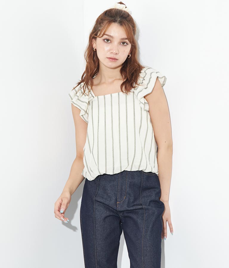 デコルテラインが美しく映えるスクエアネックのトップス。