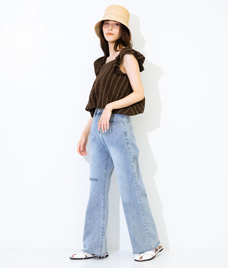薄手で涼しげな素材のため、カジュアルなデニムパンツなどと好マッチ。
