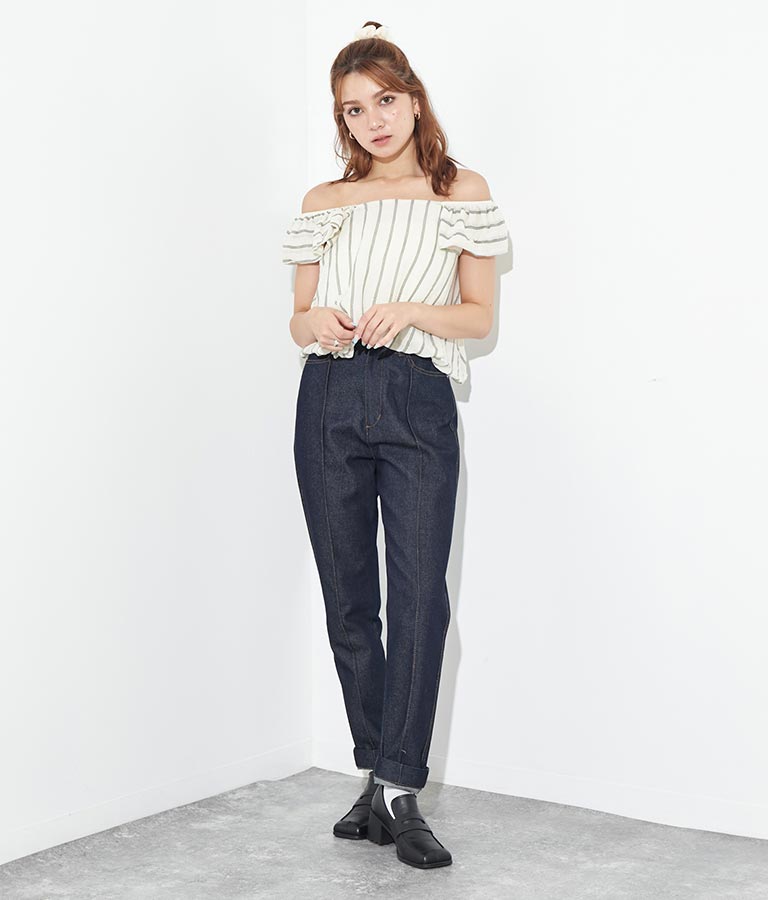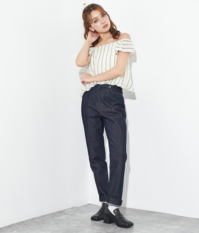 肩を落としてオフショルダーとしても着用可能な2WAYなので、その日の気分でスタイリングでき、コーデの幅が広がります。