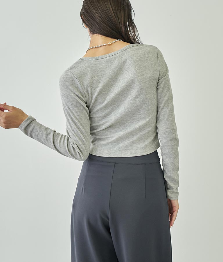 前後のUネックデザインがデコルテを綺麗に見せてくれ、落ち着いた色味で大人っぽさを演出してくれる1枚です。
