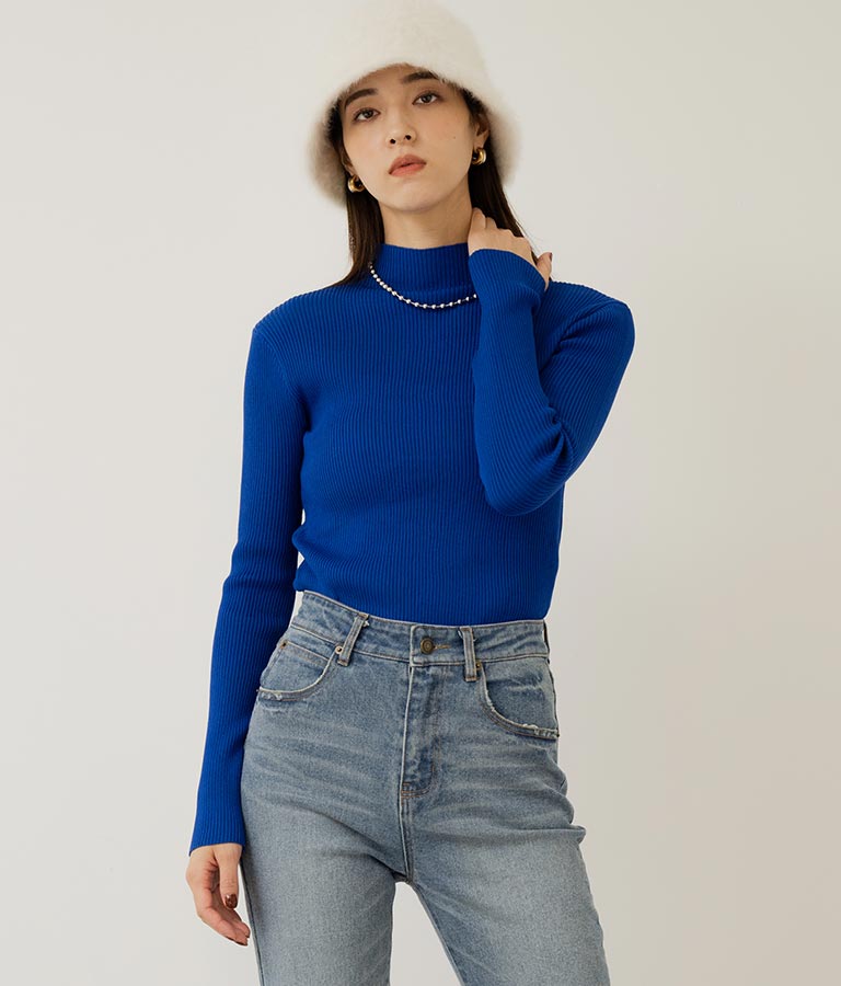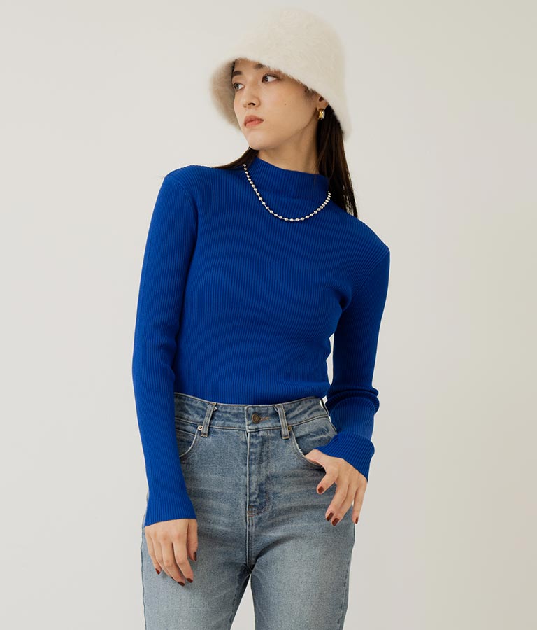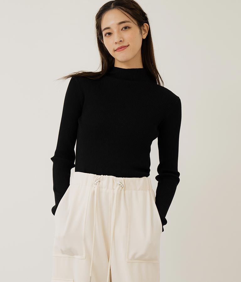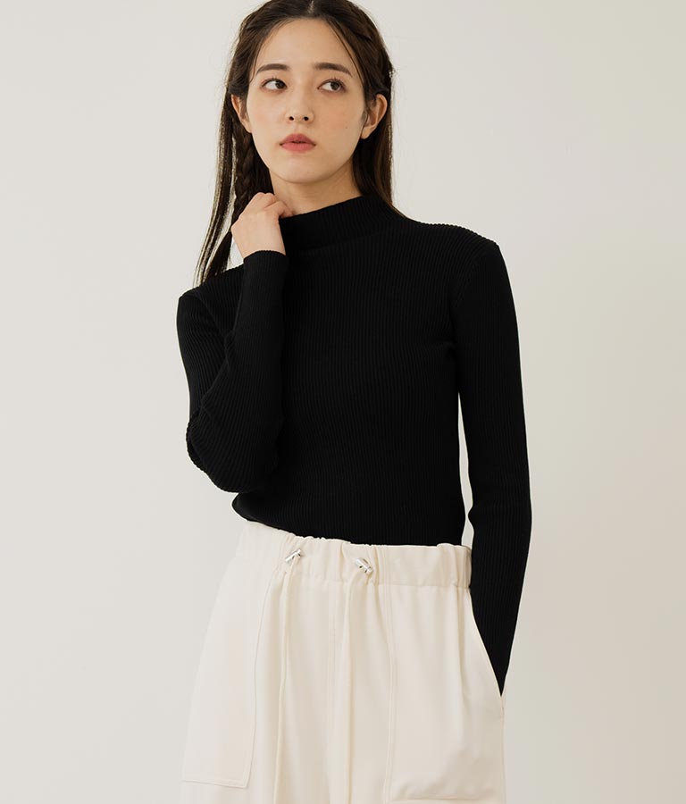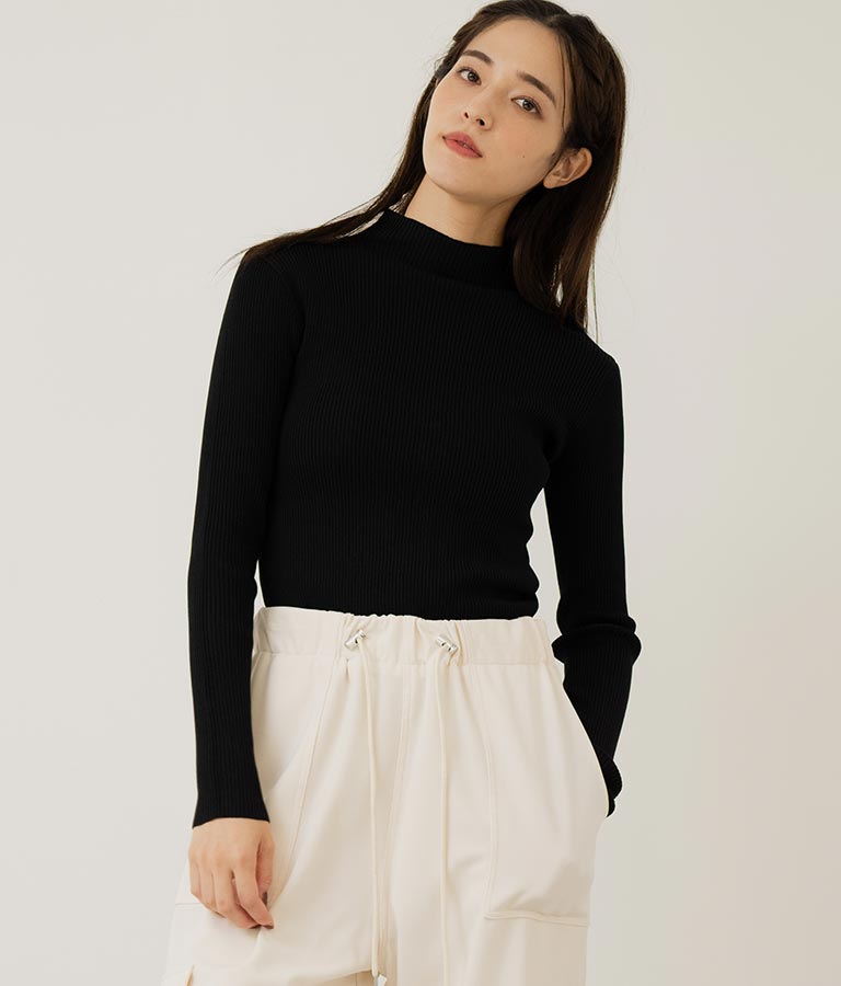 プチハイネックリブニットトップス 長袖 -