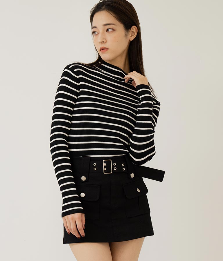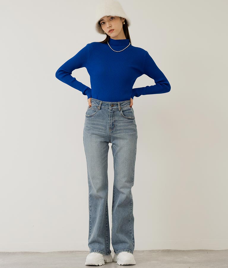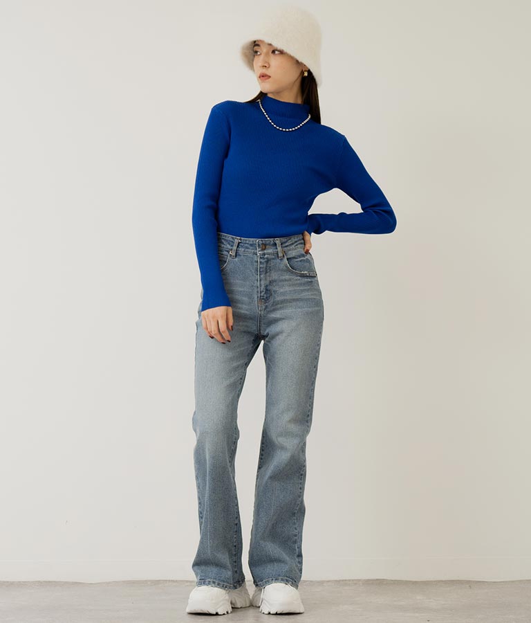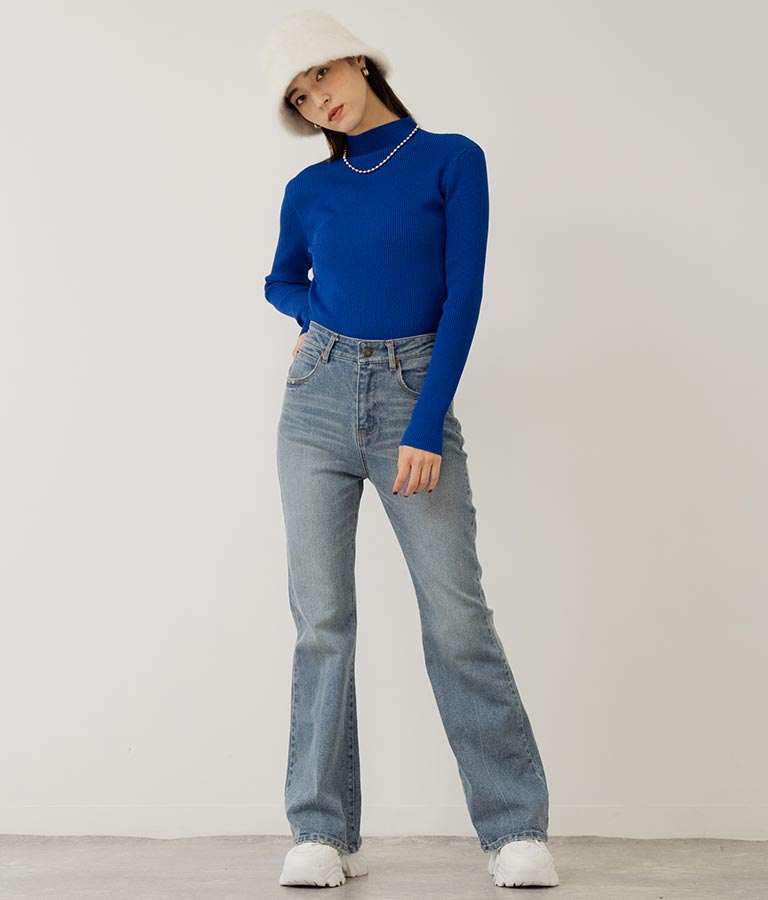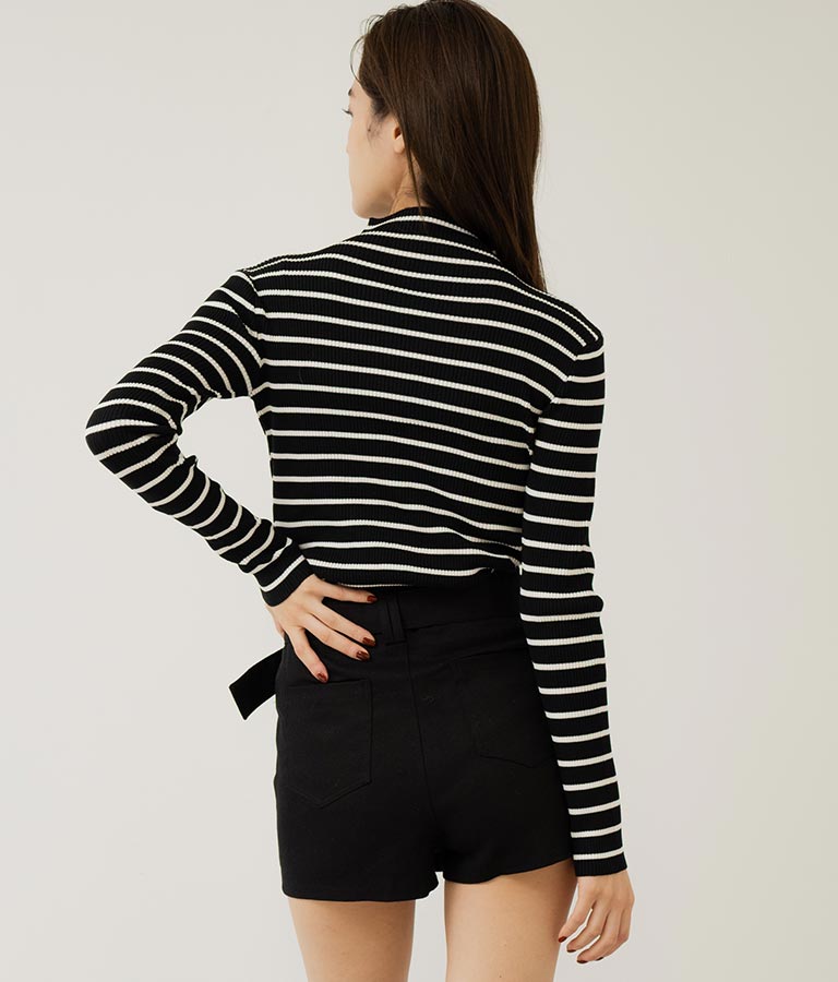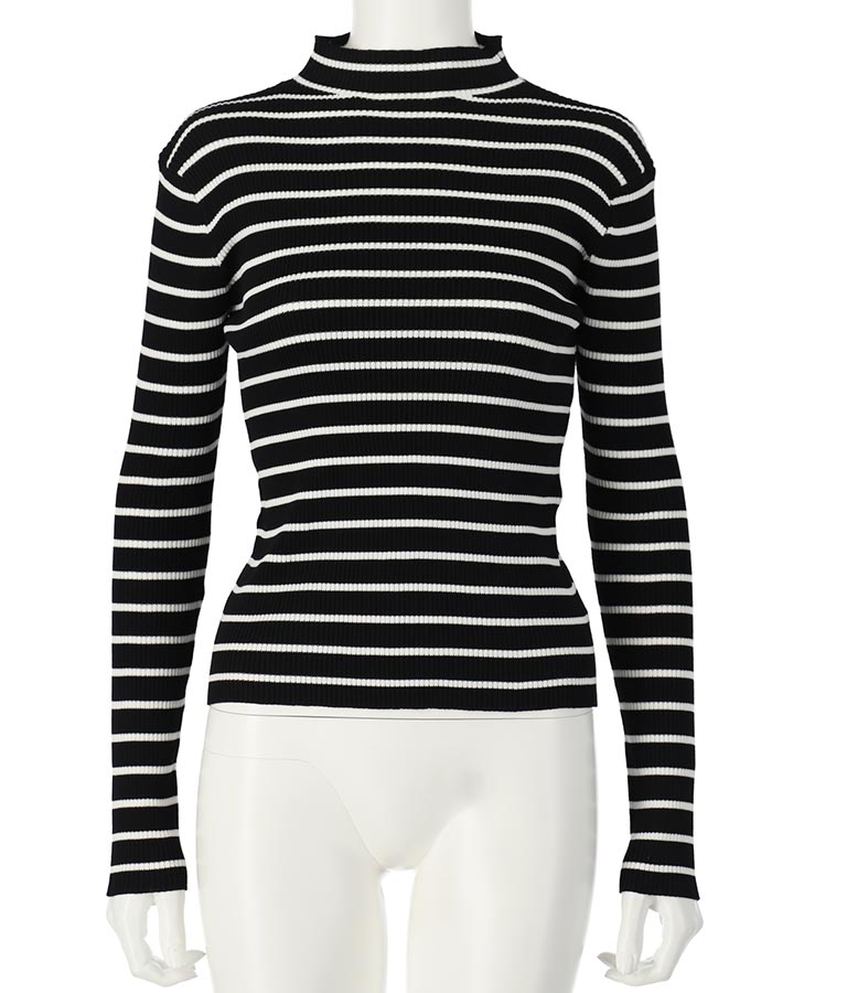 プチハイネックリブニットトップス 長袖 -