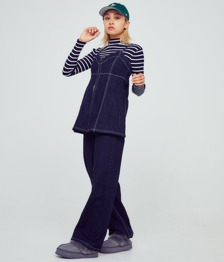 1枚でモードに着こなしても、カジュアルなサロペットなどのインナーにしてもサマになるアイテムです。