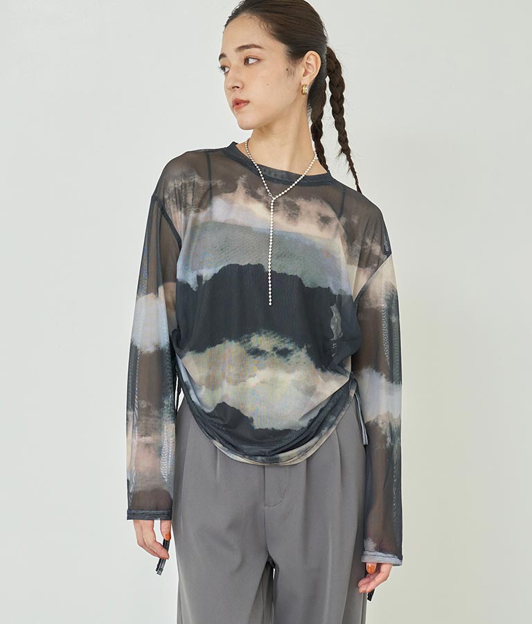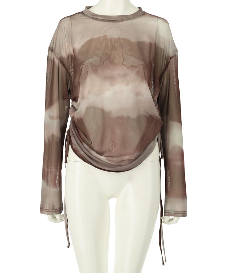 ニュアンス柄サイドシャーリングシアートップス 153-5494