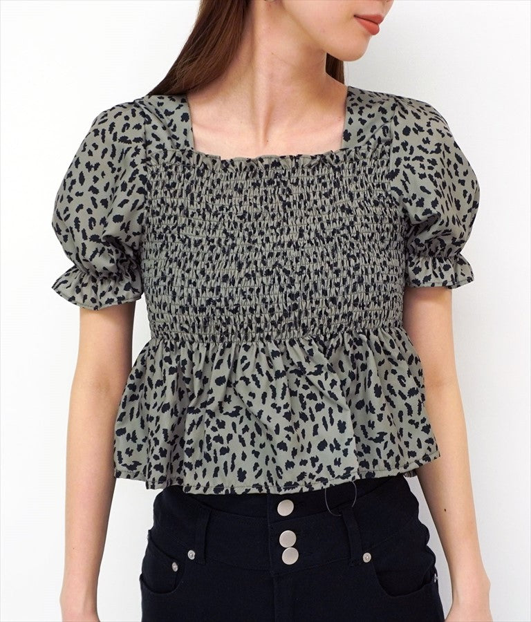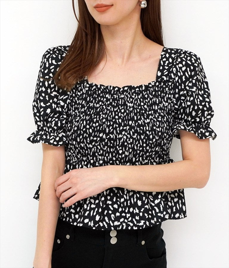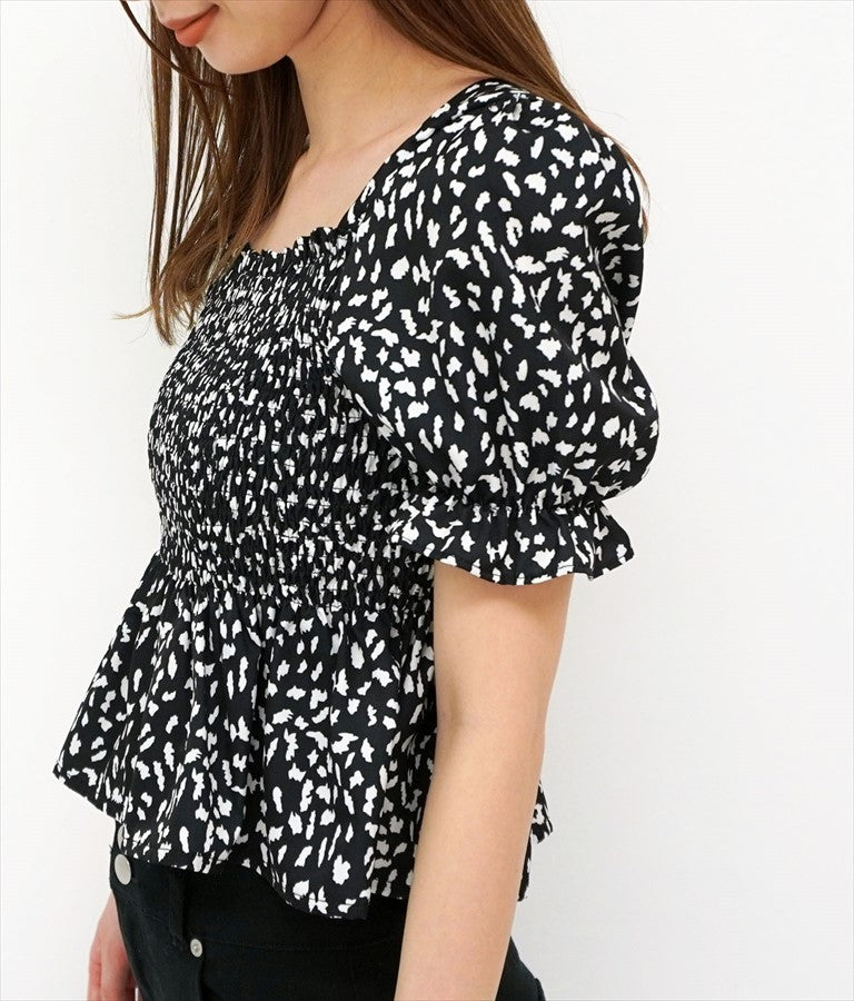 総柄 シャーリング トップス【親子お揃い】 153-5567