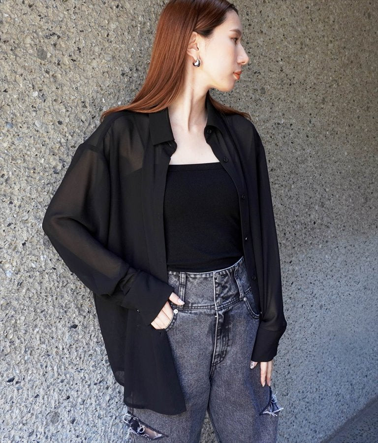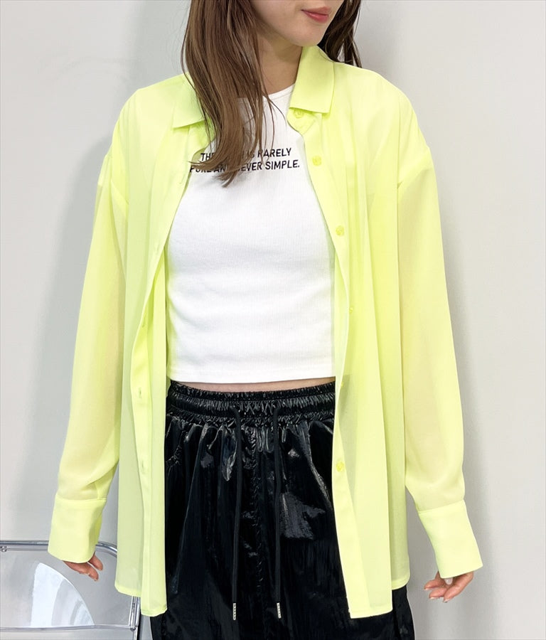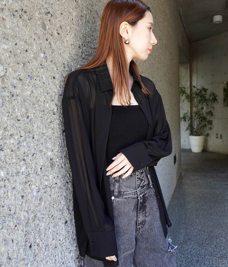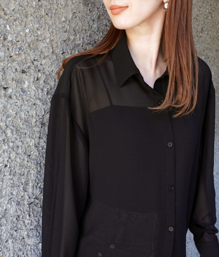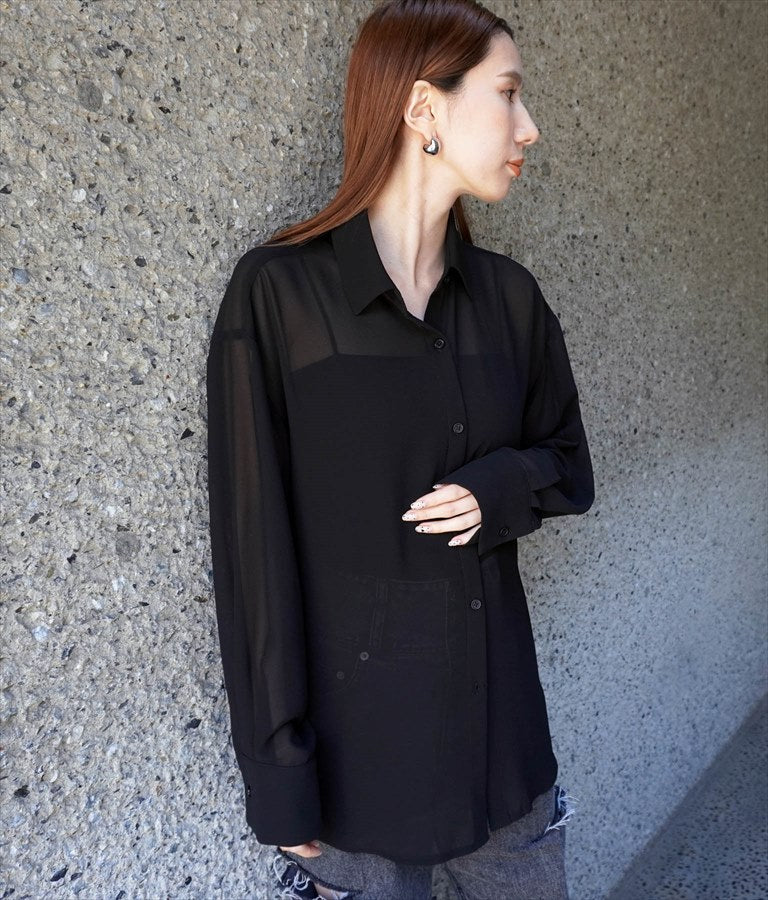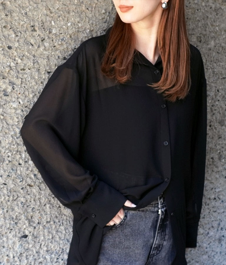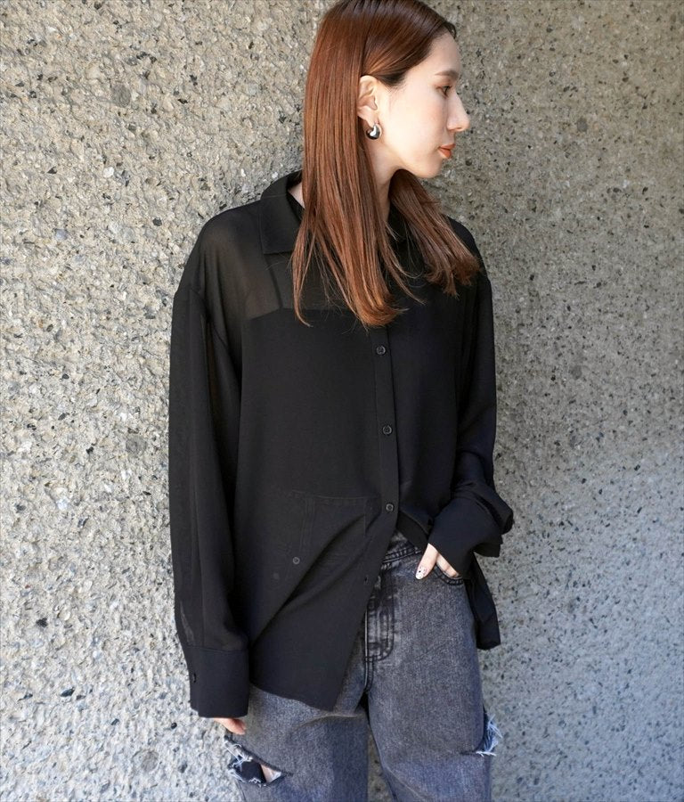 シアー素材が抜け感たっぷりなバックラウンドシアーシャツ。