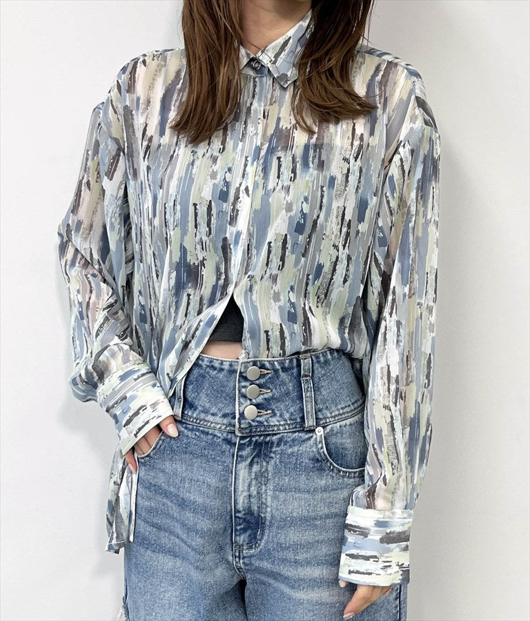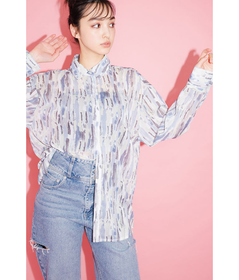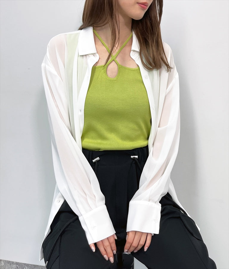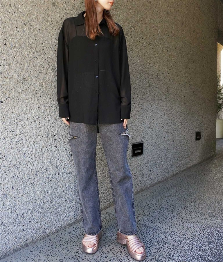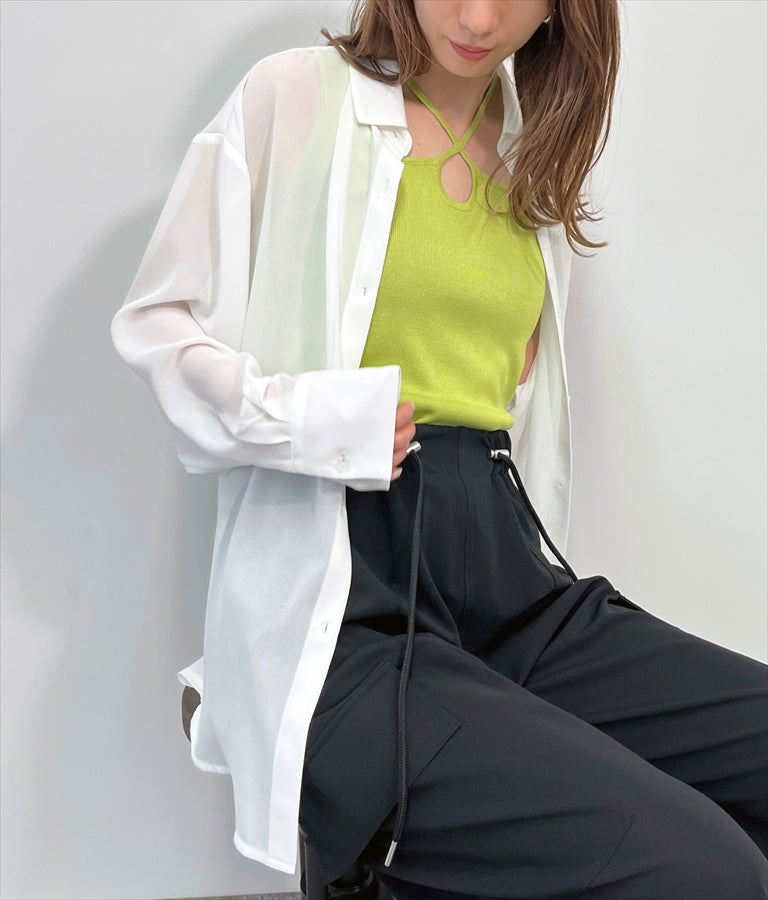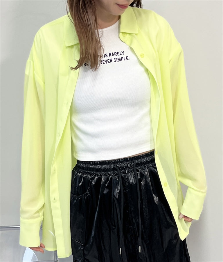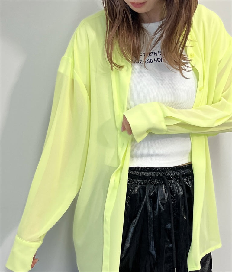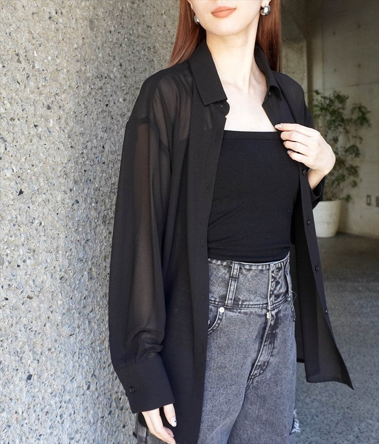 シアー素材が抜け感たっぷりなバックラウンドシアーシャツ。