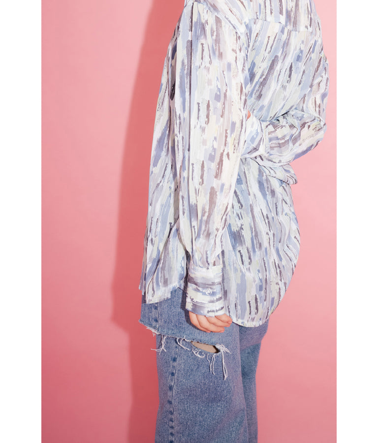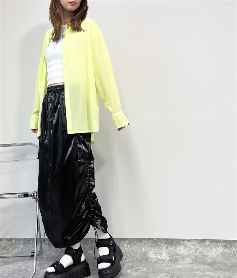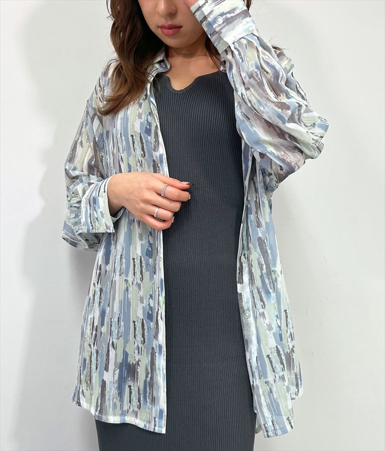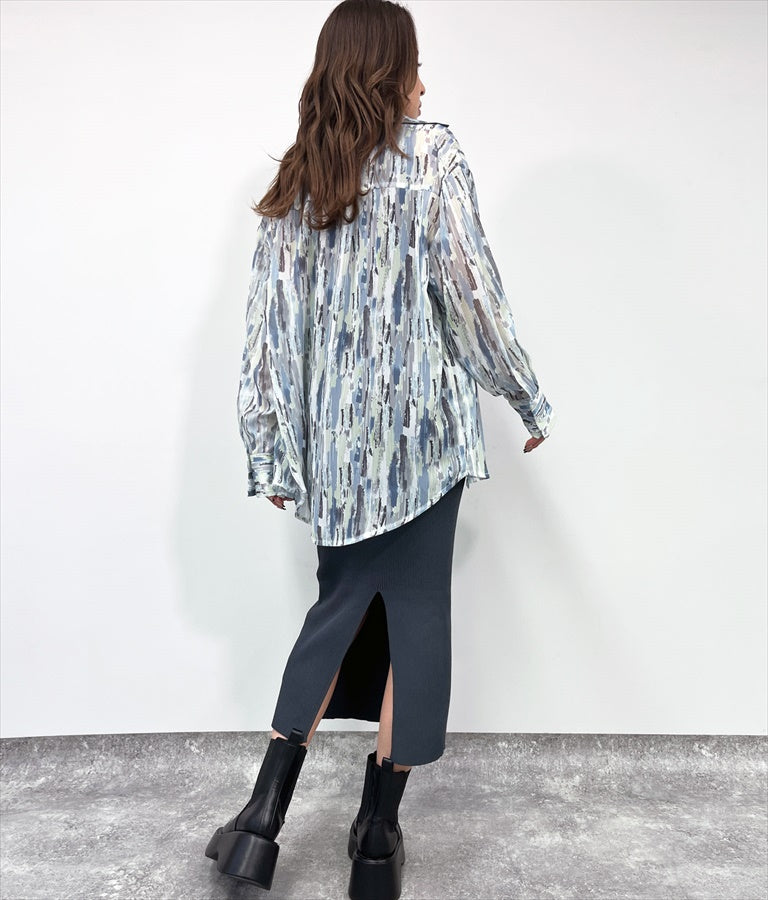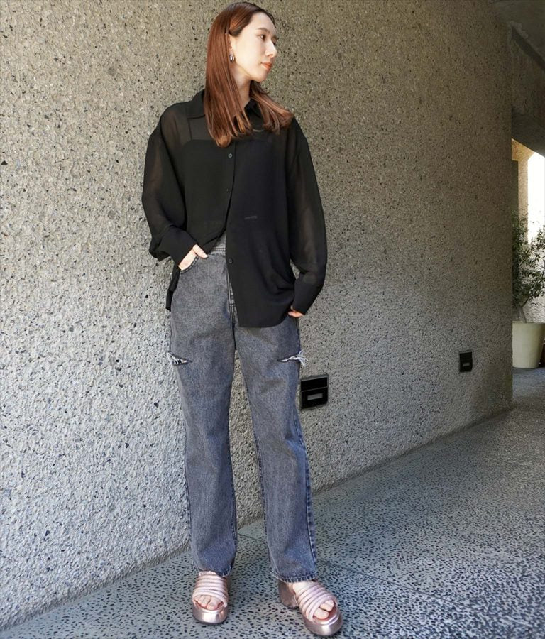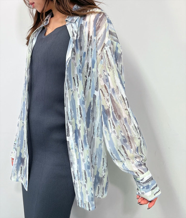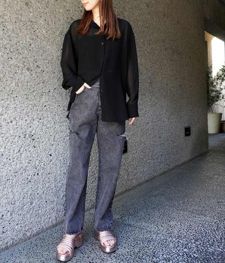 シアー素材が抜け感たっぷりなバックラウンドシアーシャツ。
