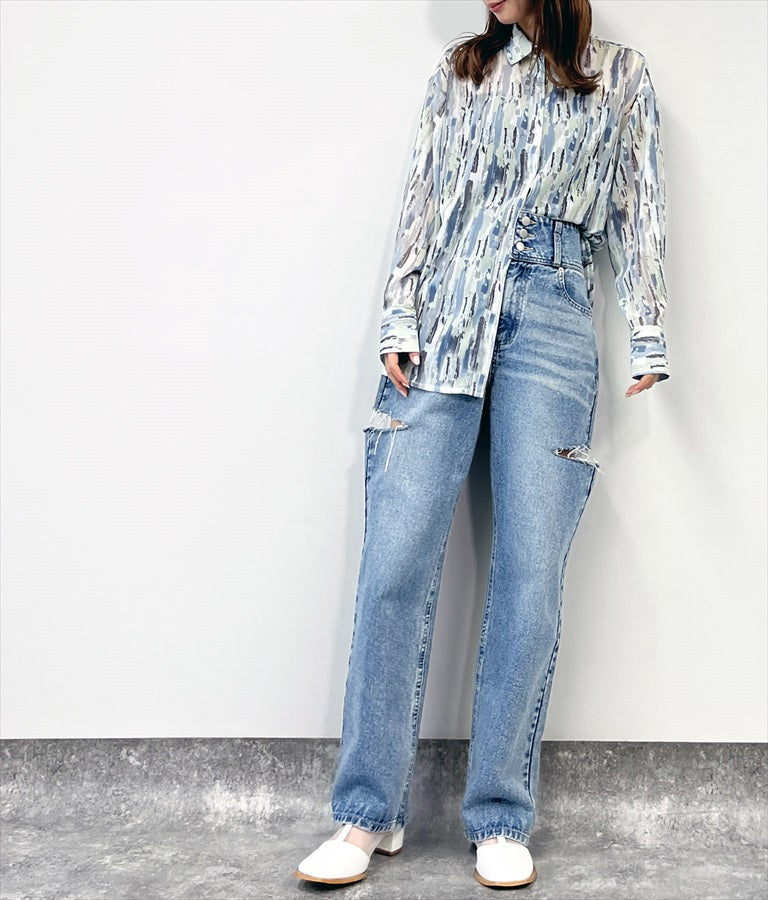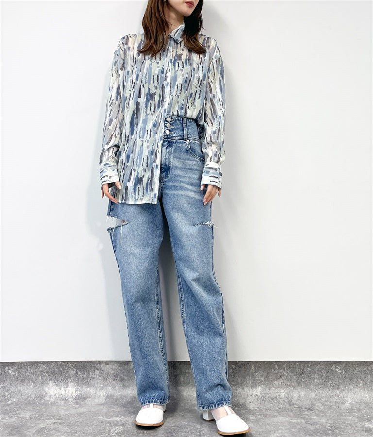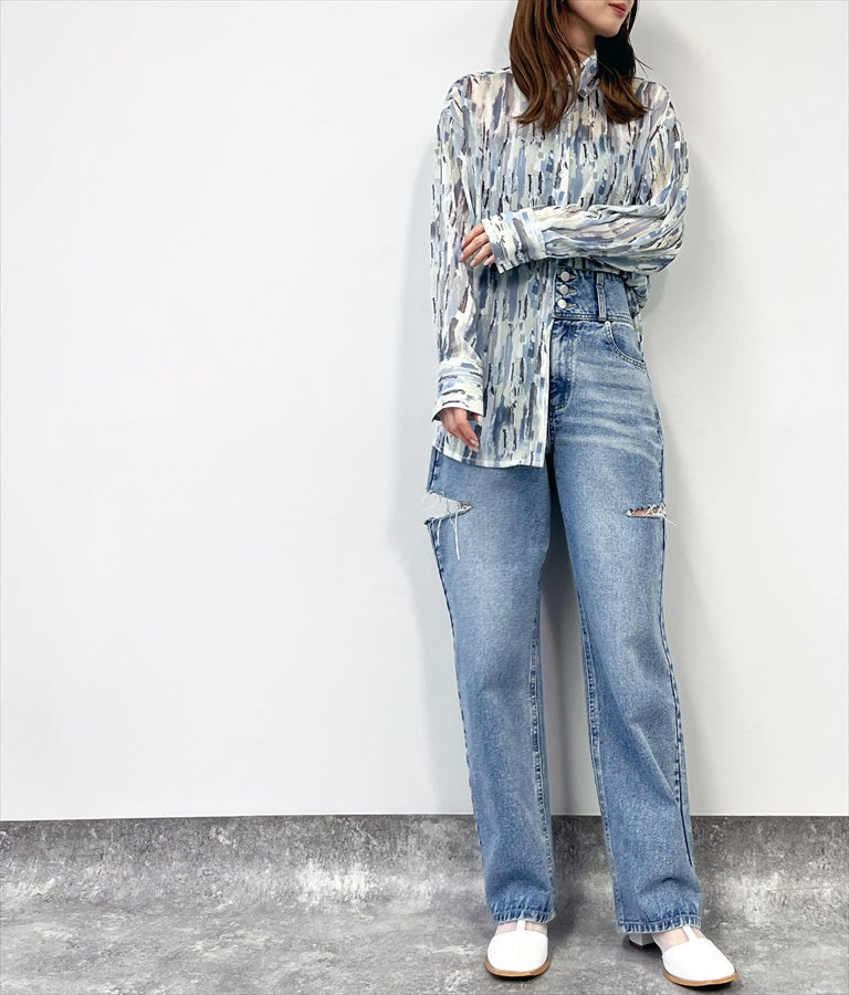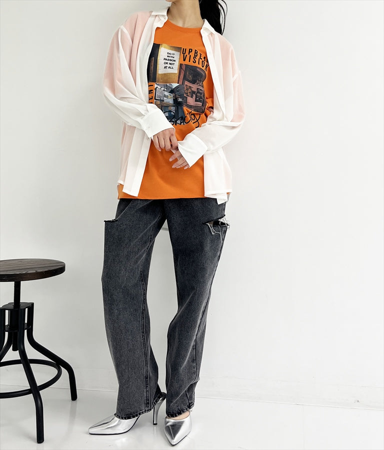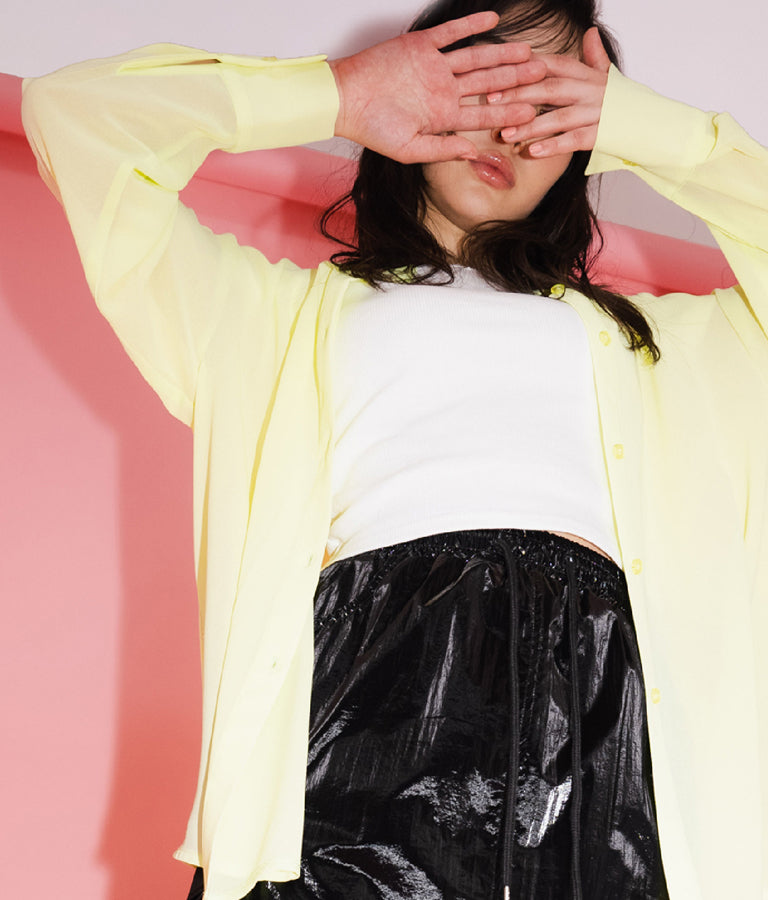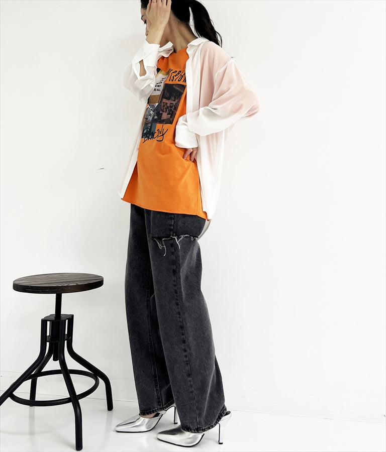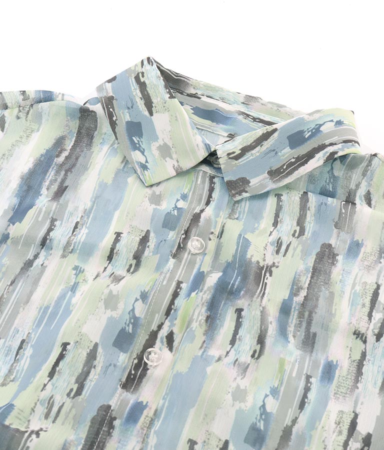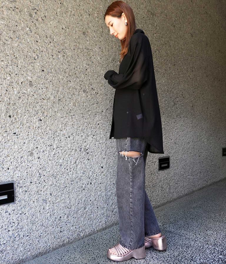 シアー素材が抜け感たっぷりなバックラウンドシアーシャツ。
