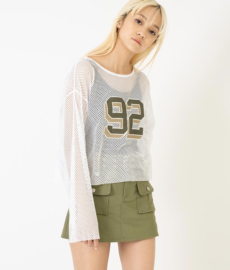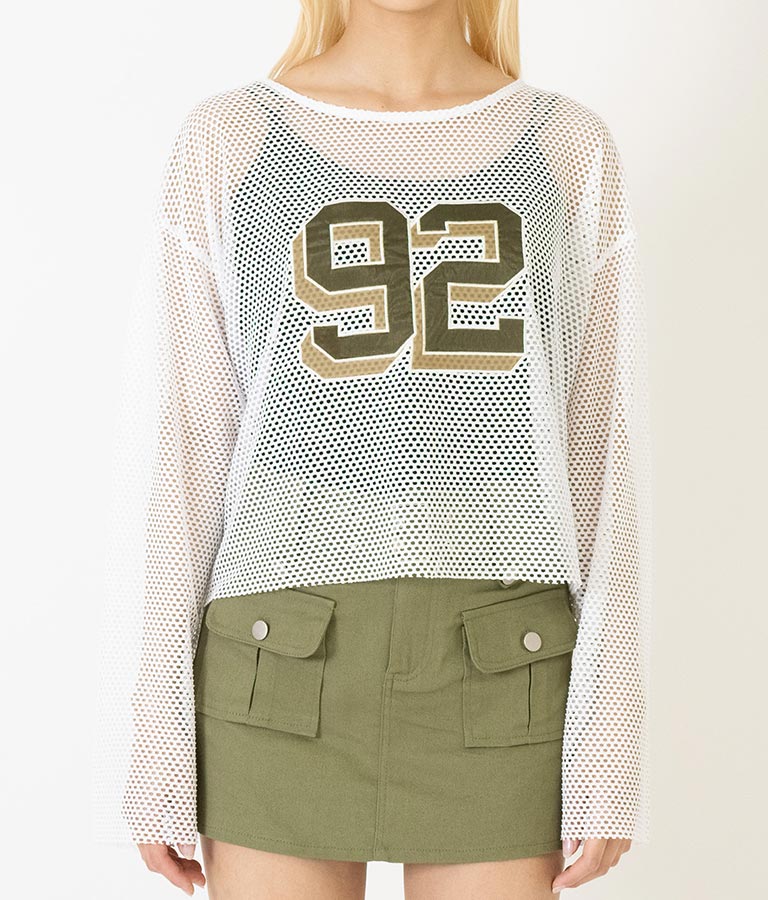 メッシュ素材×ナンバリングがスポーティなトップス。