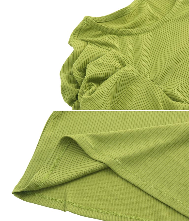 体のラインを美しく引き立てるリブ仕立てで、すっきりとシャープな印象に。