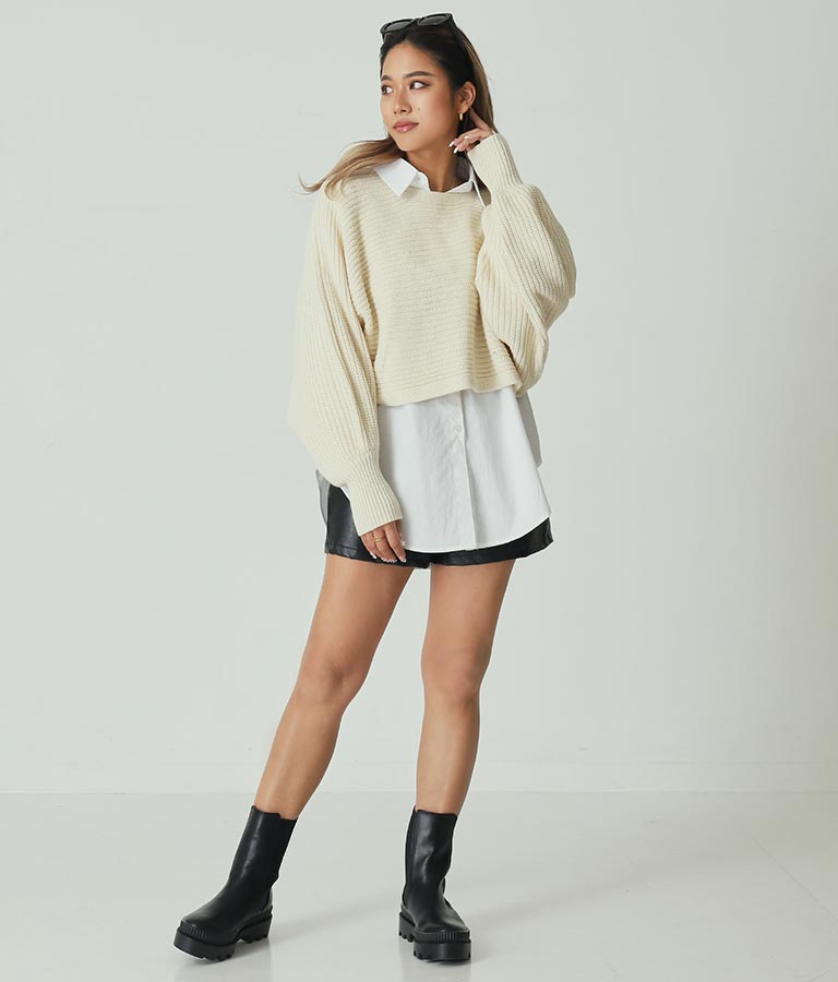 クロップド丈なので、ハイウエストボトムとの相性抜群。