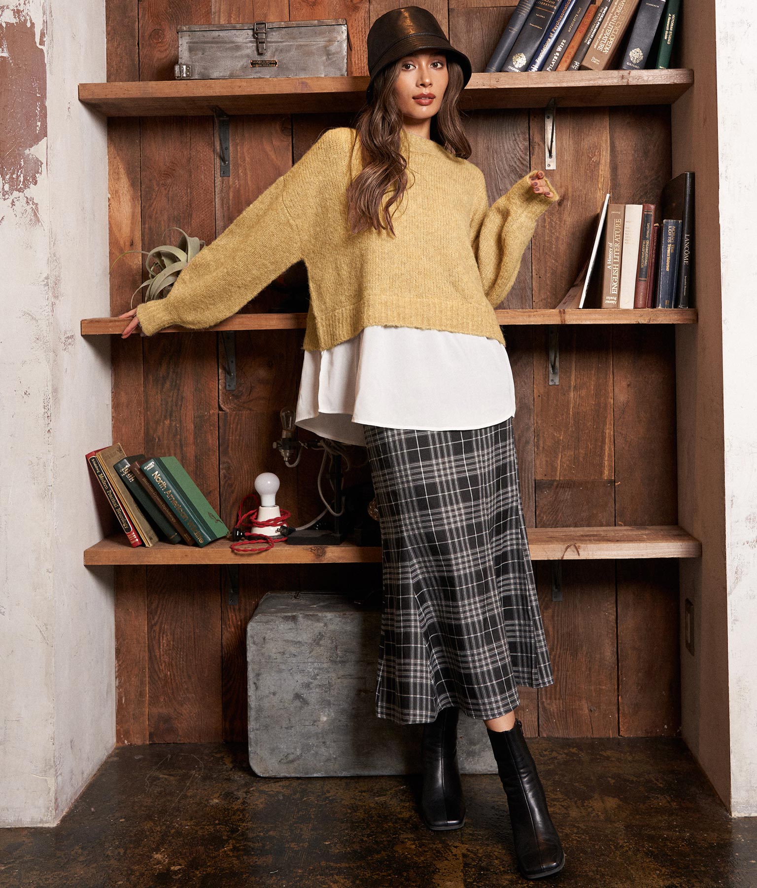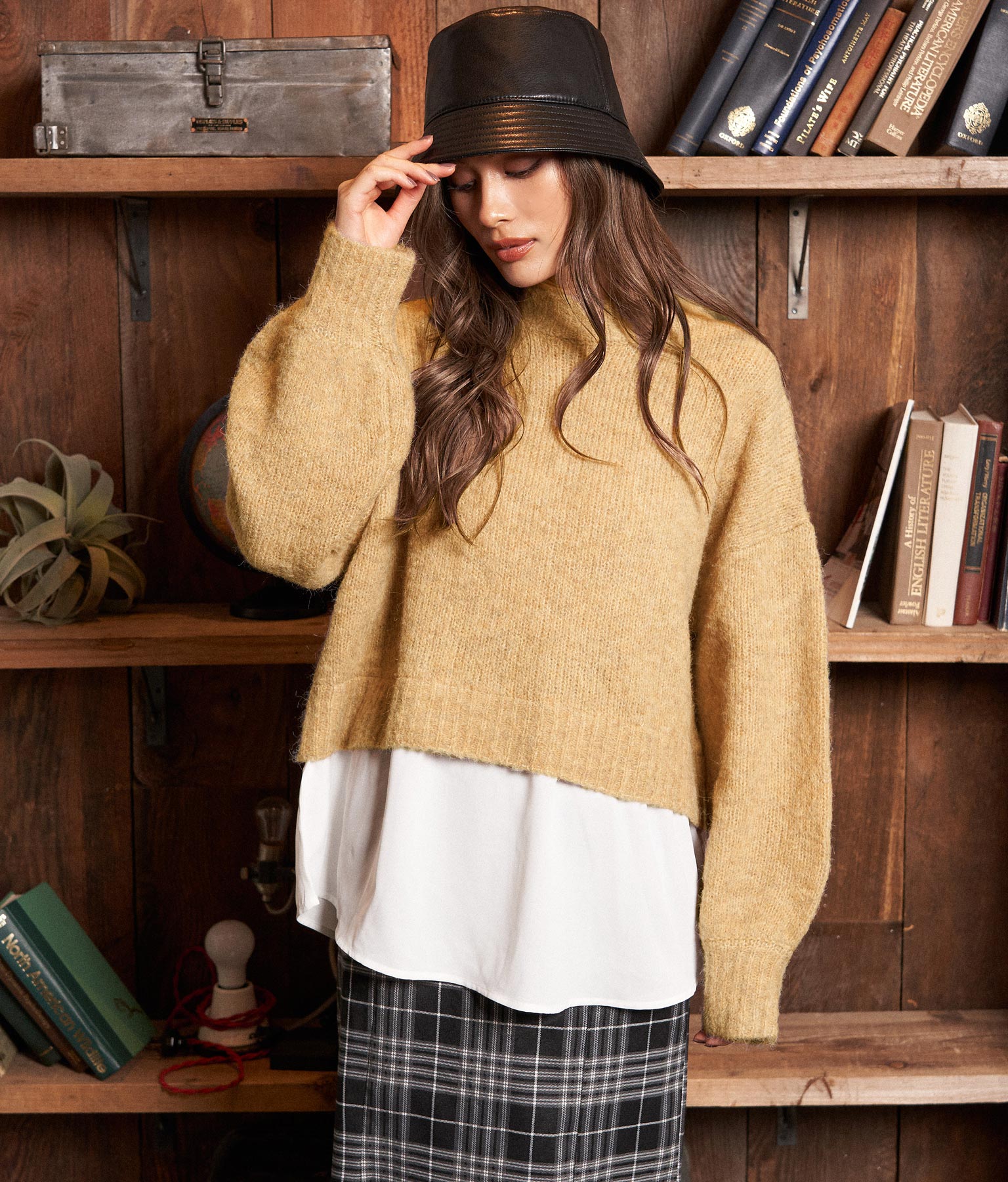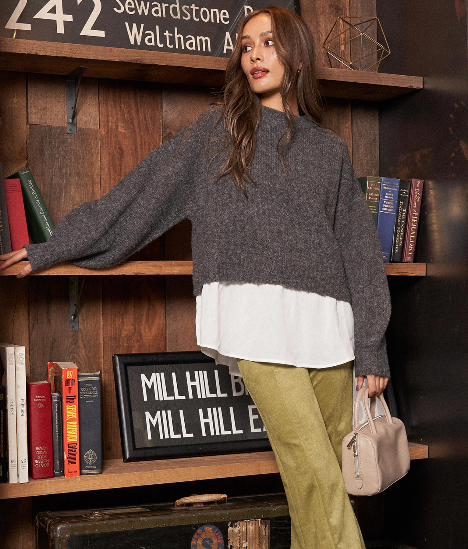 洗練された大人スタイルを提案するレイヤード風トップス。