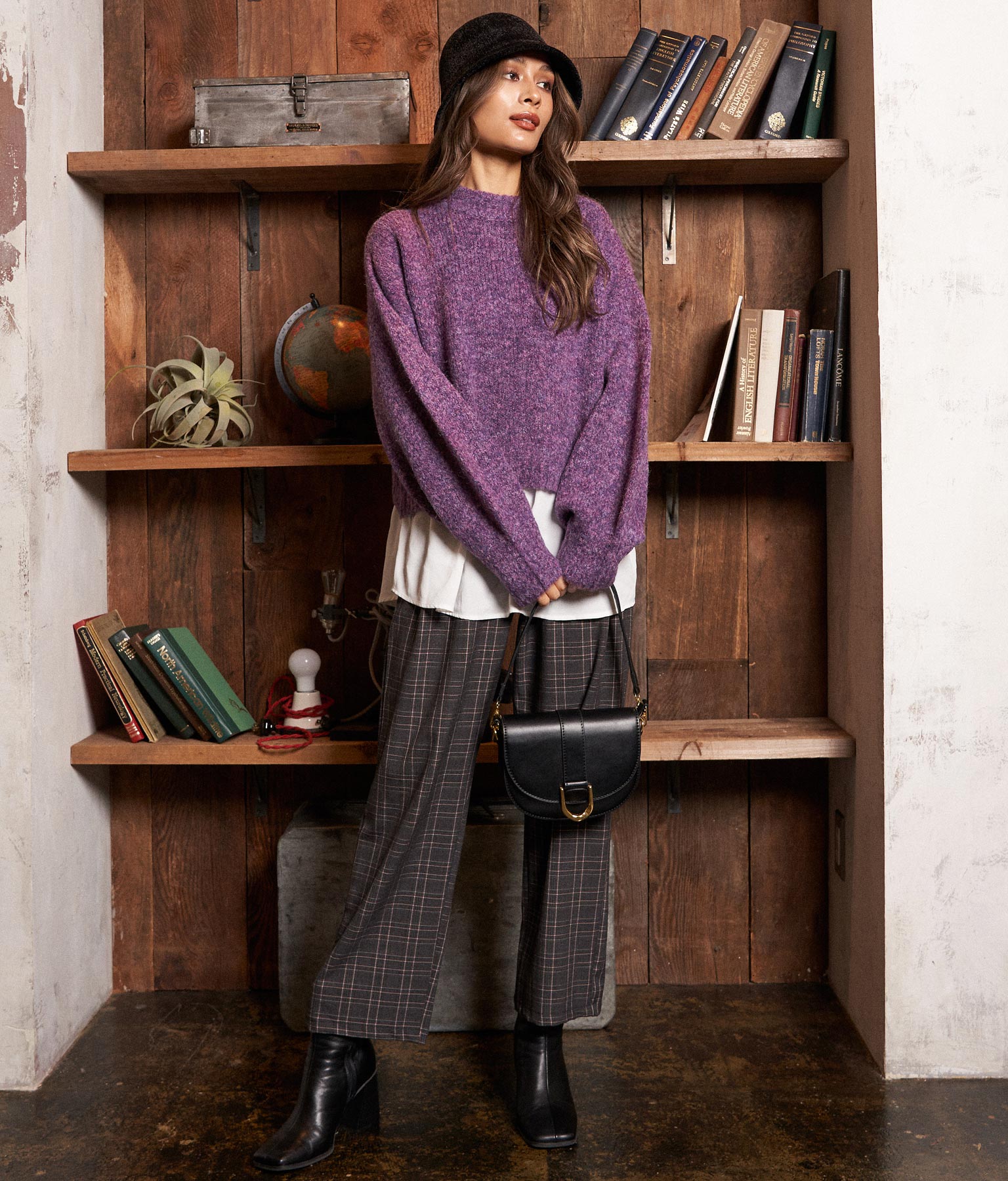 スキニーパンツなどのすっきりとしたアイテムとのコーデが好バランス。