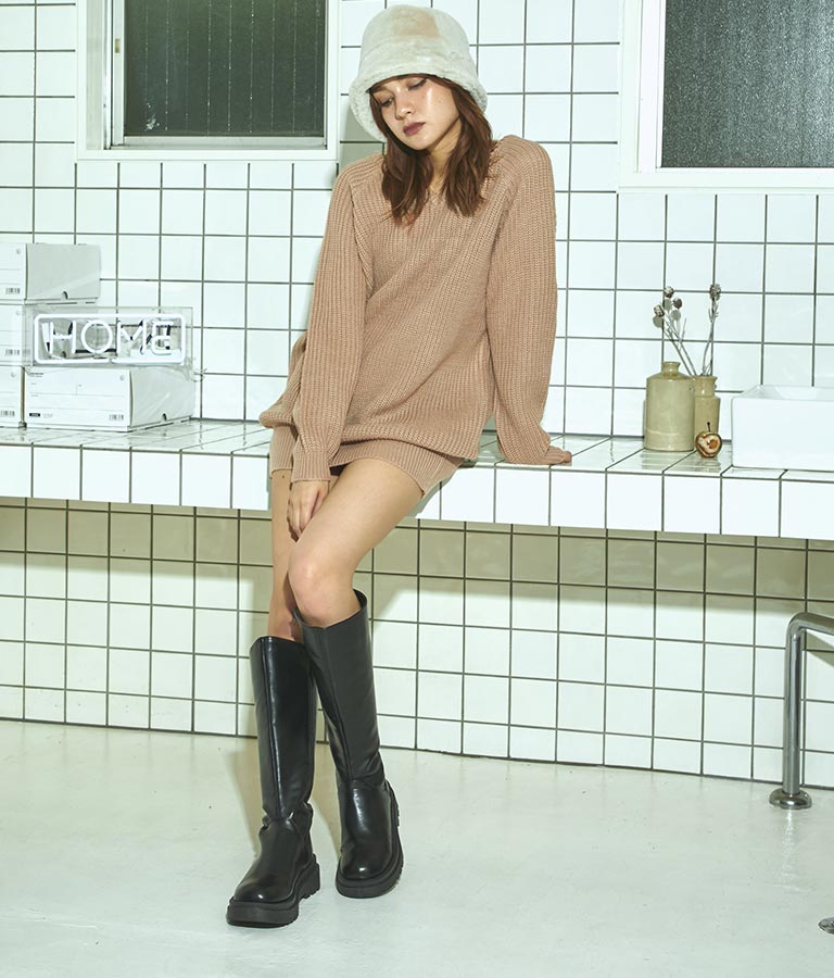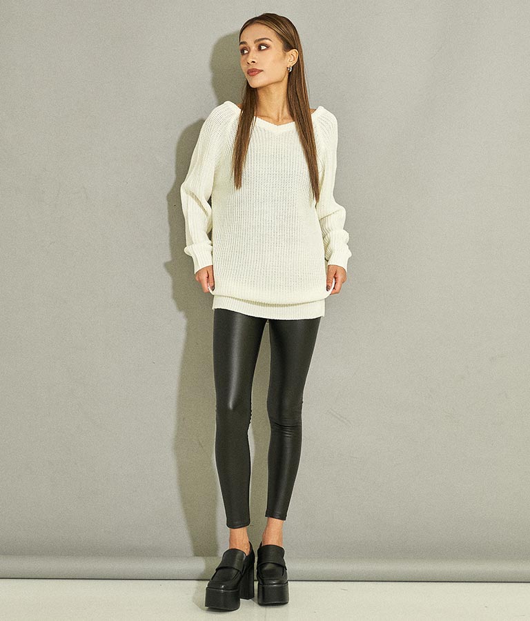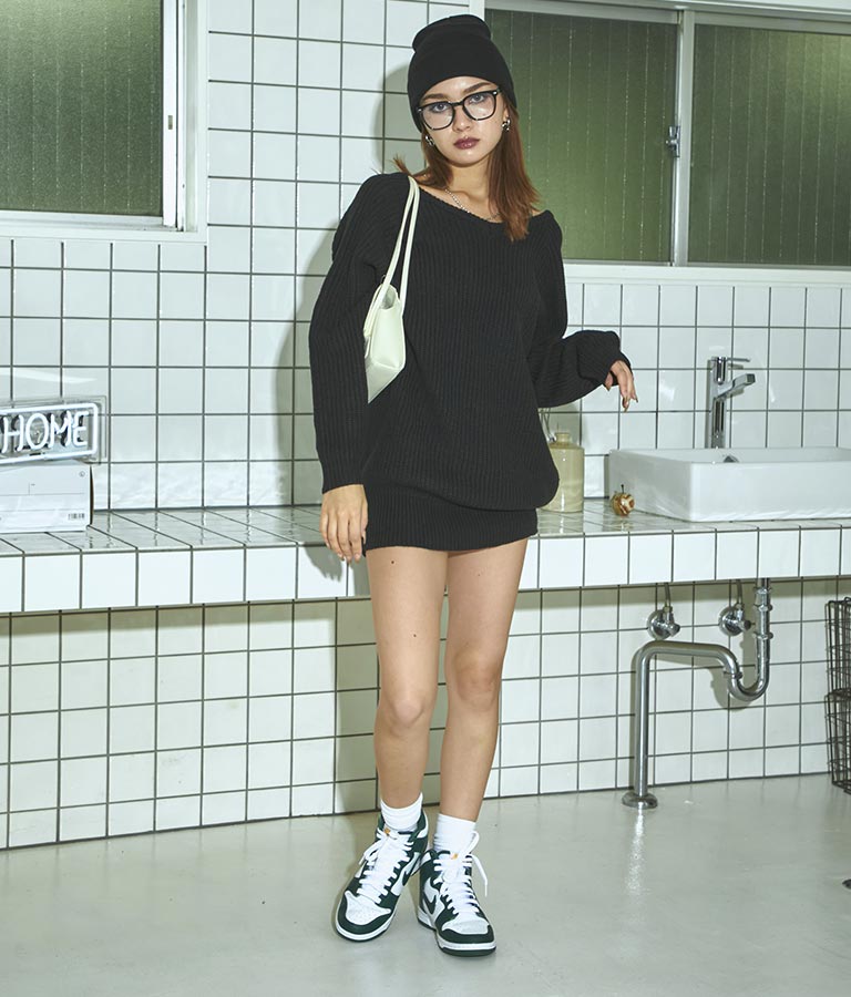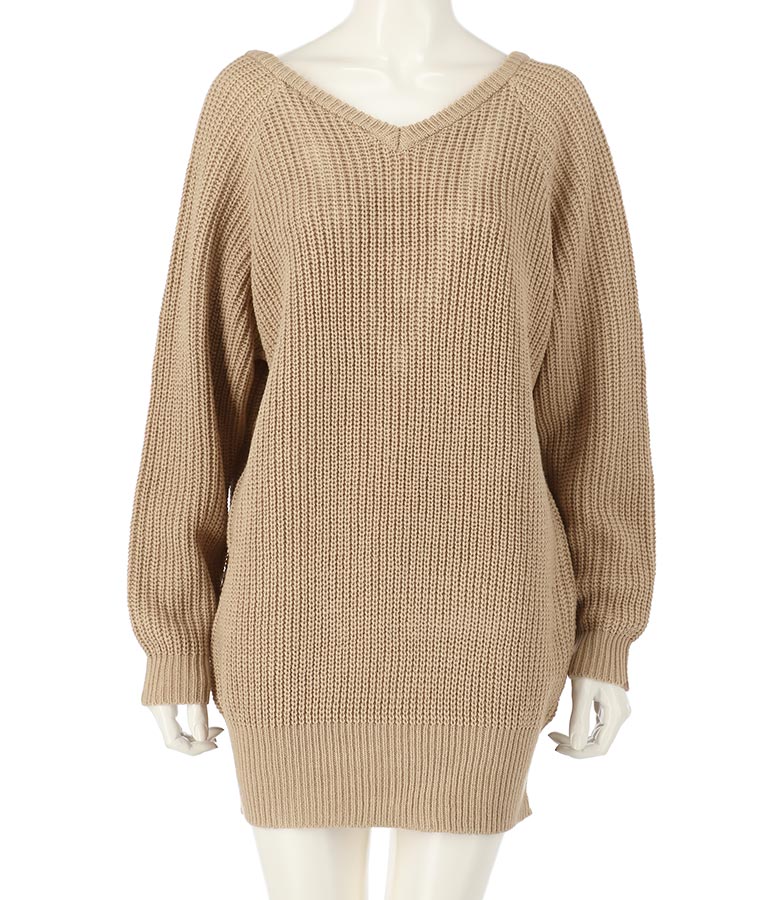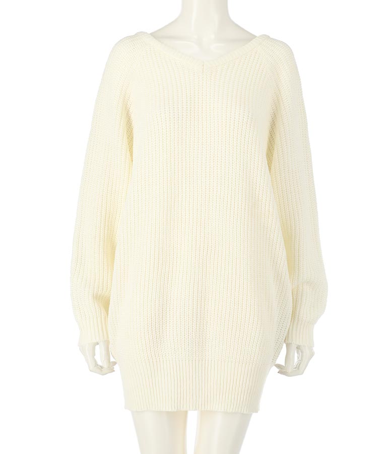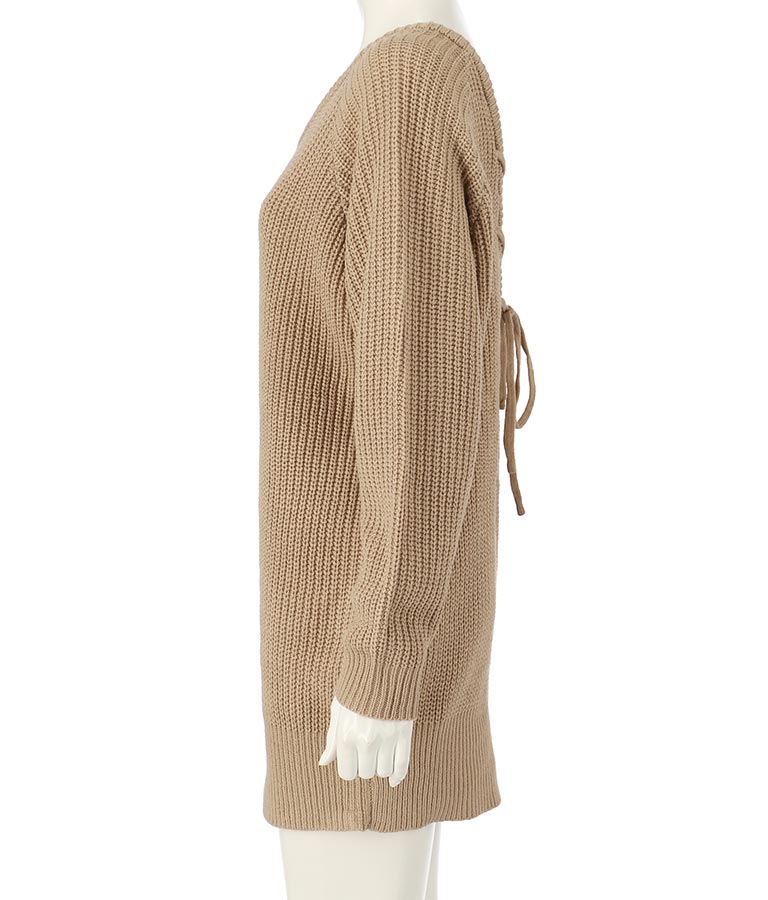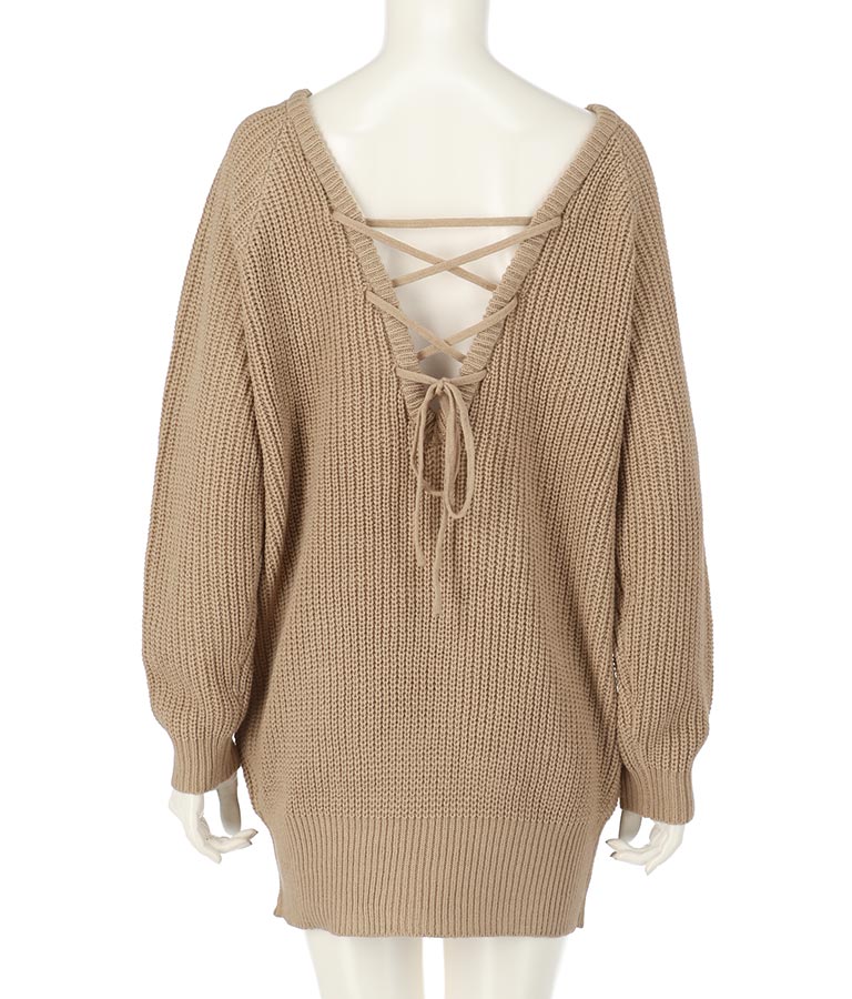 バックスピンドルが程よくセンシュアルなニットトップス。