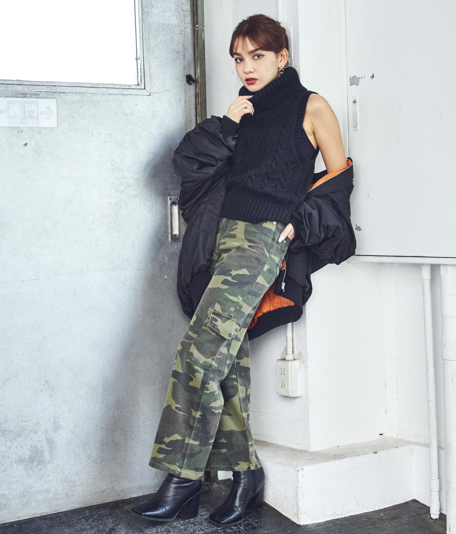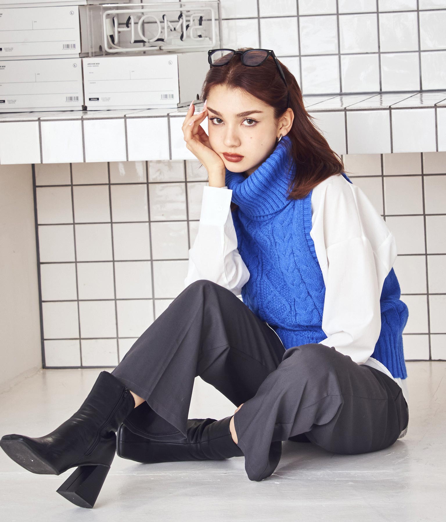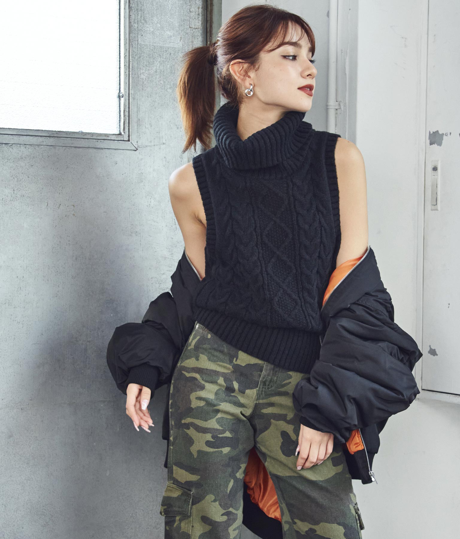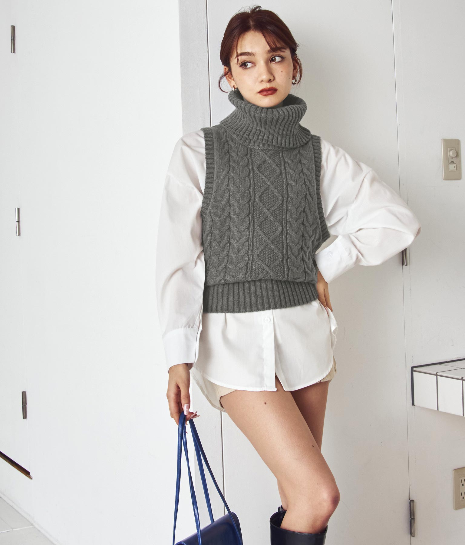 あたたかみのあるケーブル編みにより、シーズンライクな表情が加速。