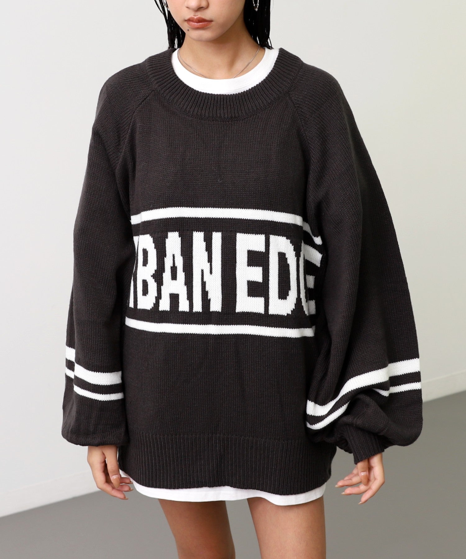 ジャカード ロゴ ボリューム スリーブ ニット トップス 793-9414