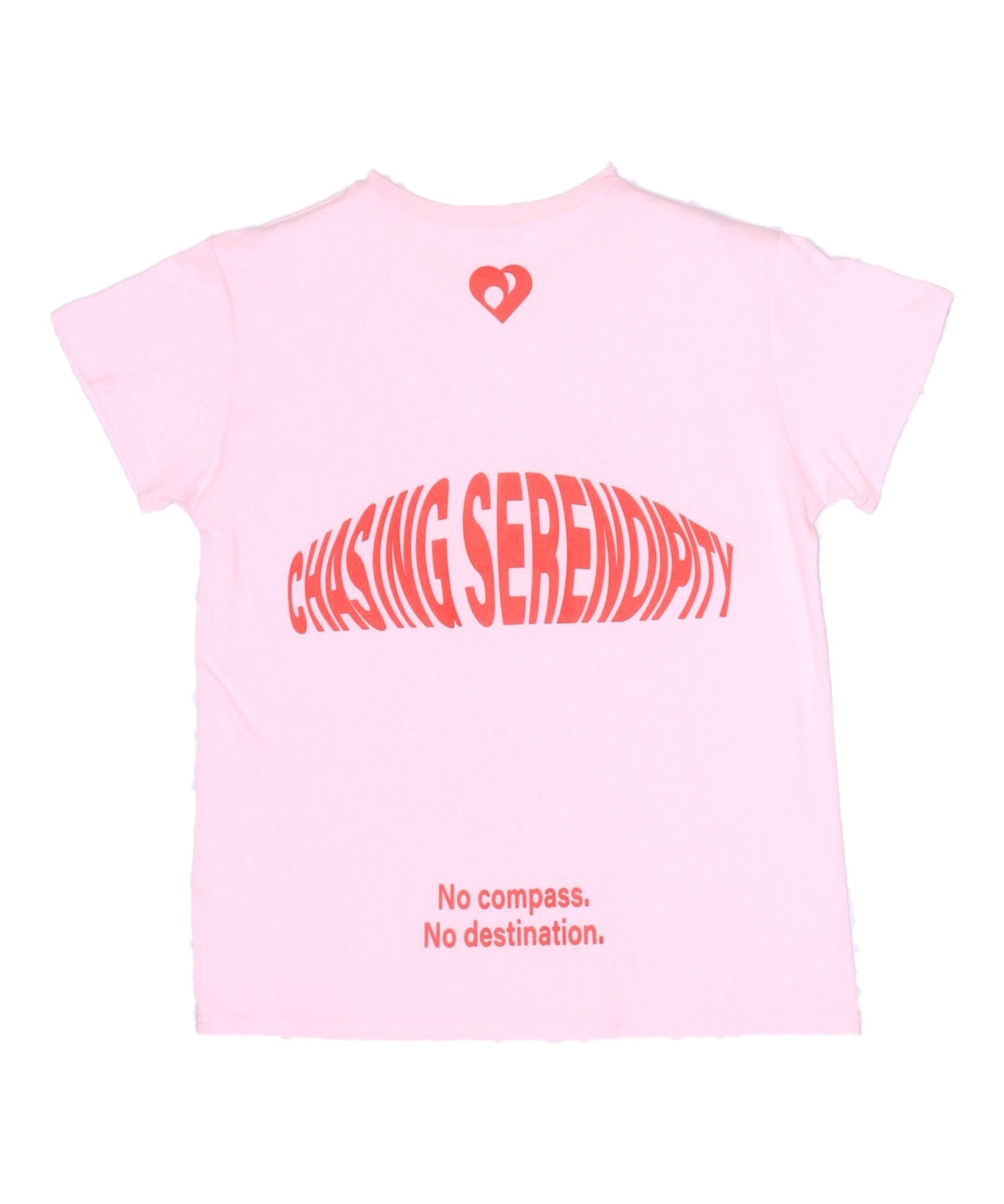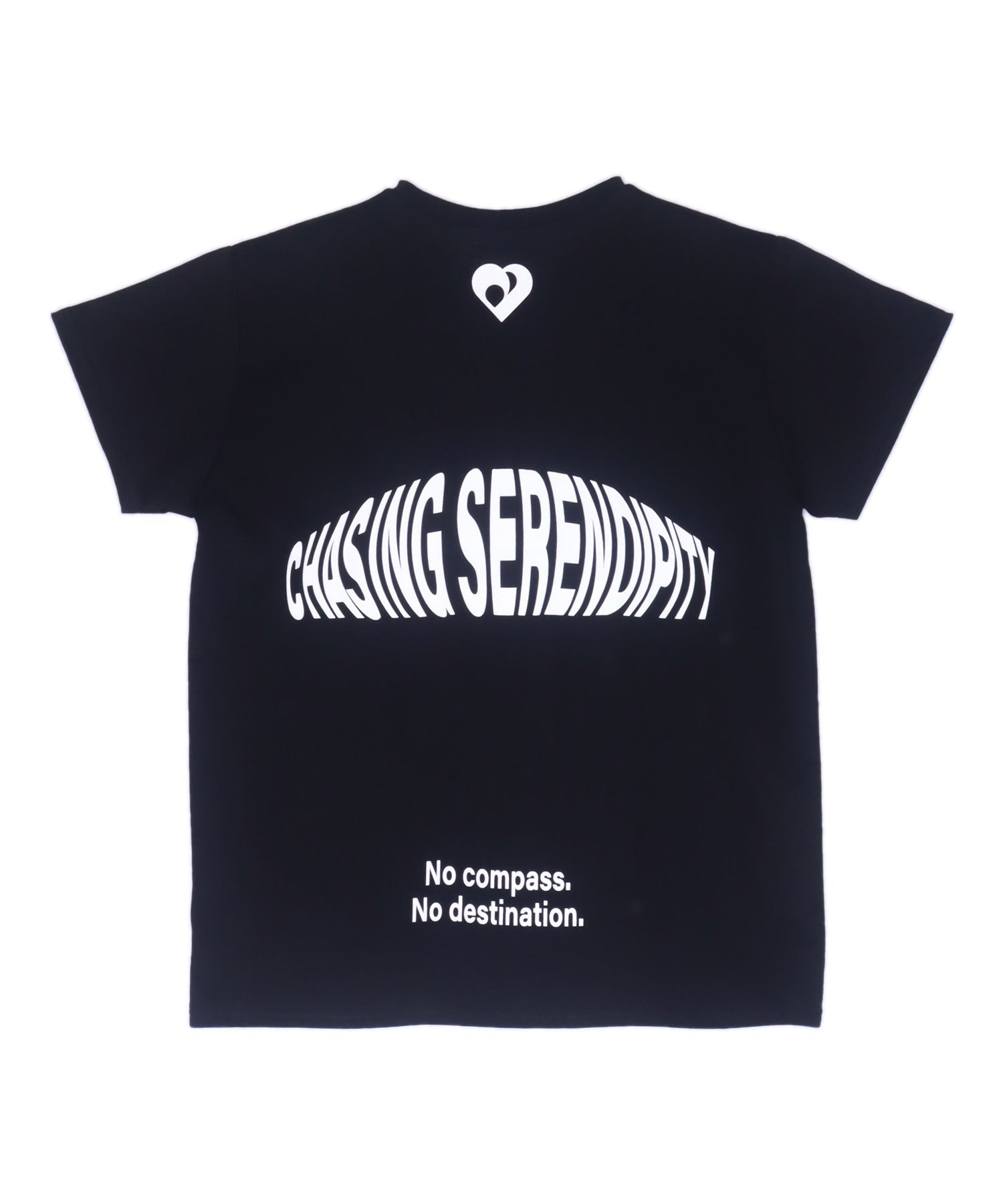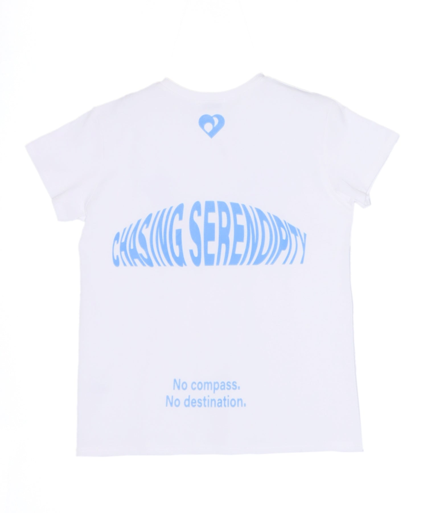 胸元とバックに配したグラフィとハートの組み合わせが、シンプルながらスタイリングにしっかり存在感を与えてくれます。