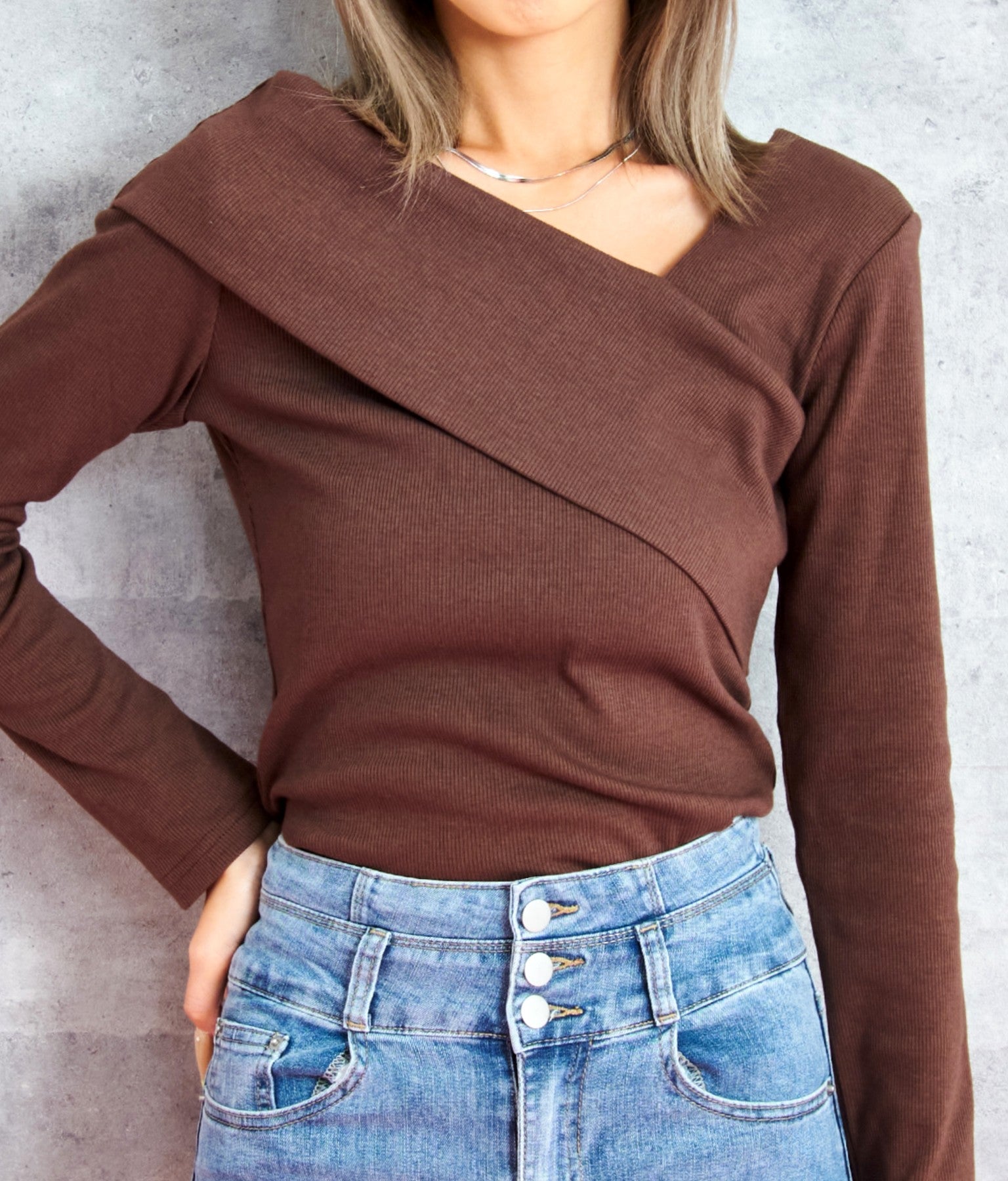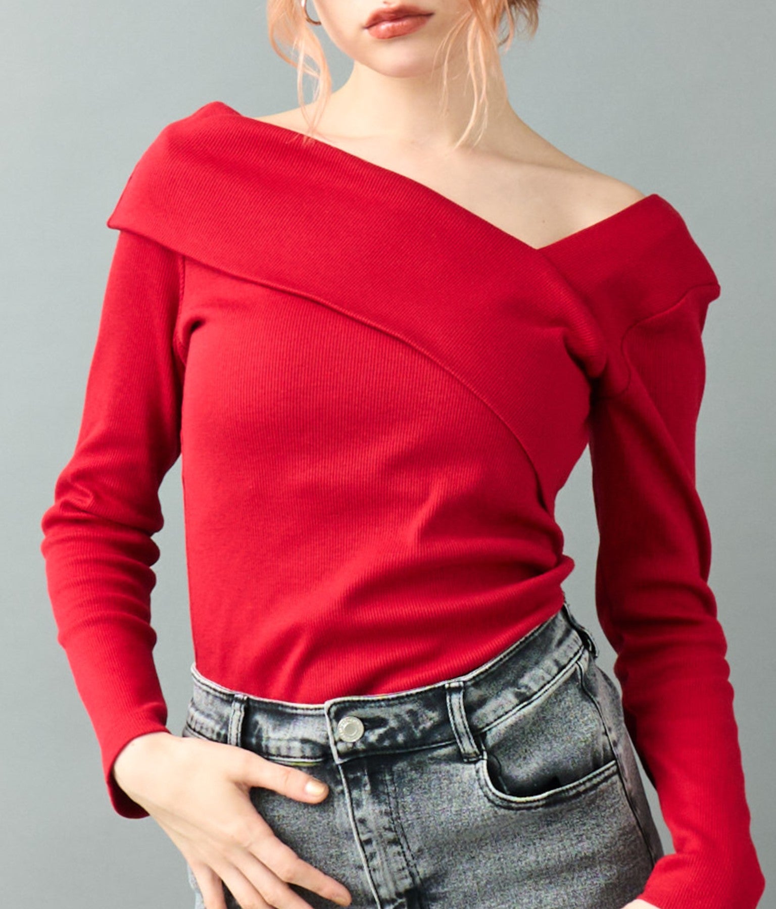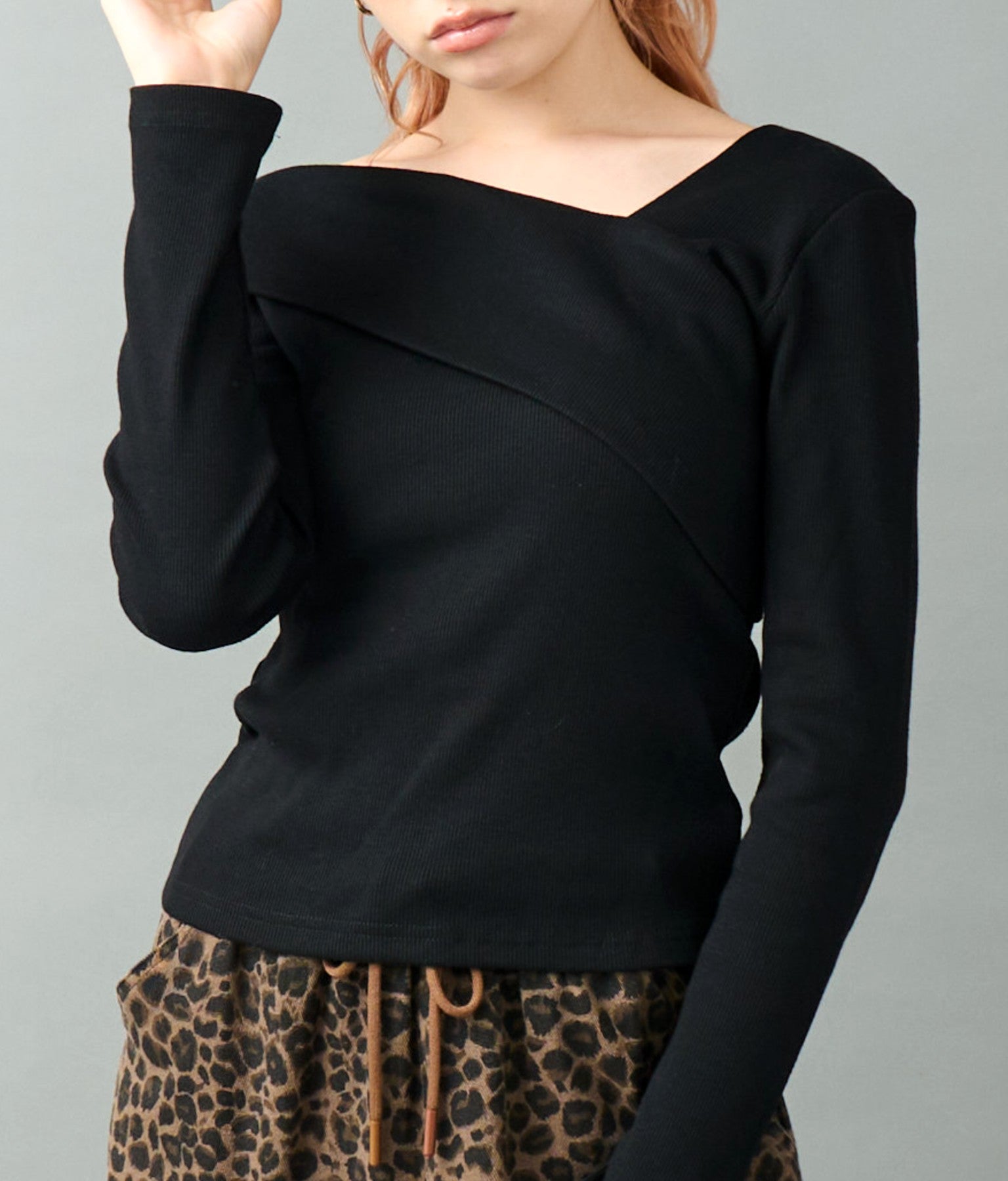 変形デザイン リブ ロングスリーブ トップス 793-9351