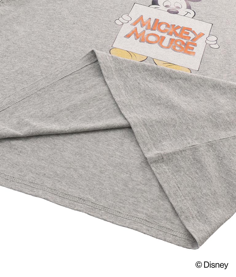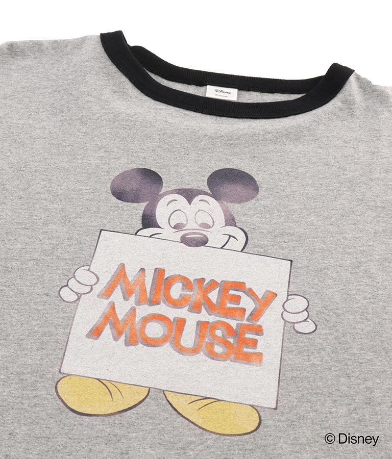 カスレプリントのレトロミッキーマウスが施されたリンガーTシャツはビンテージ感漂う雰囲気のある1枚。