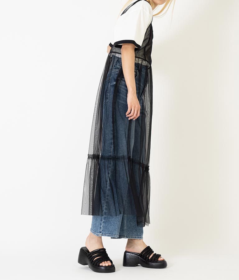 今季っぽくミニボトムやシアーアイテムとのスタイリングがオススメ。