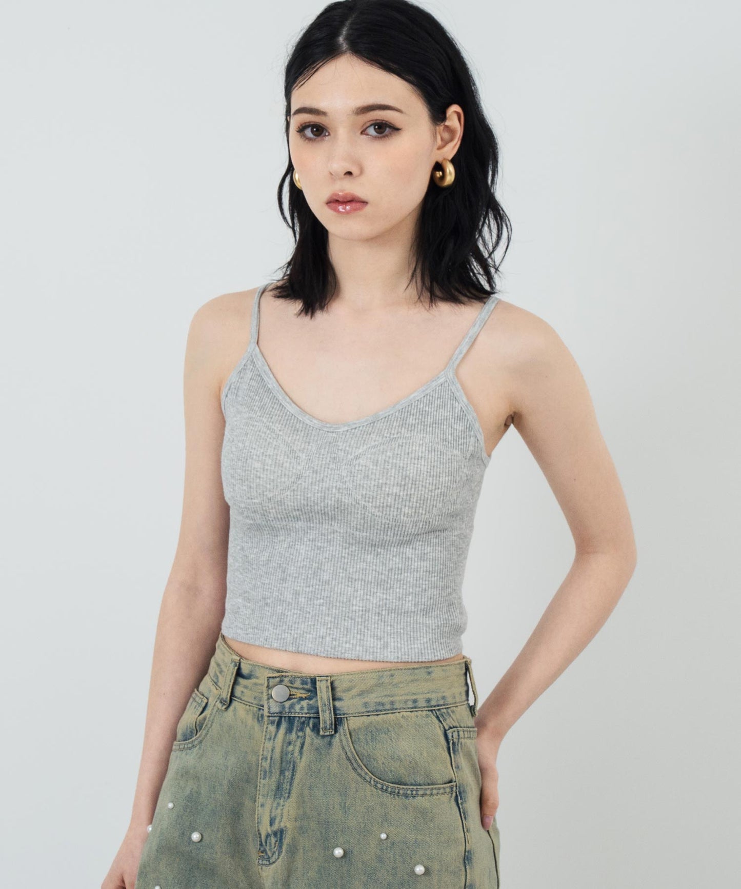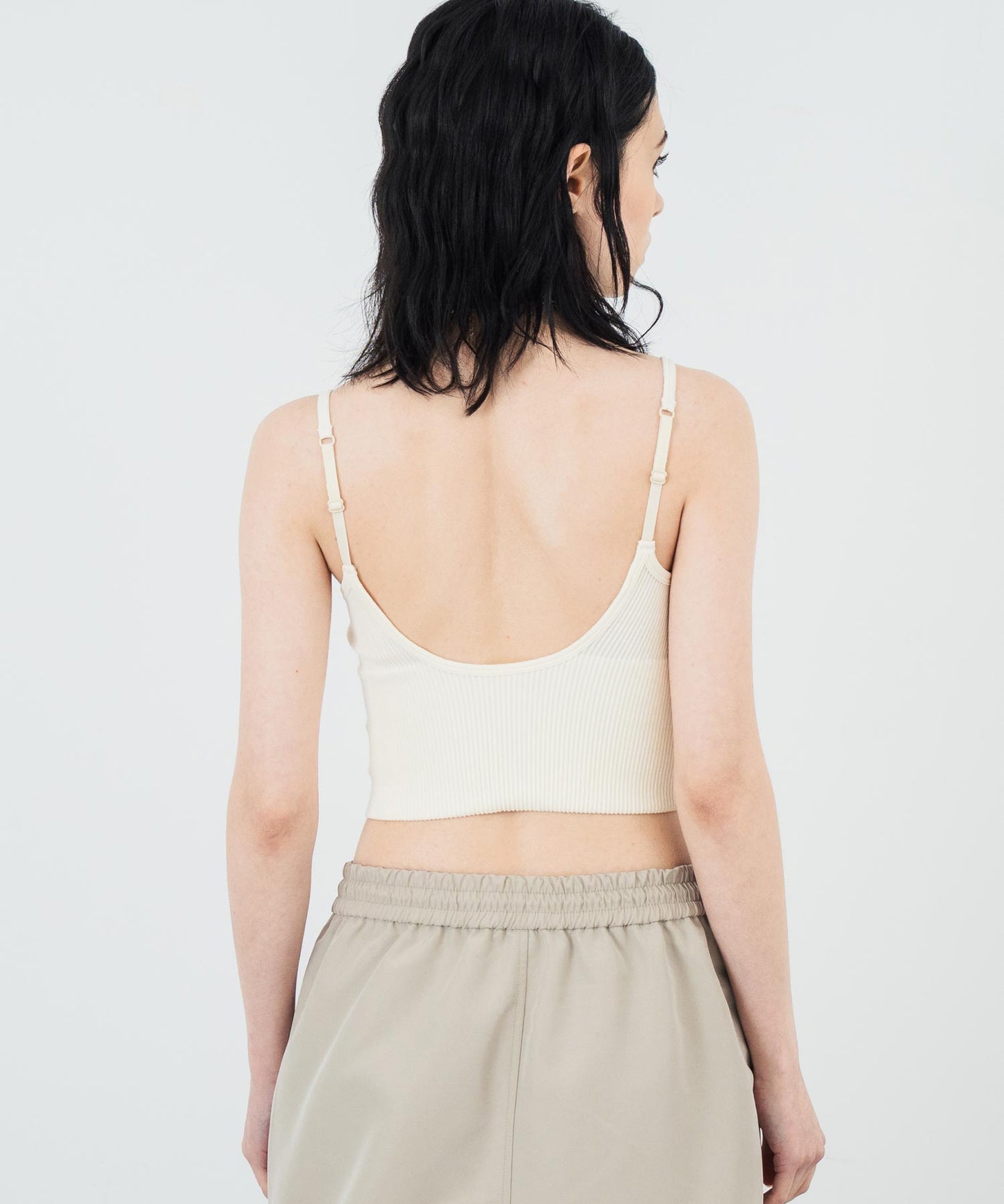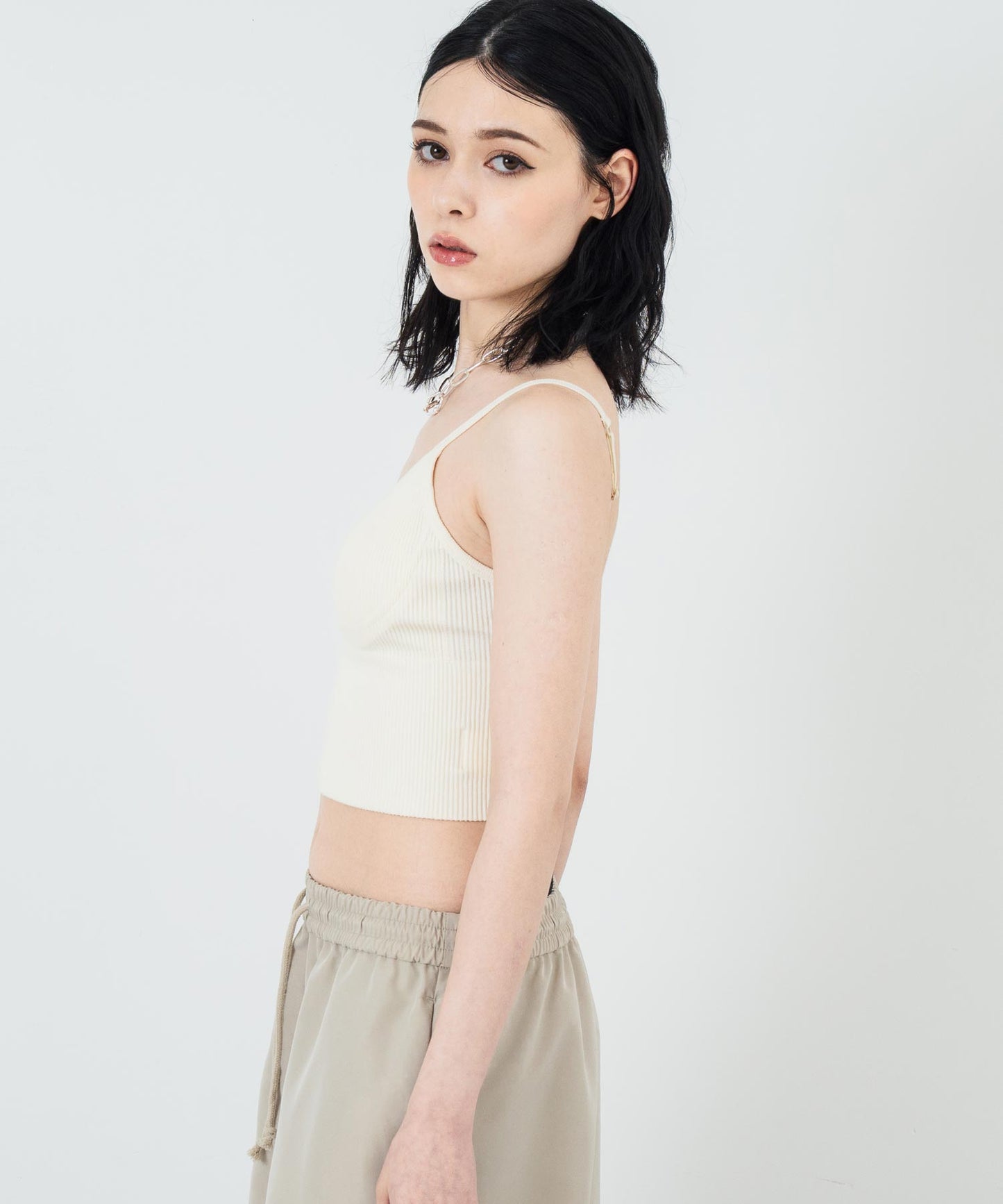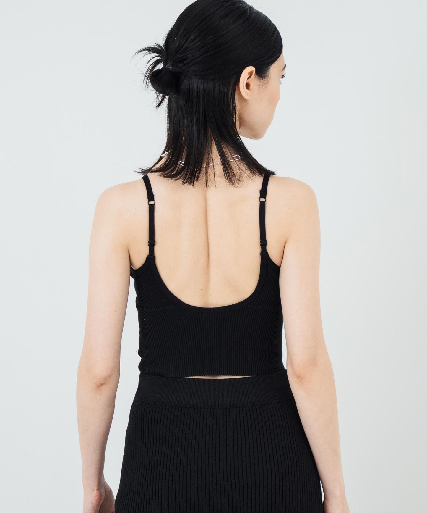 体に程よくフィットするリブ素材で、美しいラインを演出。