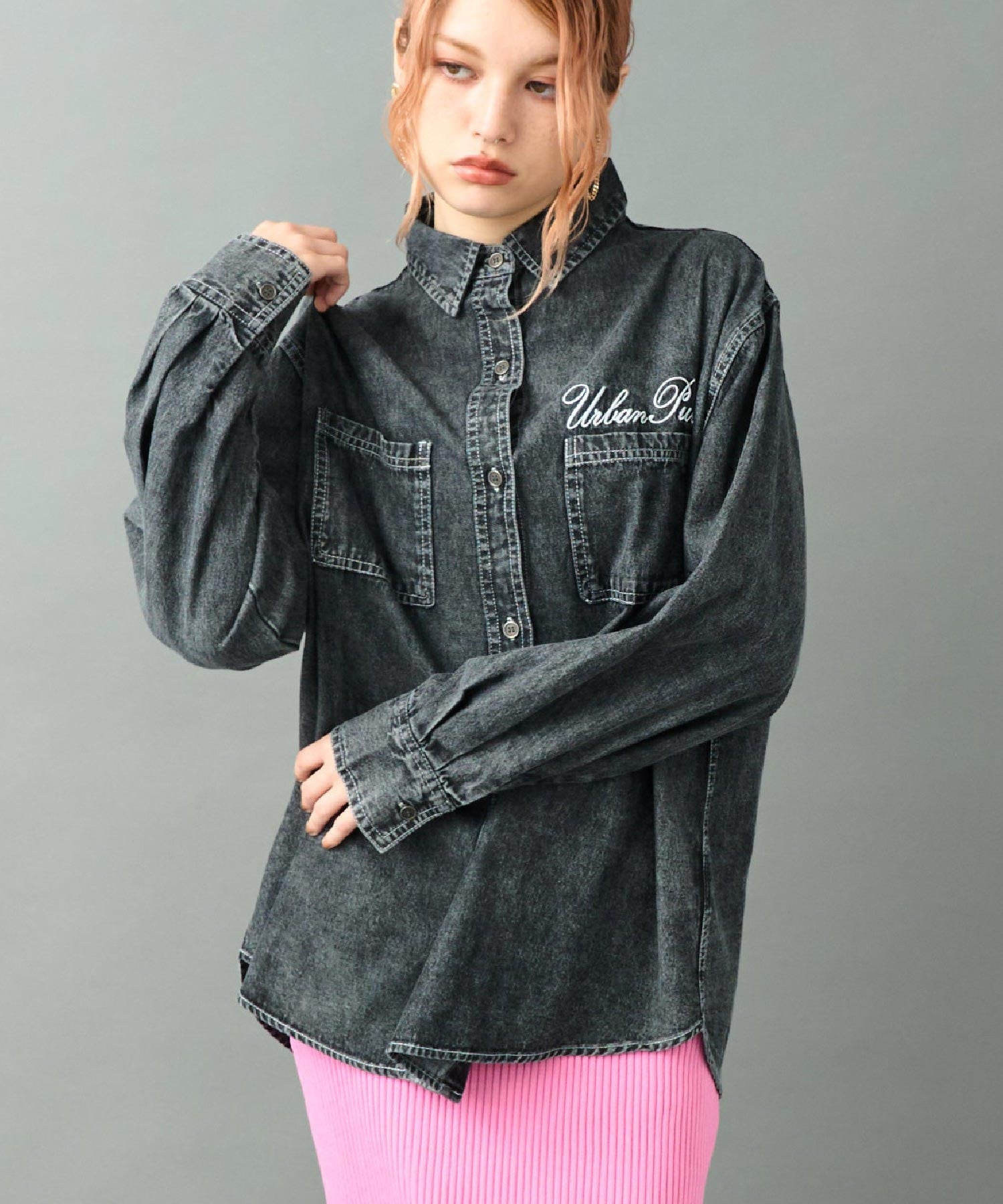 ケミカルウォッシュ 刺繍 オーバーサイズ デニム シャツ 793-9335