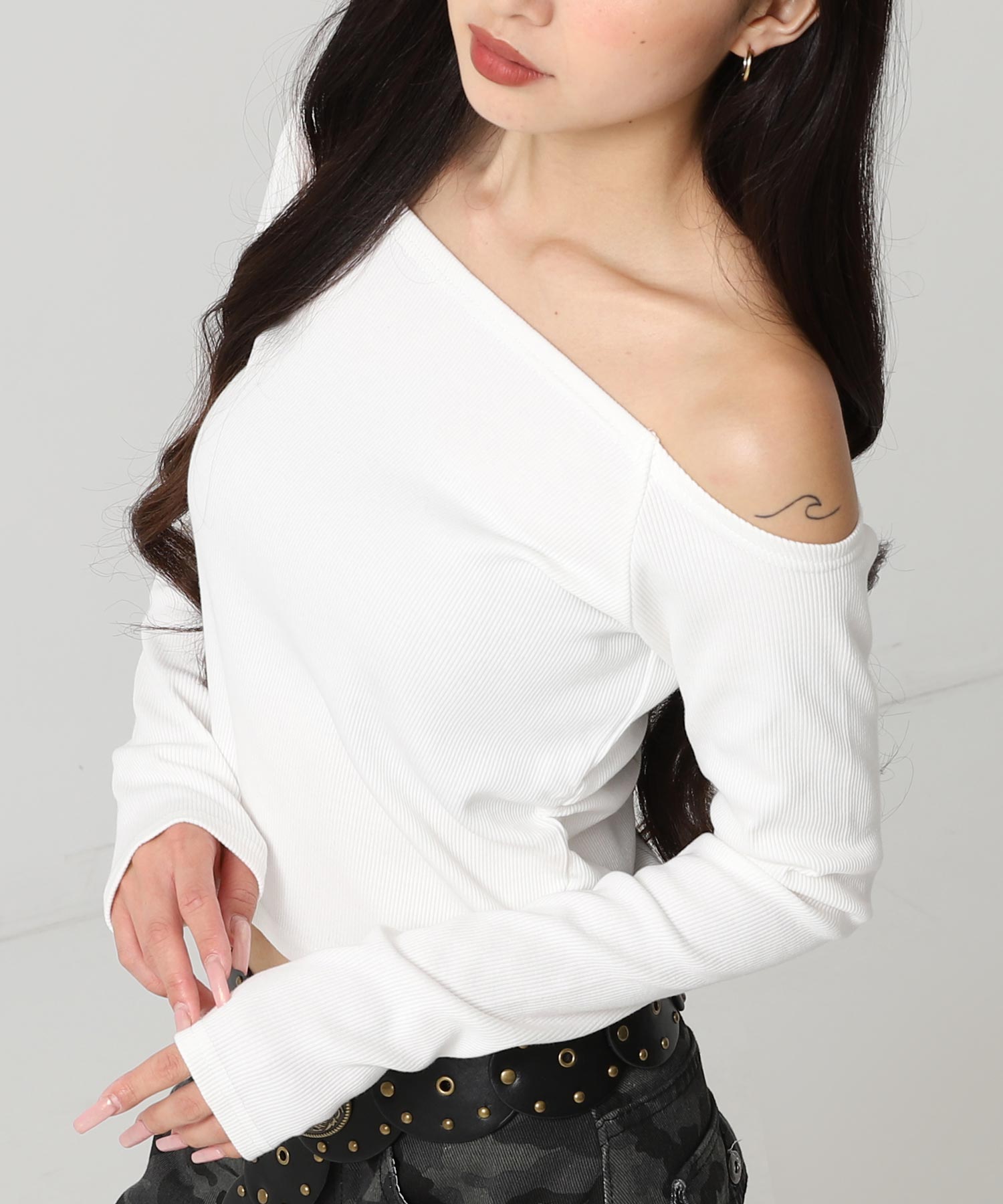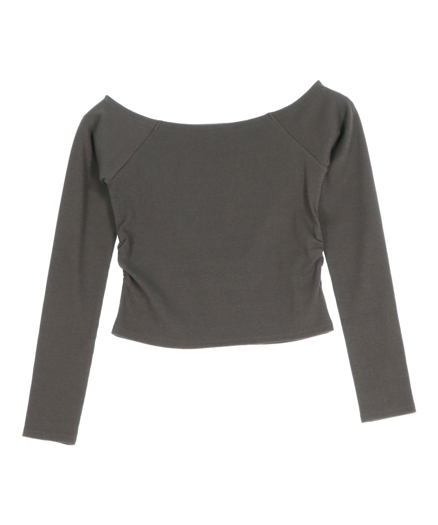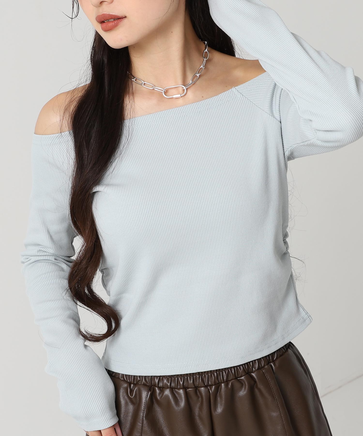 サイド ギャザー オフショルダー リブ トップス 793-9393