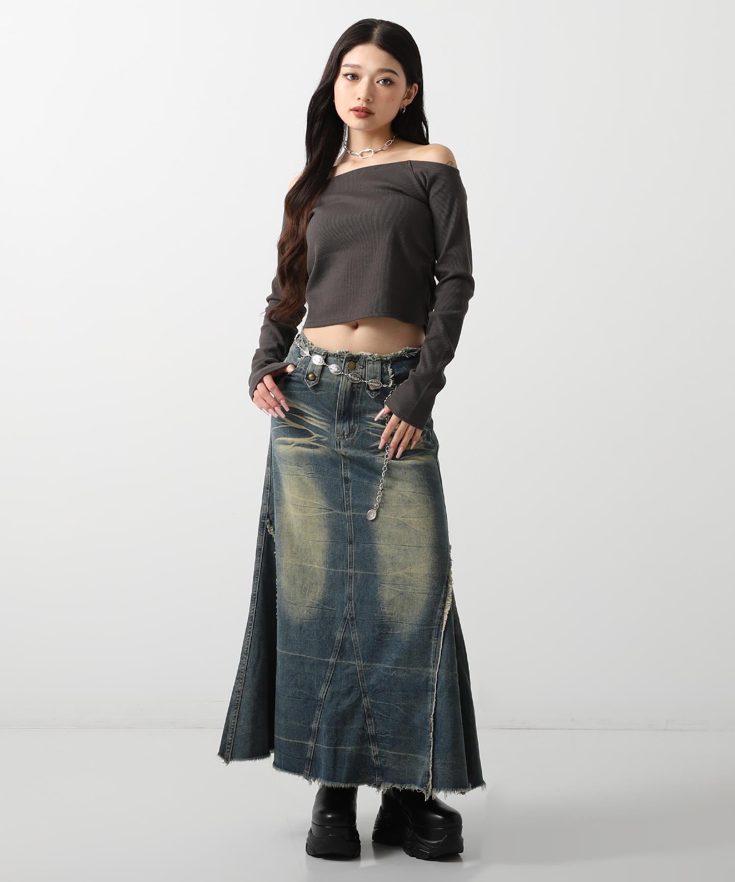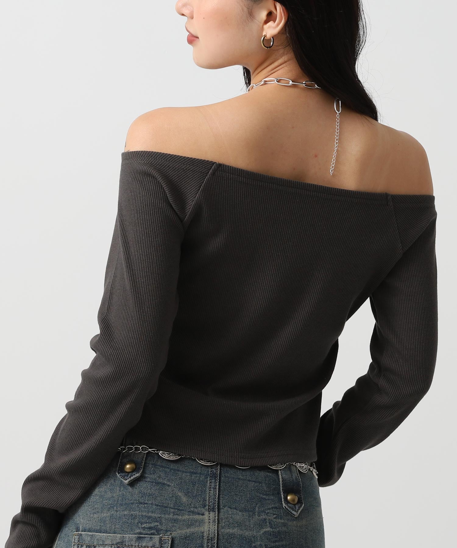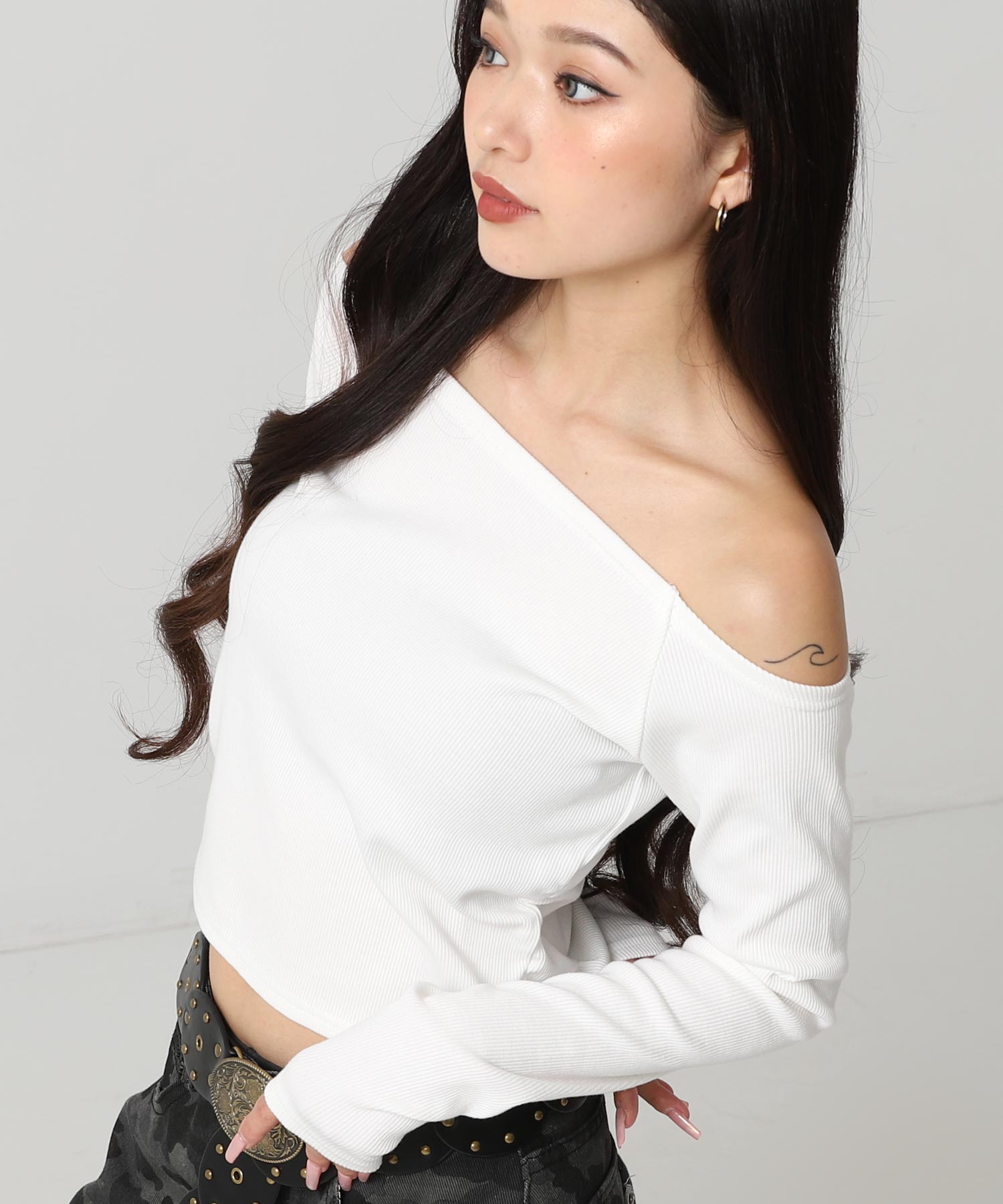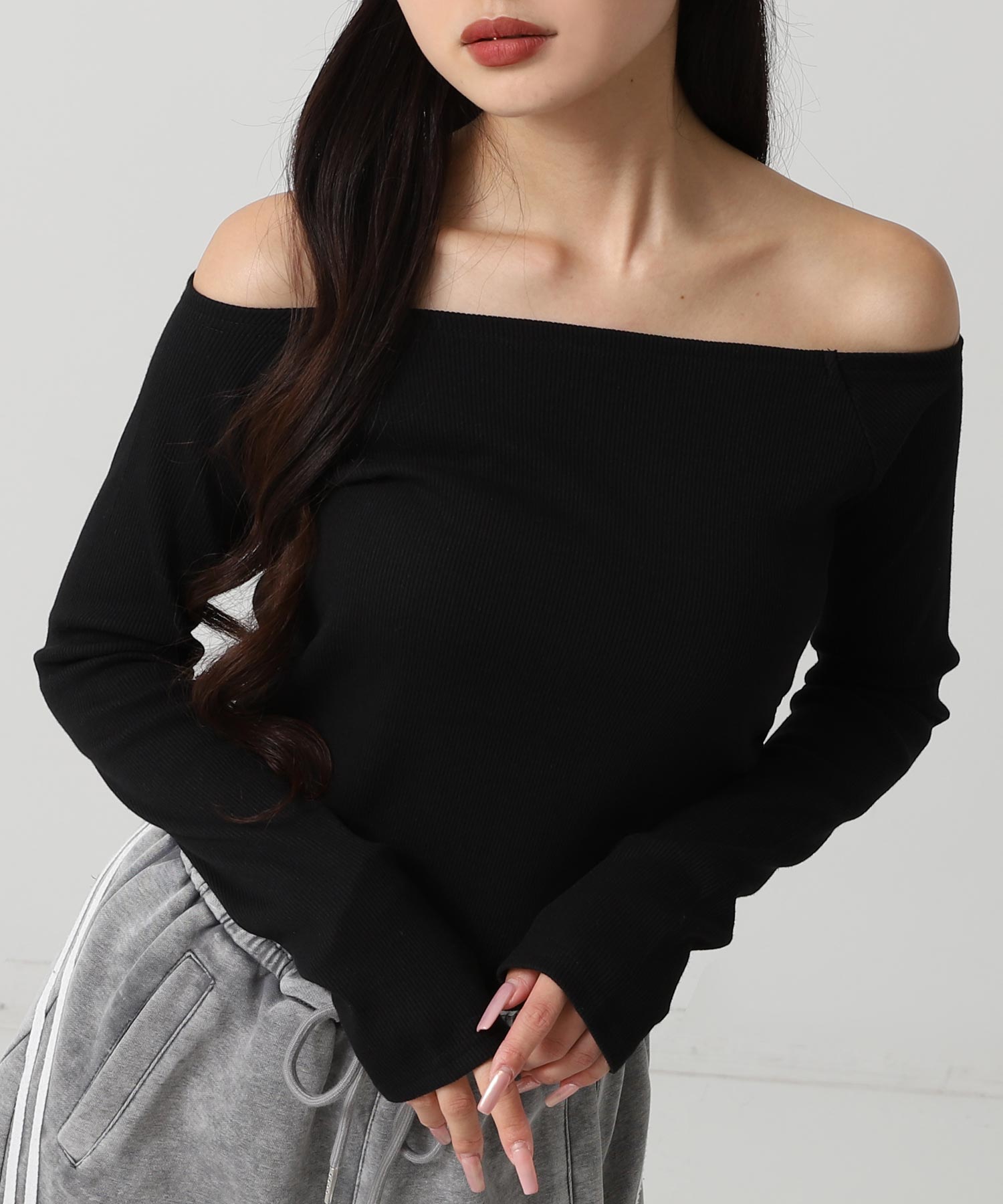 サイド ギャザー オフショルダー リブ トップス 793-9393